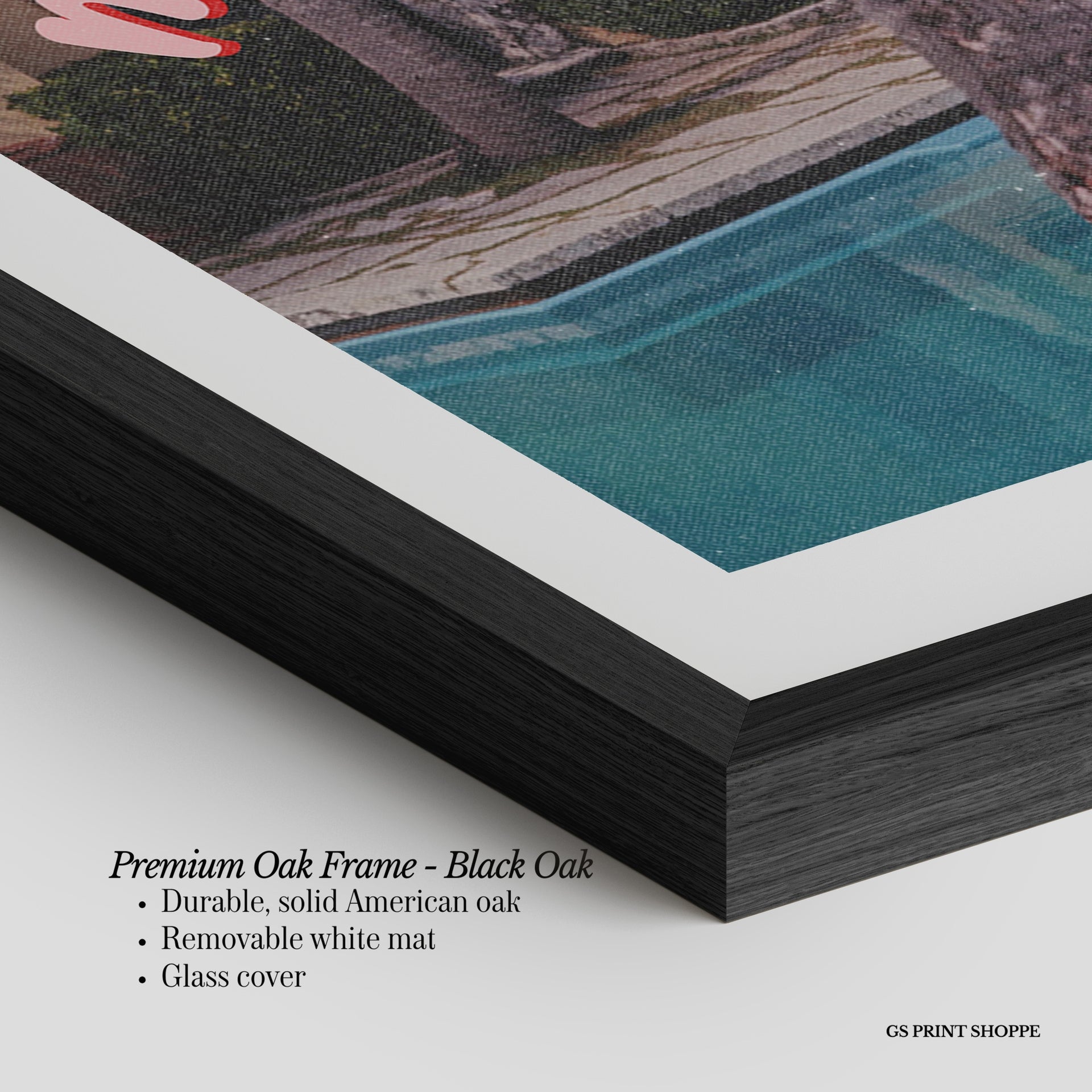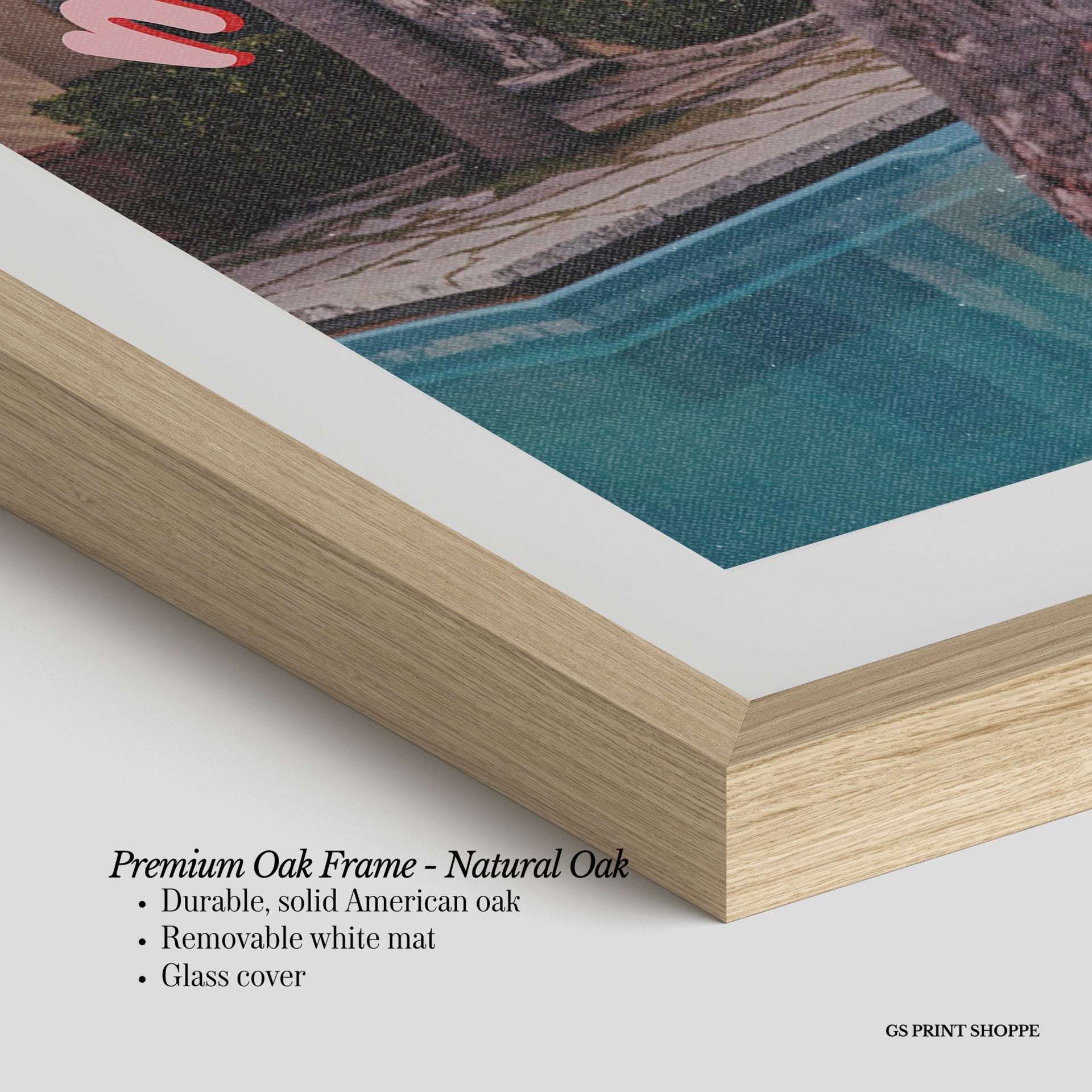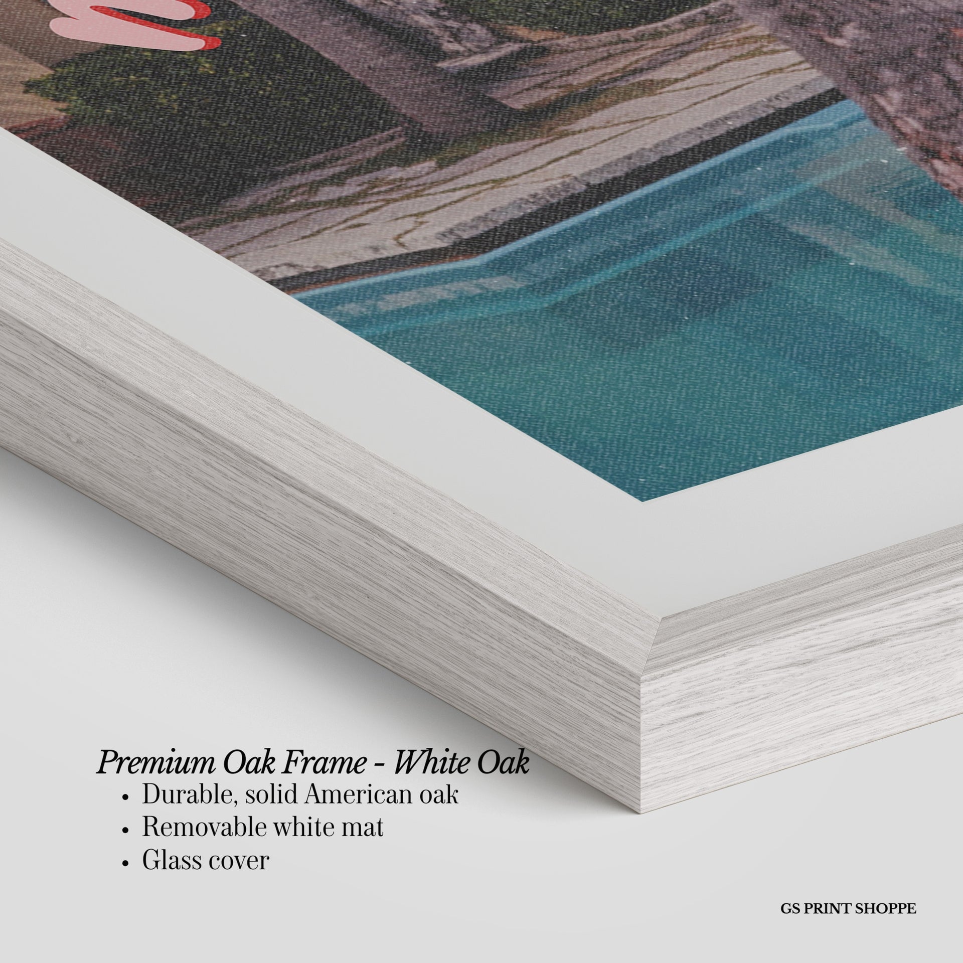 Premium Oak Frame: Our premium oak frame is crafted from solid American oak, offering a warm, natural feel with a high-end finish. We complete this elevated offering with a bright white removable mat and real glass for a versatile and polished look.