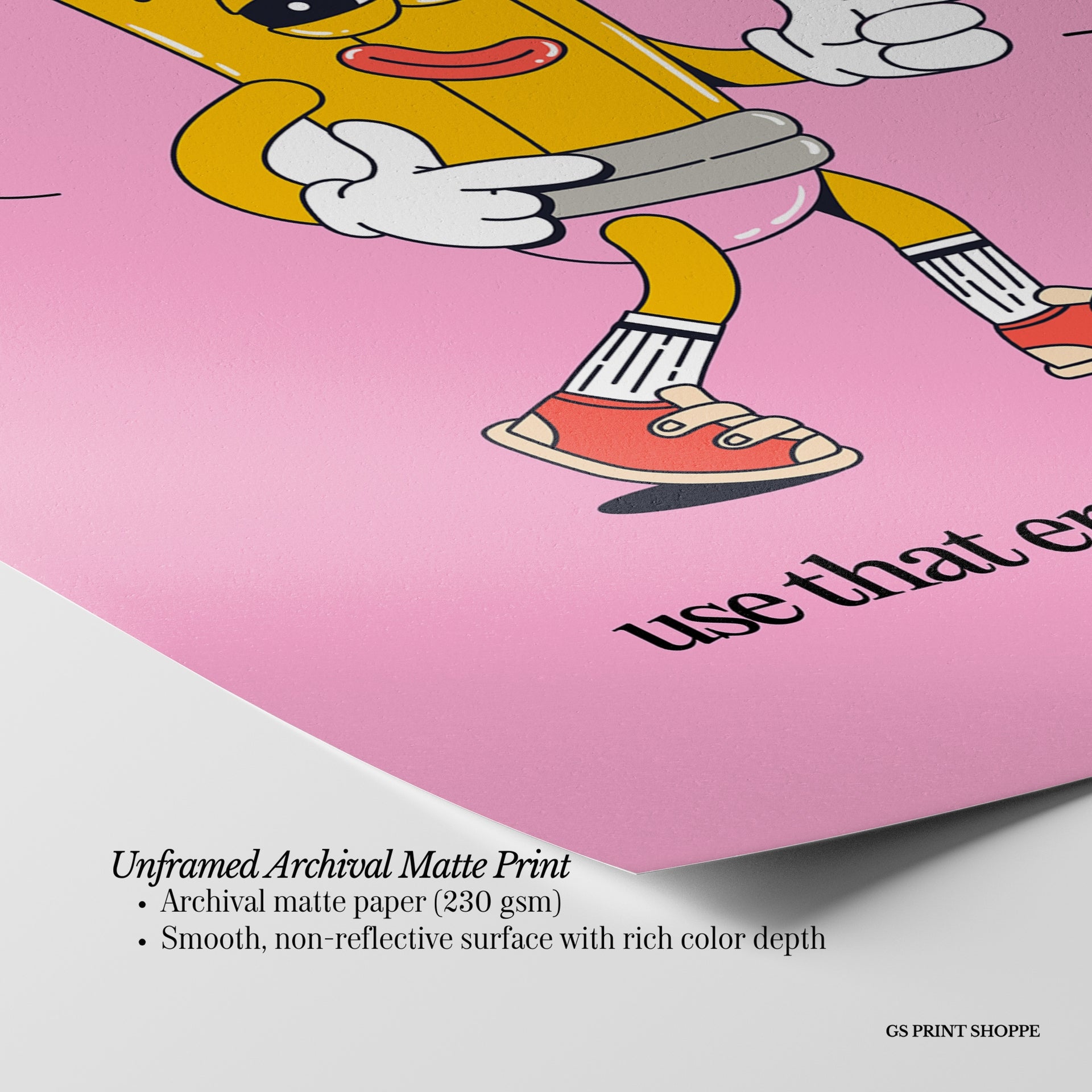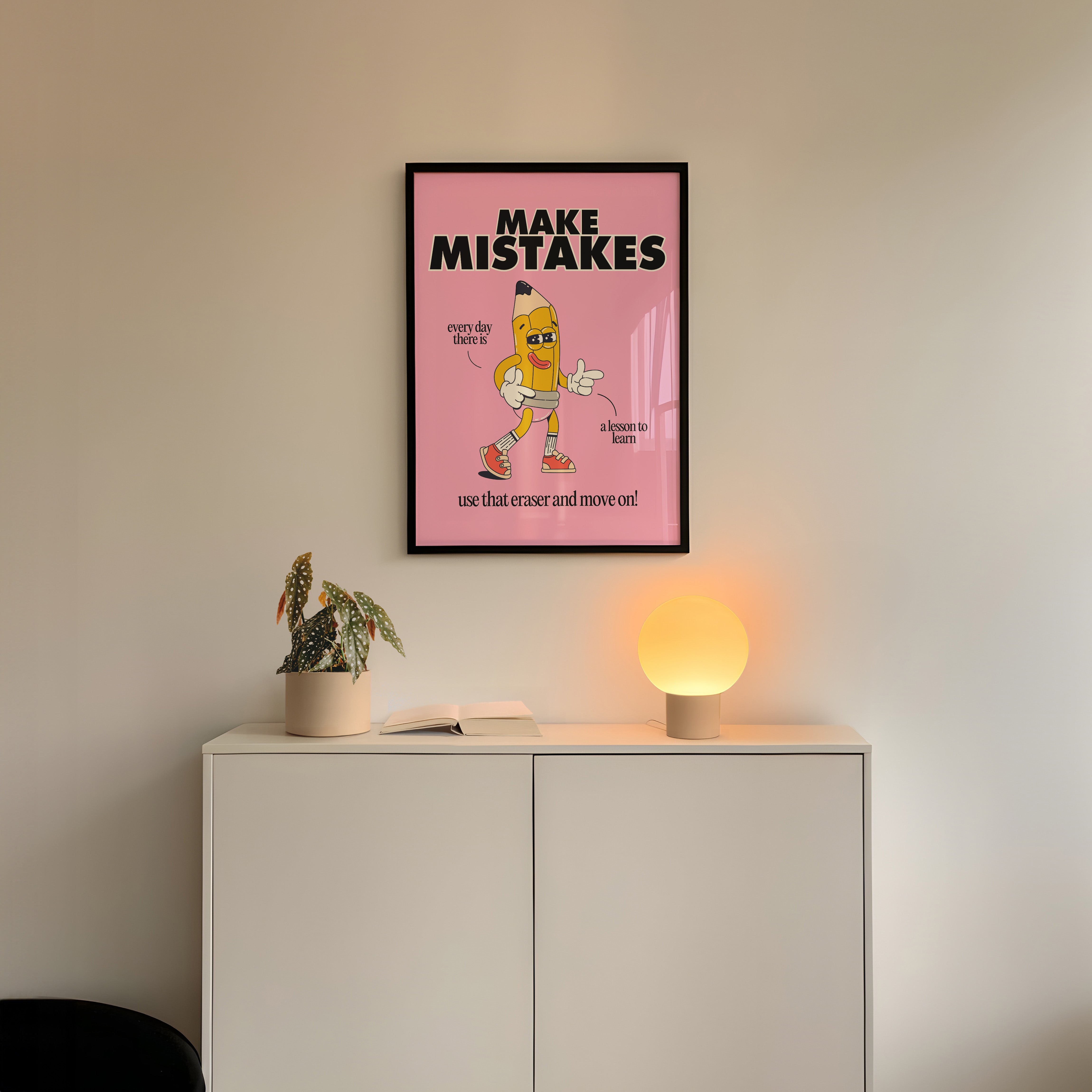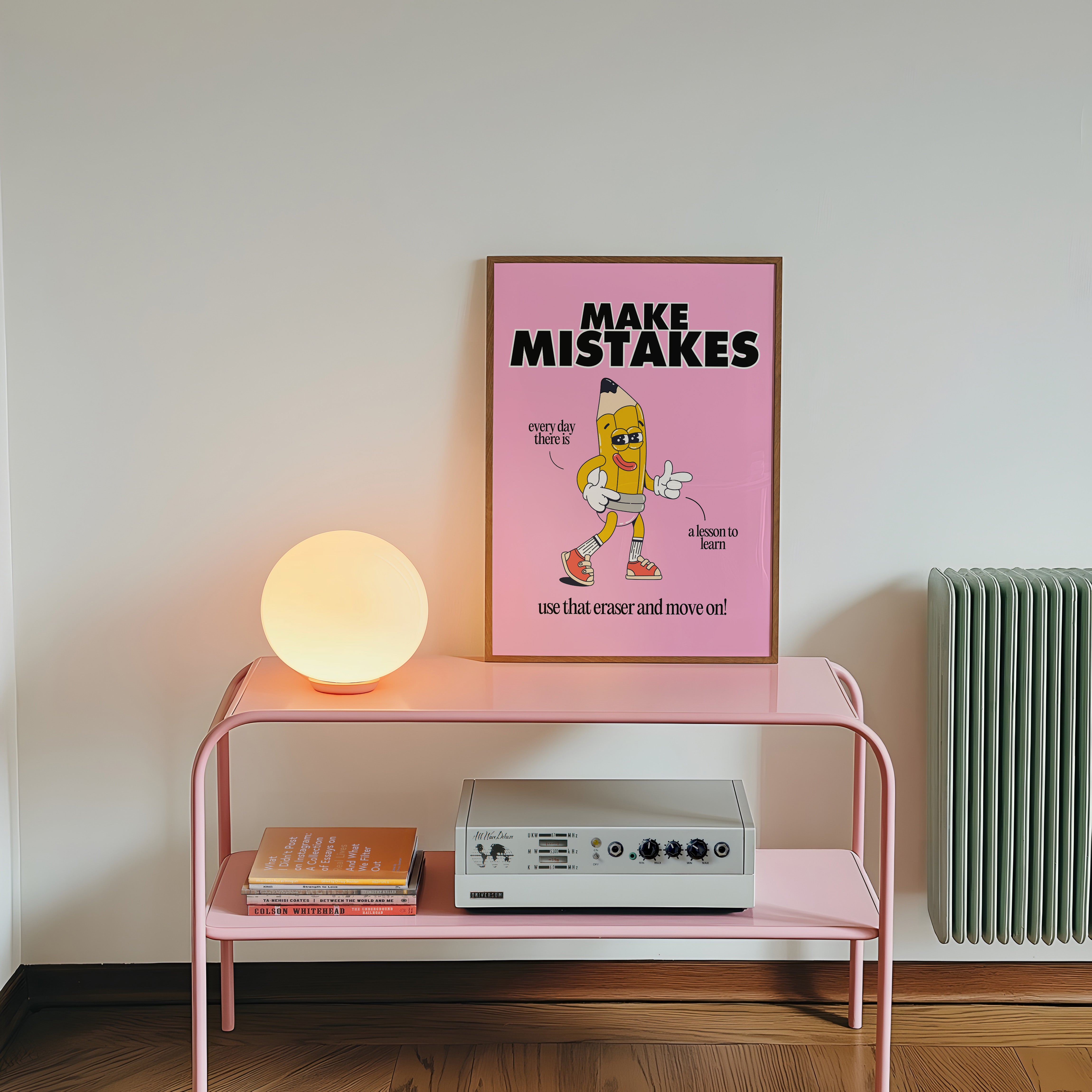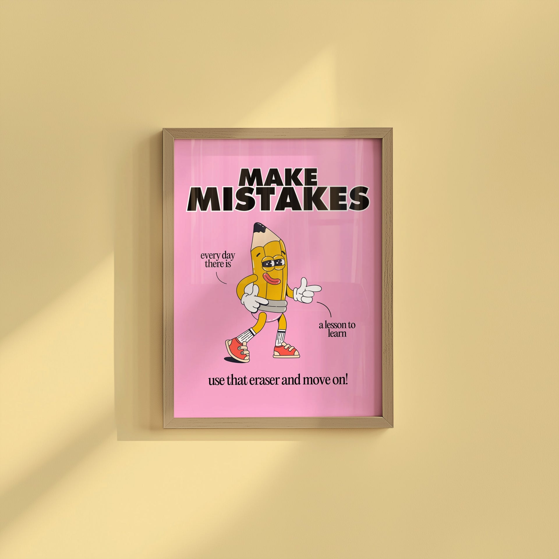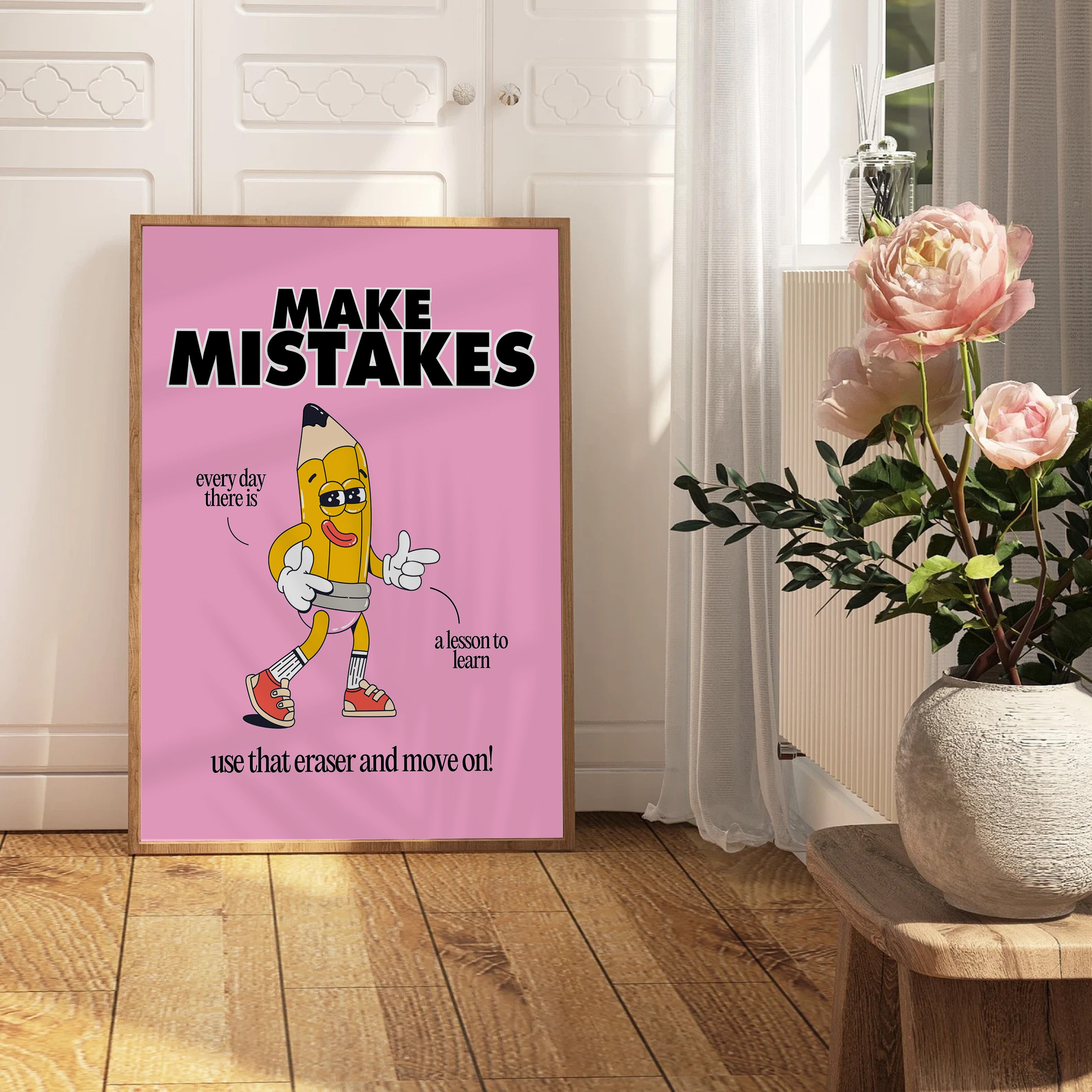 Make Mistakes Cartoon Vertical Art Print - Pink