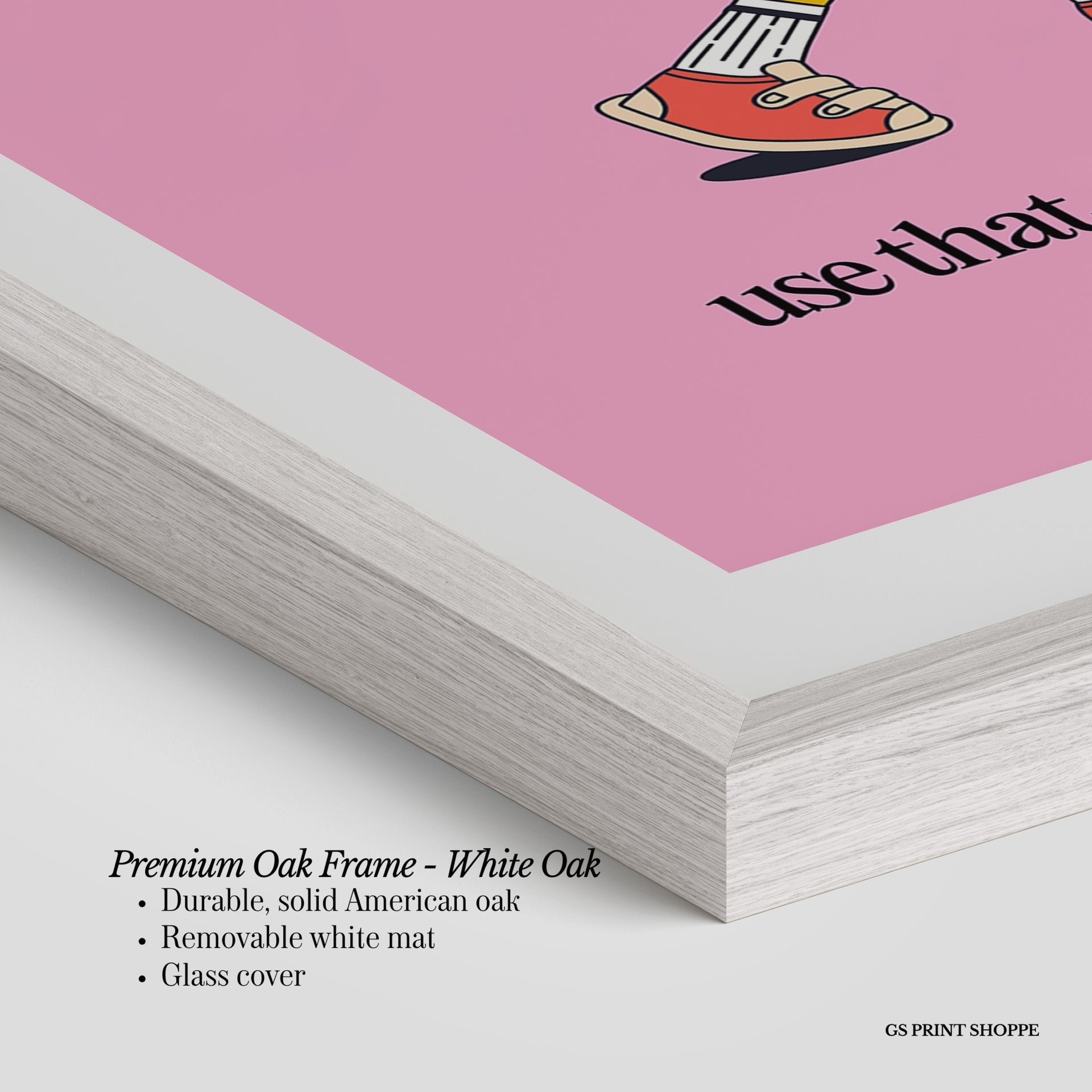 Premium Oak Frame: Our premium oak frame is crafted from solid American oak, offering a warm, natural feel with a high-end finish. We complete this elevated offering with a bright white removable mat and real glass for a versatile and polished look.