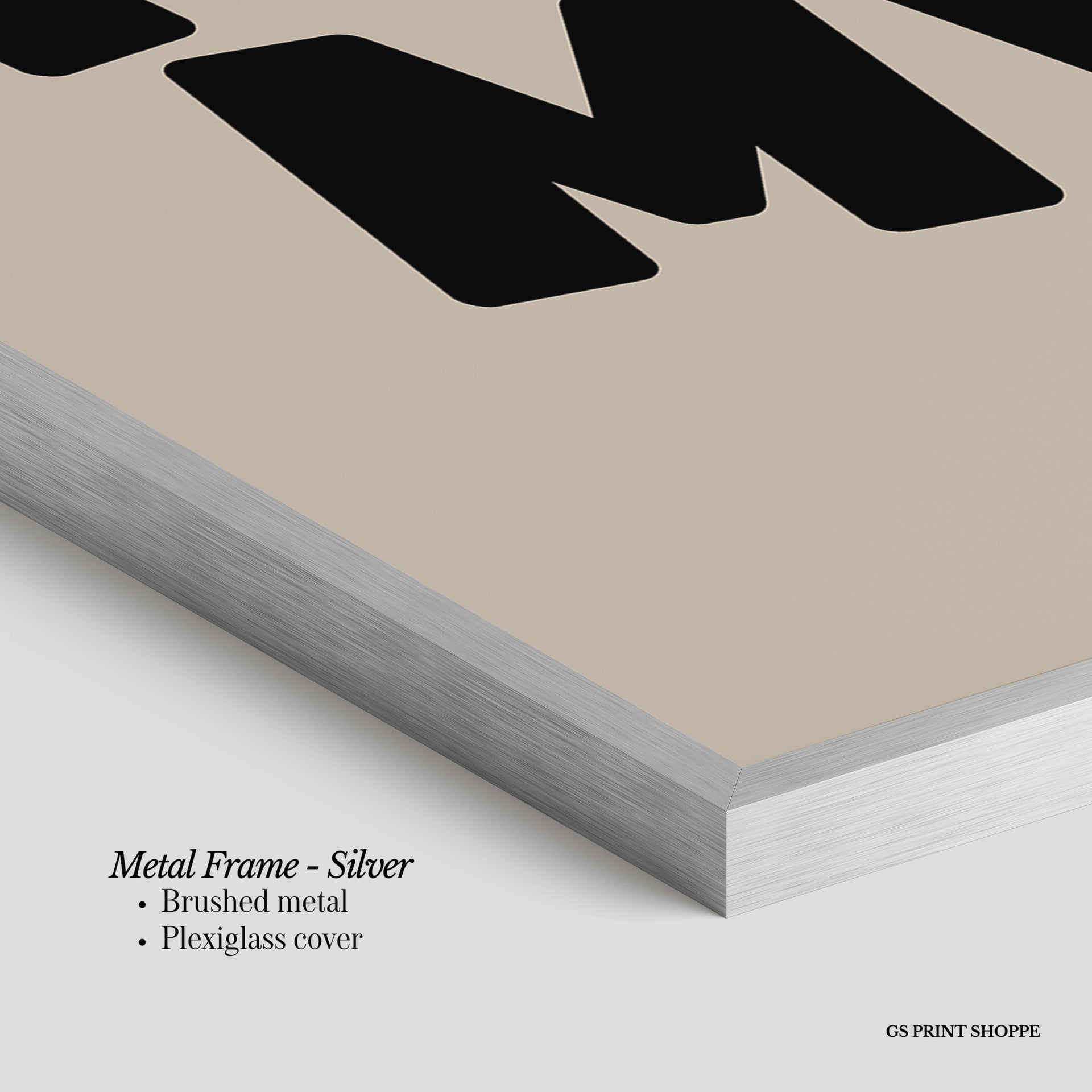 Metal Frame: Sleek and modern, our metal frame is crafted with brushed metal for a polished finish. It comes with durable plexiglass and sturdy metal hangers for horizontal or vertical display.