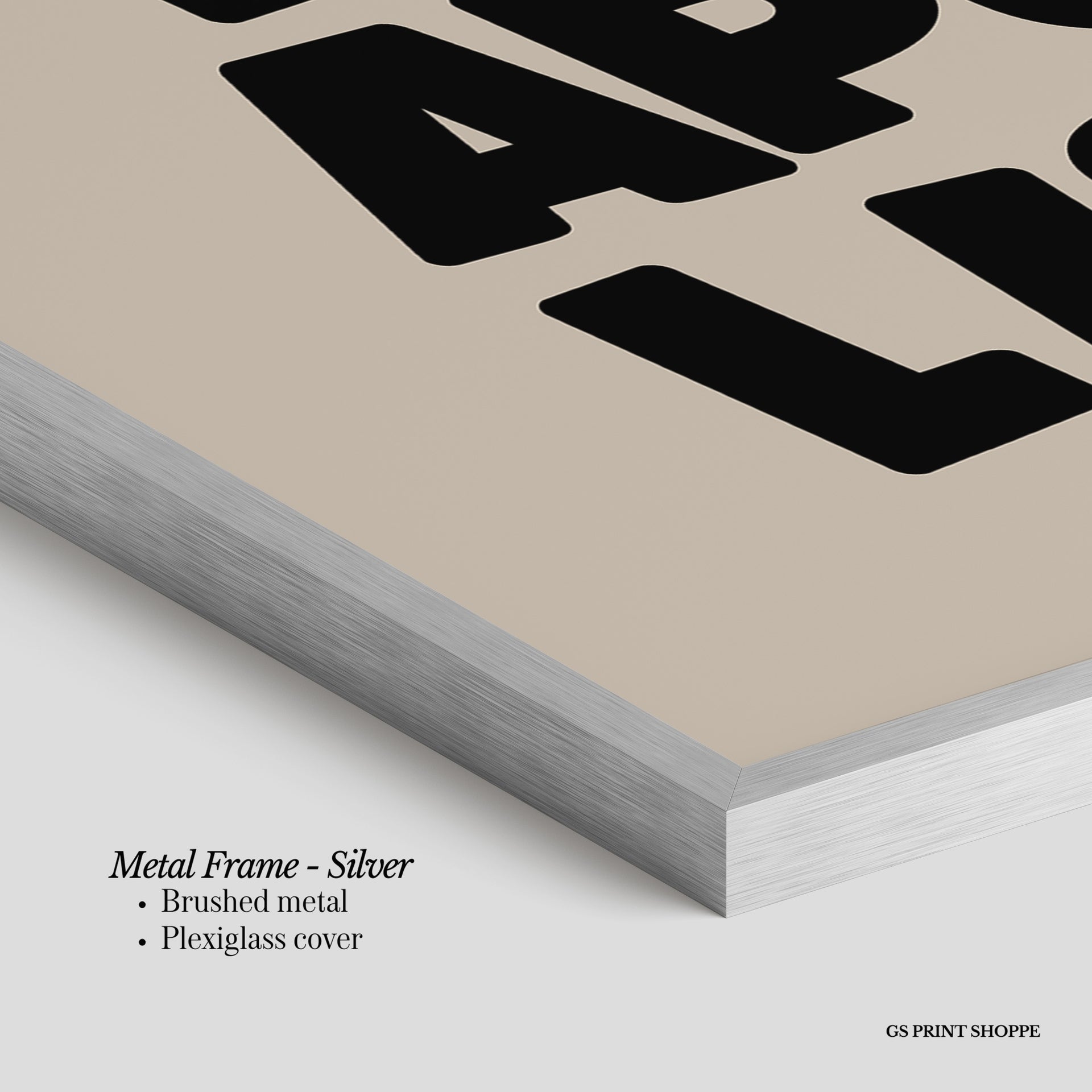 Metal Frame: Sleek and modern, our metal frame is crafted with brushed metal for a polished finish. It comes with durable plexiglass and sturdy metal hangers for horizontal or vertical display.