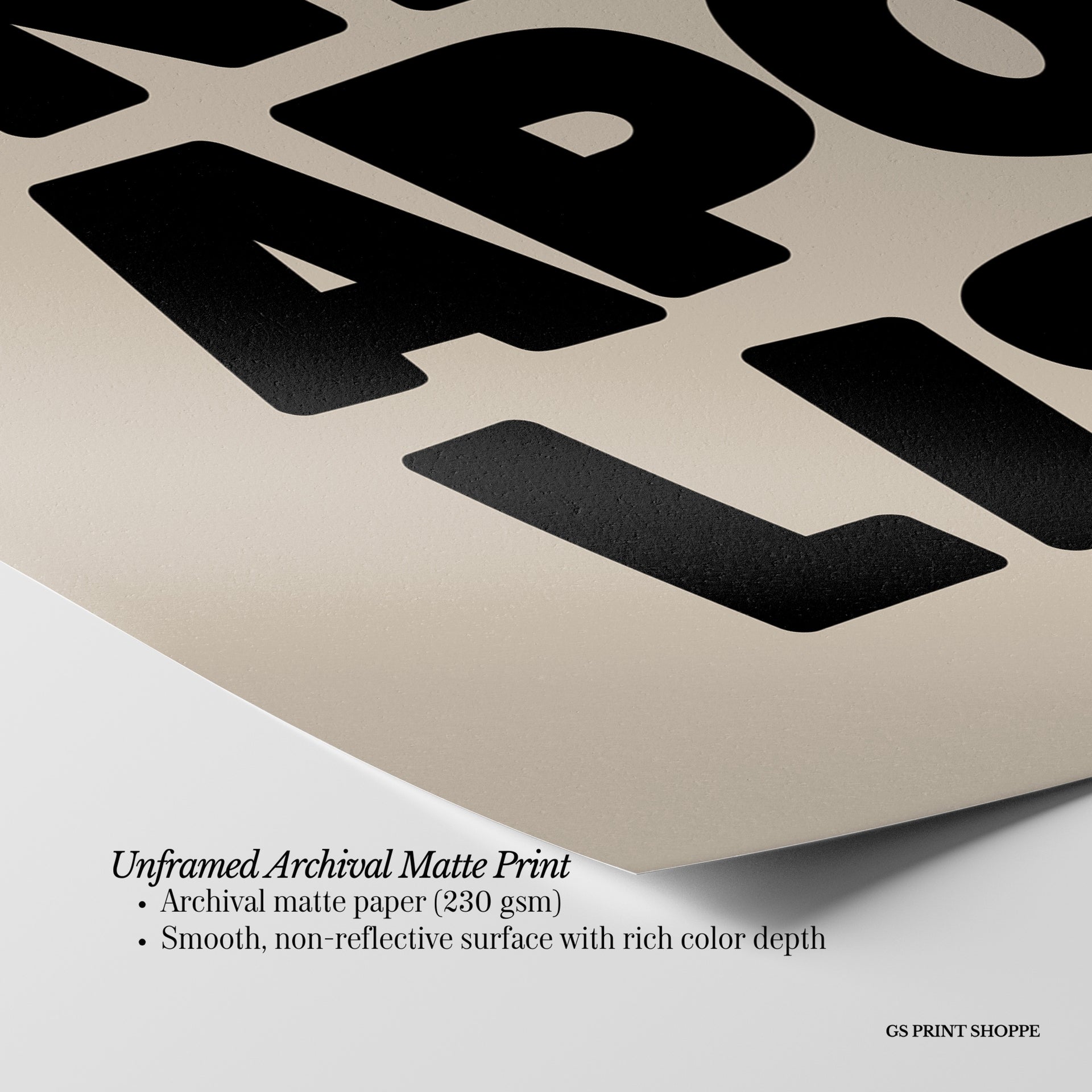 Unframed: This print is professionally printed on archival matte paper (230 gsm), a smooth, acid-free paper with a non-reflective finish. It will be carefully packaged to arrive safely at your door.