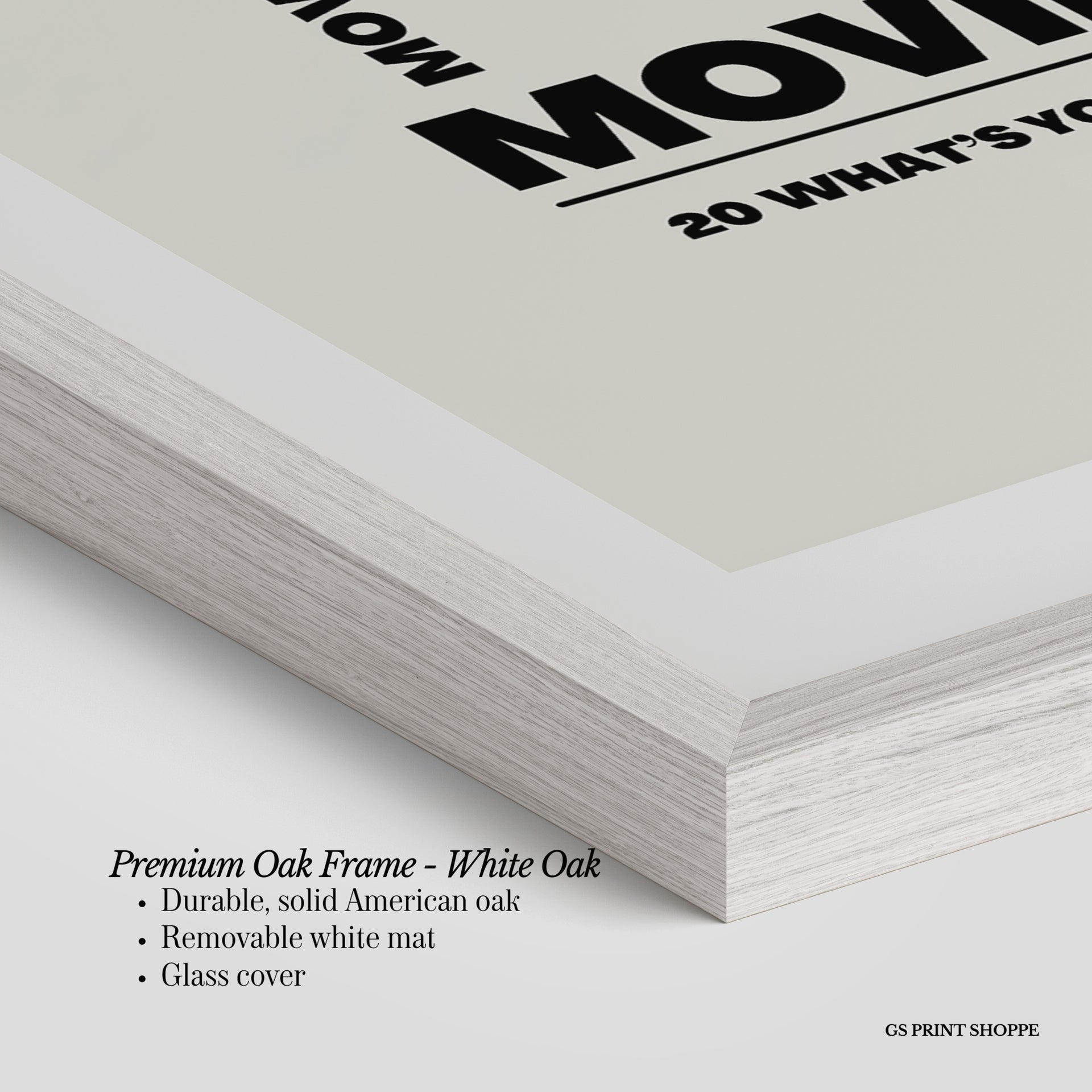 Premium Oak Frame: Our premium oak frame is crafted from solid American oak, offering a warm, natural feel with a high-end finish. We complete this elevated offering with a bright white removable mat and real glass for a versatile and polished look.