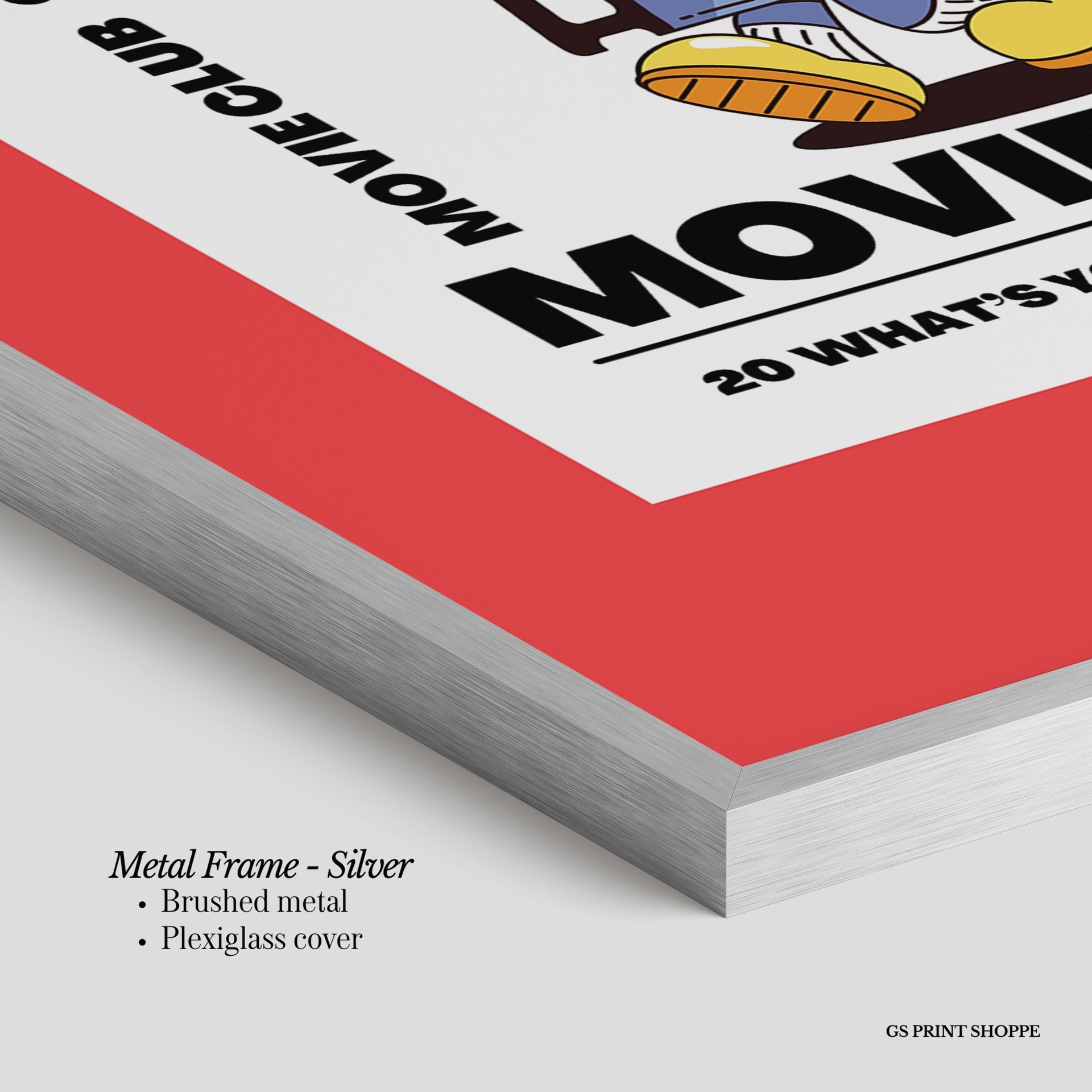 Metal Frame: Sleek and modern, our metal frame is crafted with brushed metal for a polished finish. It comes with durable plexiglass and sturdy metal hangers for horizontal or vertical display.