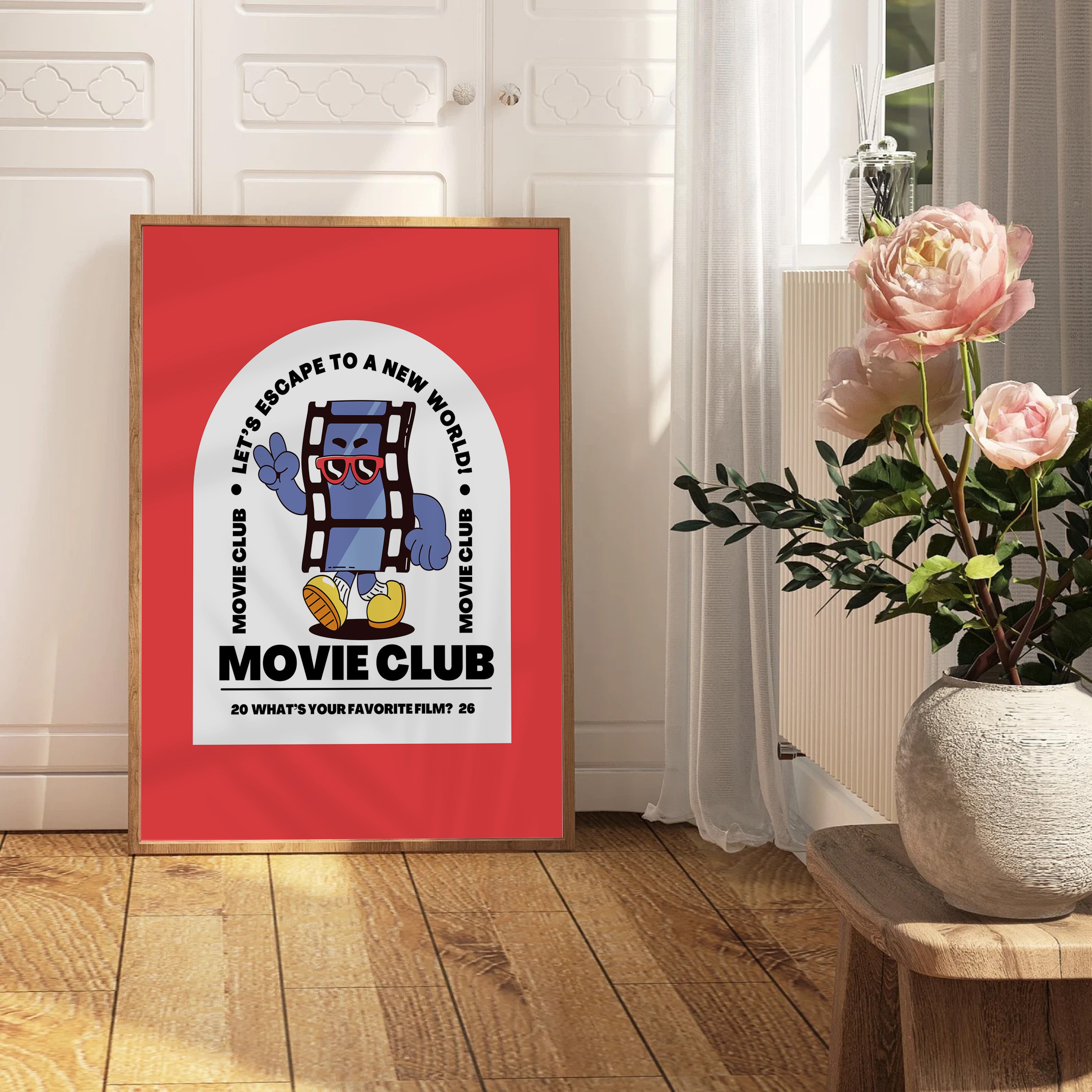 Movie Club Vertical Art Print - Red
