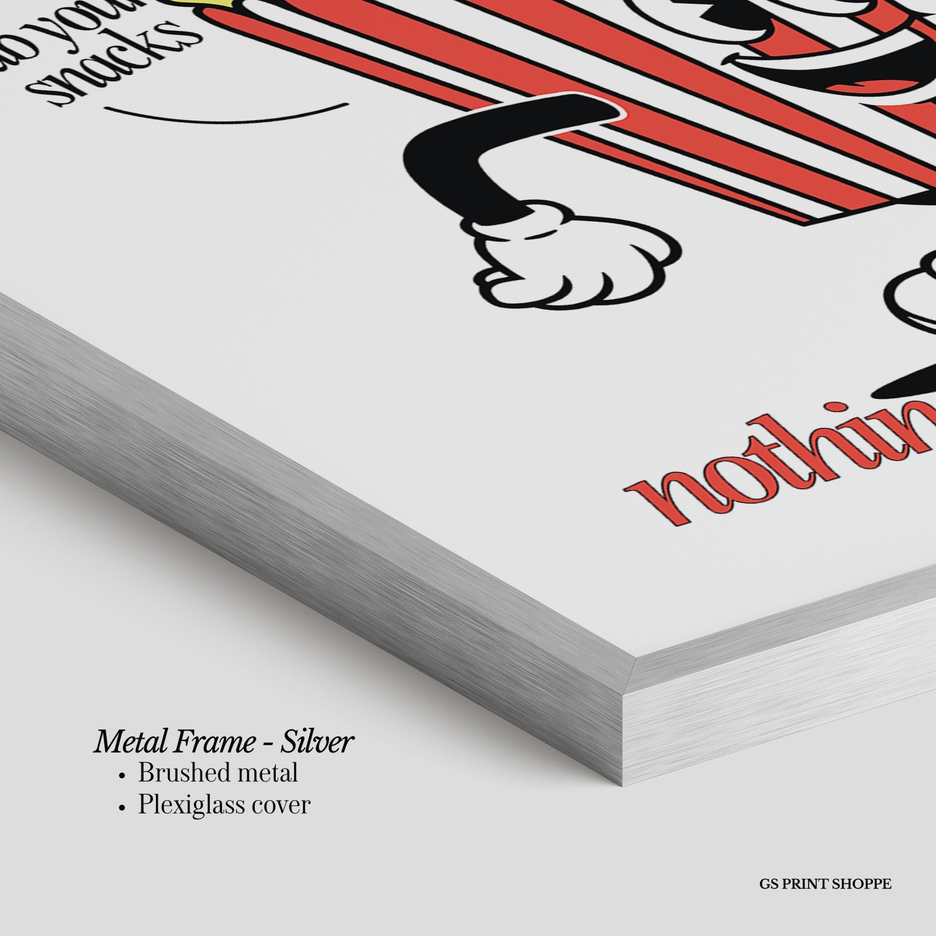 Metal Frame: Sleek and modern, our metal frame is crafted with brushed metal for a polished finish. It comes with durable plexiglass and sturdy metal hangers for horizontal or vertical display.