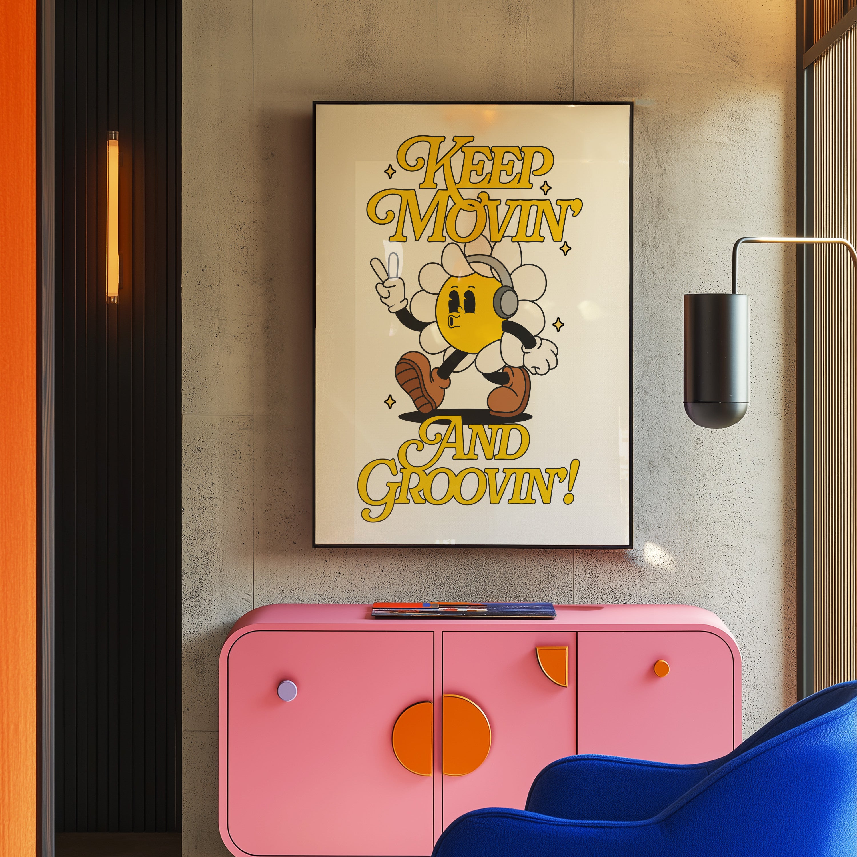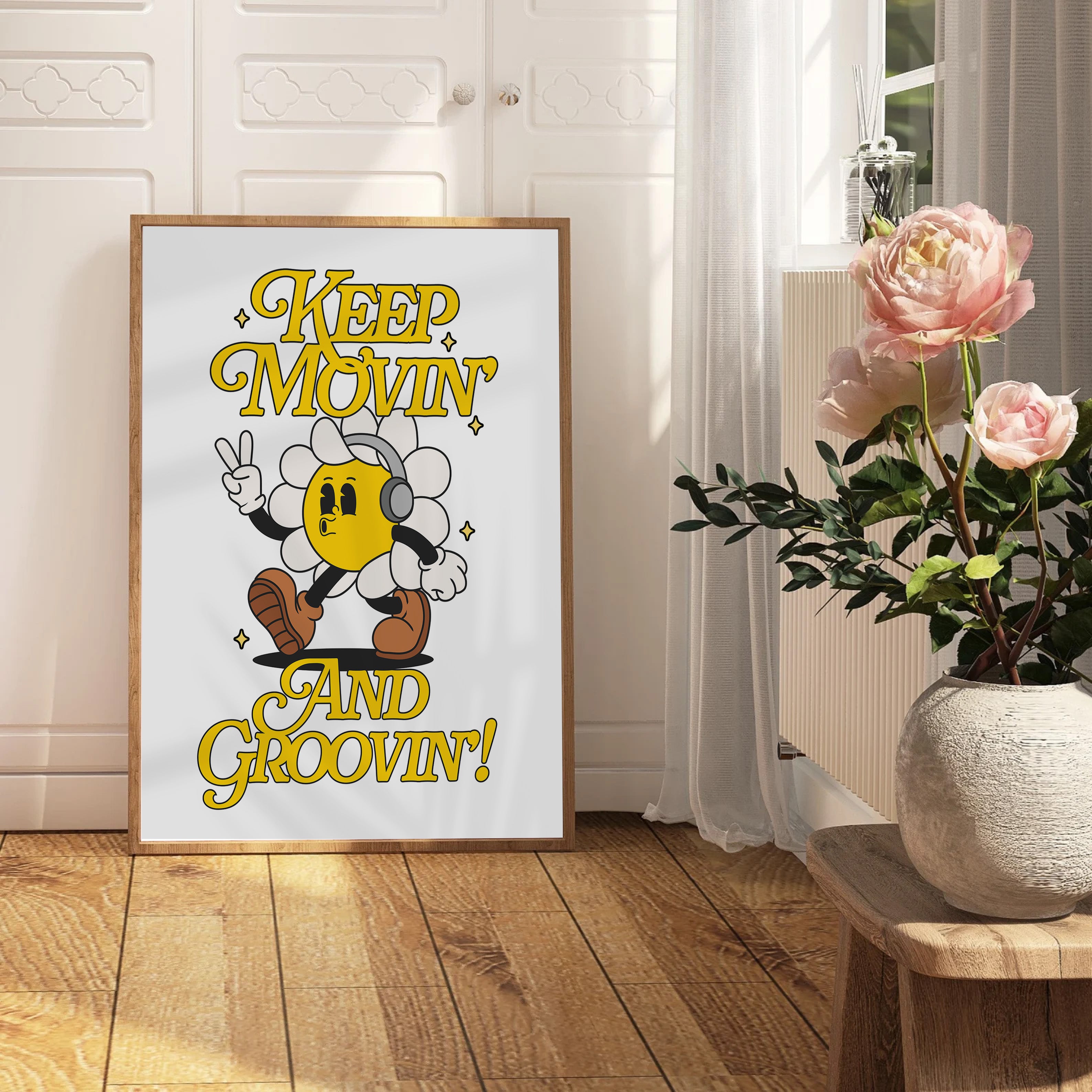 Moving and Grooving Vertical Art Print - White
