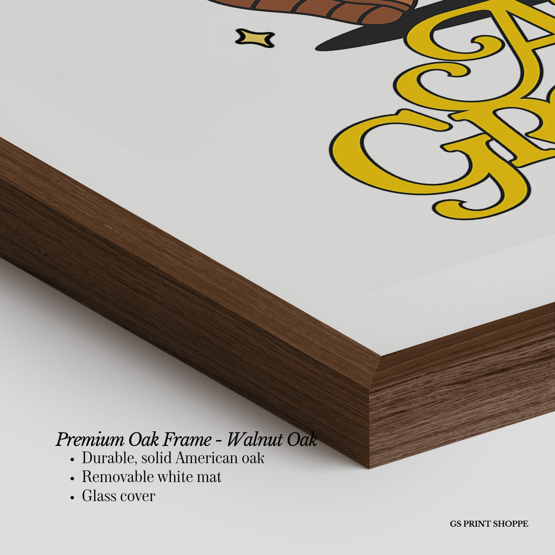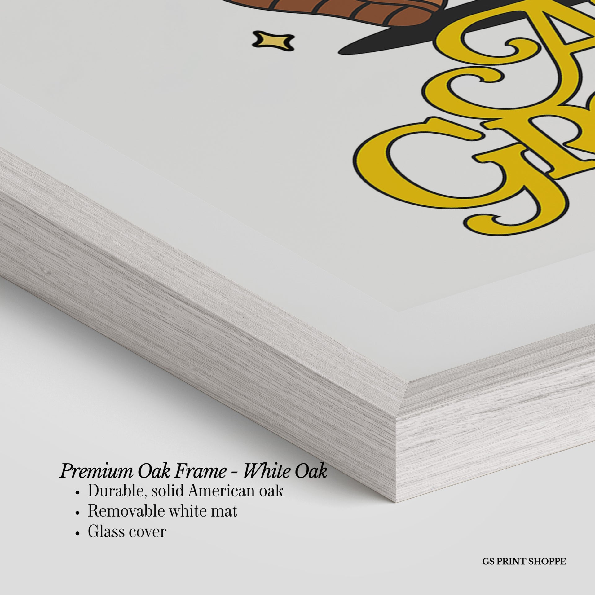 Premium Oak Frame: Our premium oak frame is crafted from solid American oak, offering a warm, natural feel with a high-end finish. We complete this elevated offering with a bright white removable mat and real glass for a versatile and polished look.