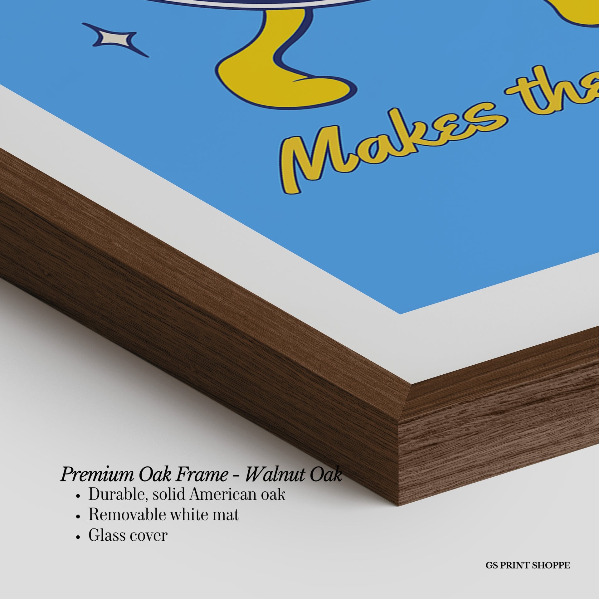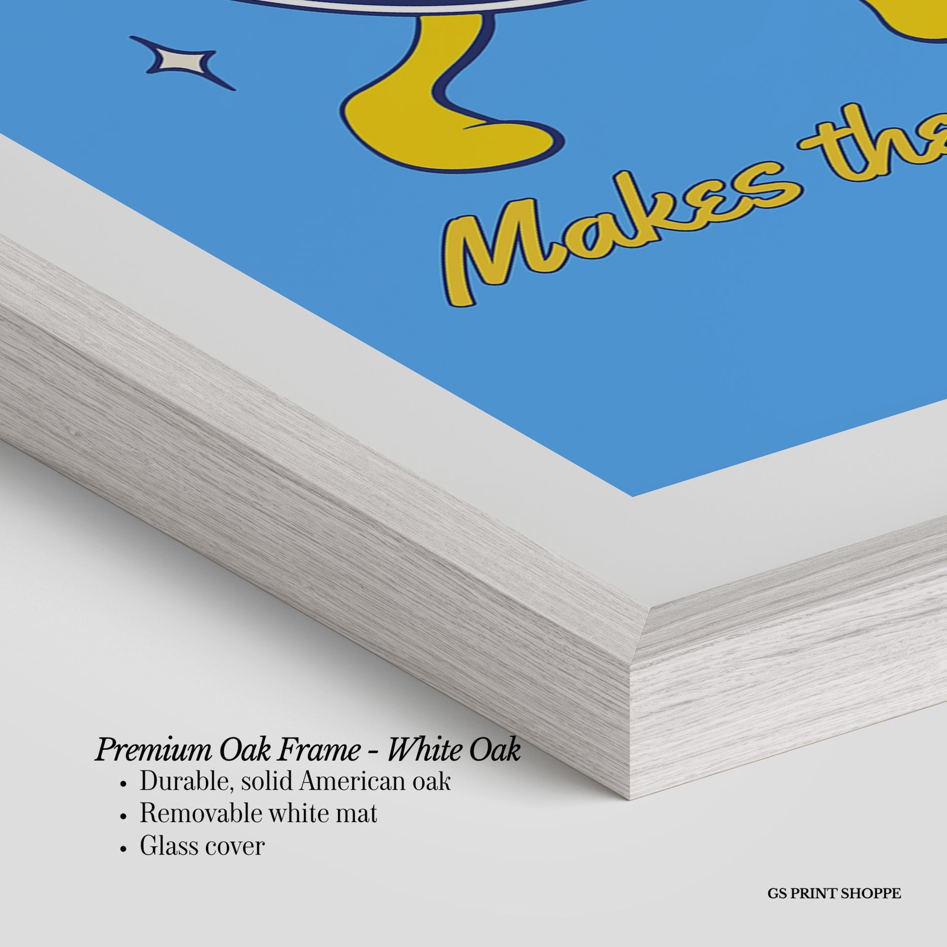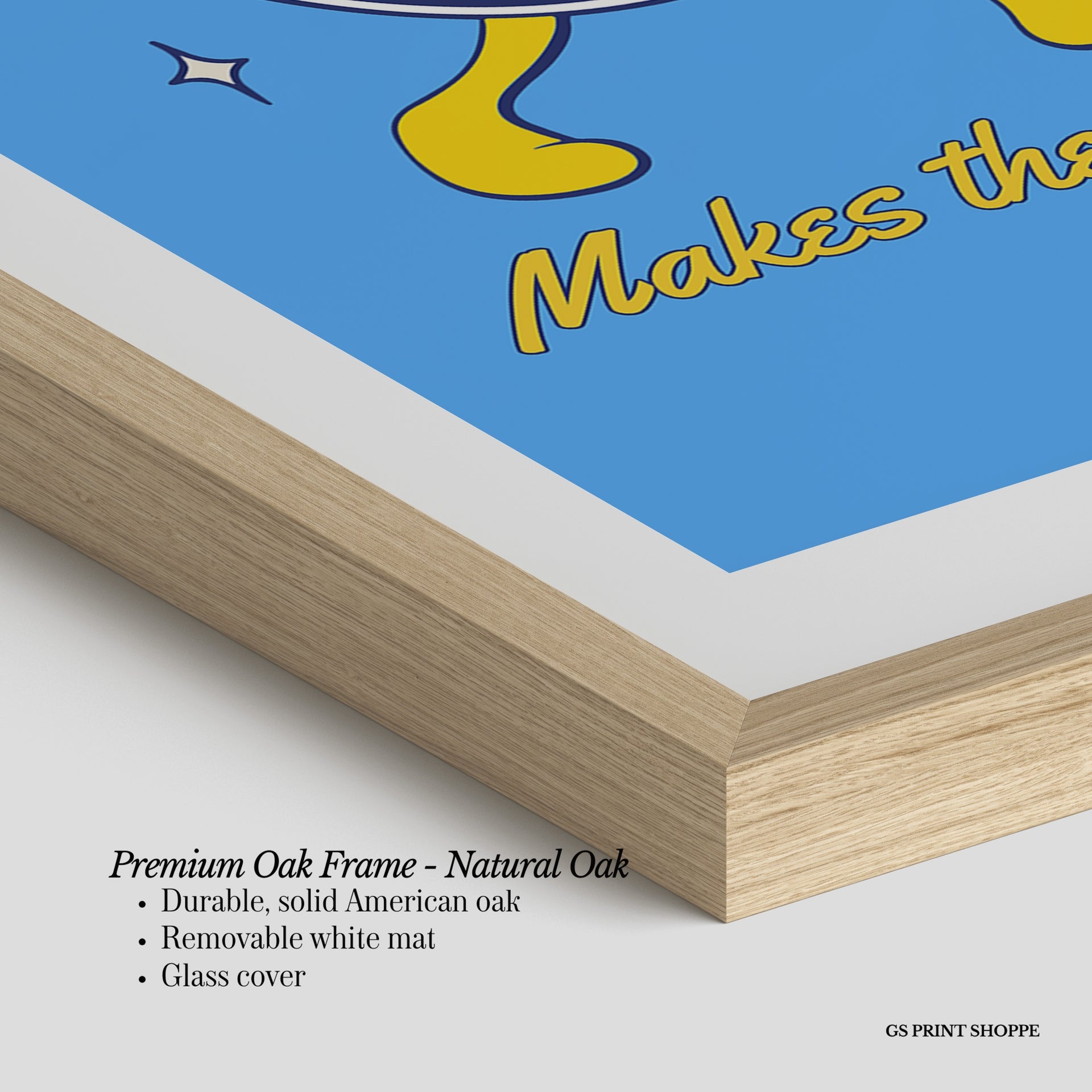 Premium Oak Frame: Our premium oak frame is crafted from solid American oak, offering a warm, natural feel with a high-end finish. We complete this elevated offering with a bright white removable mat and real glass for a versatile and polished look.