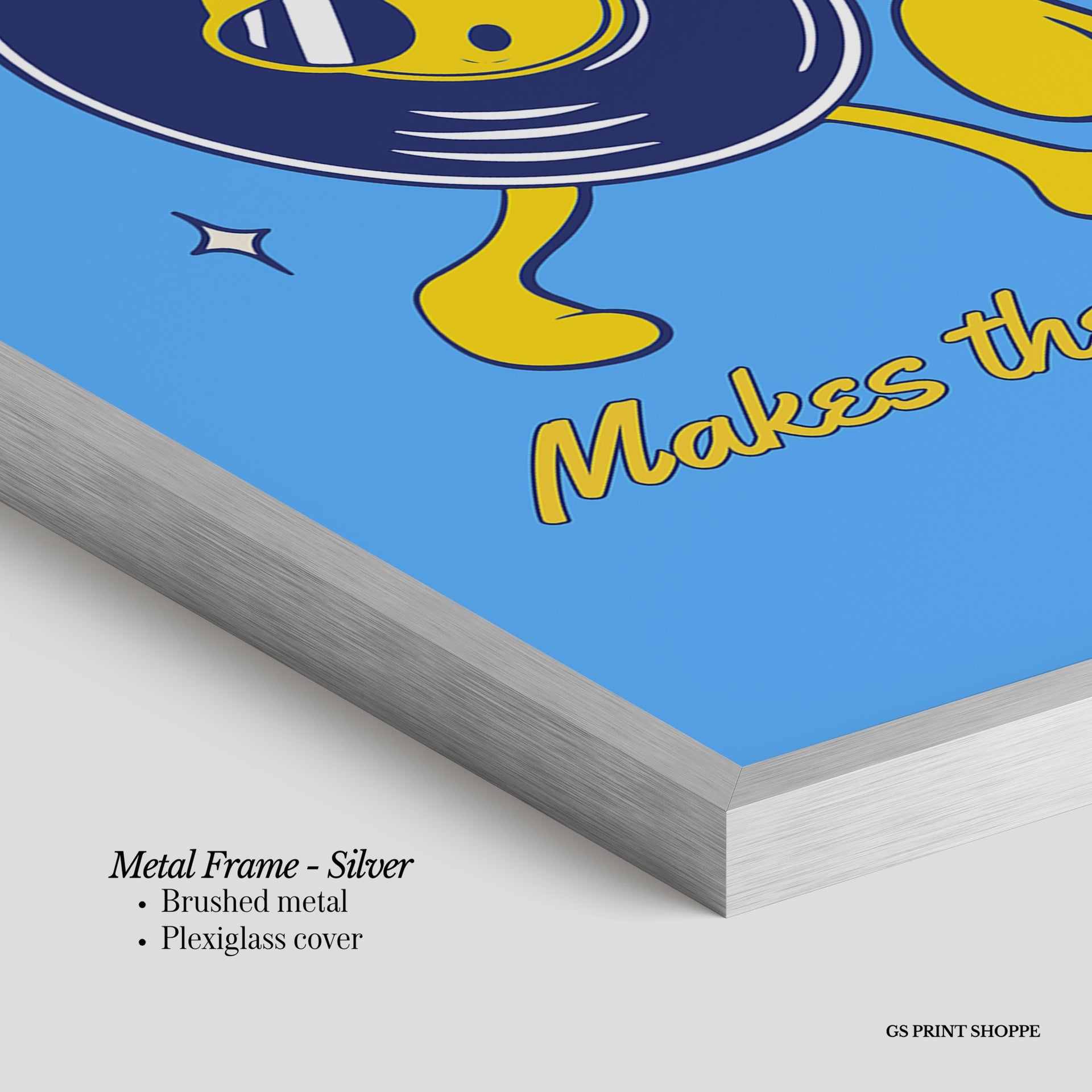 Metal Frame: Sleek and modern, our metal frame is crafted with brushed metal for a polished finish. It comes with durable plexiglass and sturdy metal hangers for horizontal or vertical display.