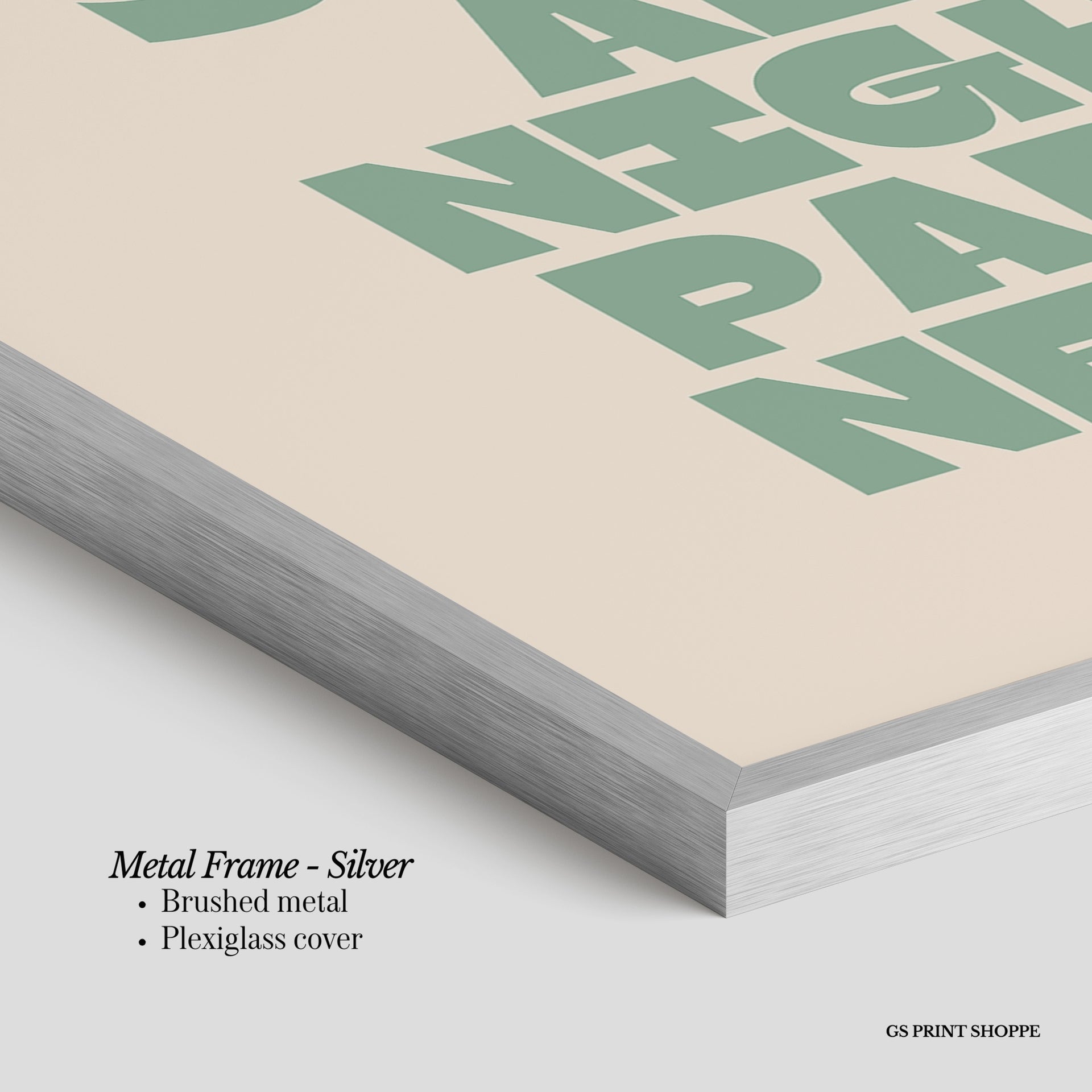 Metal Frame: Sleek and modern, our metal frame is crafted with brushed metal for a polished finish. It comes with durable plexiglass and sturdy metal hangers for horizontal or vertical display.