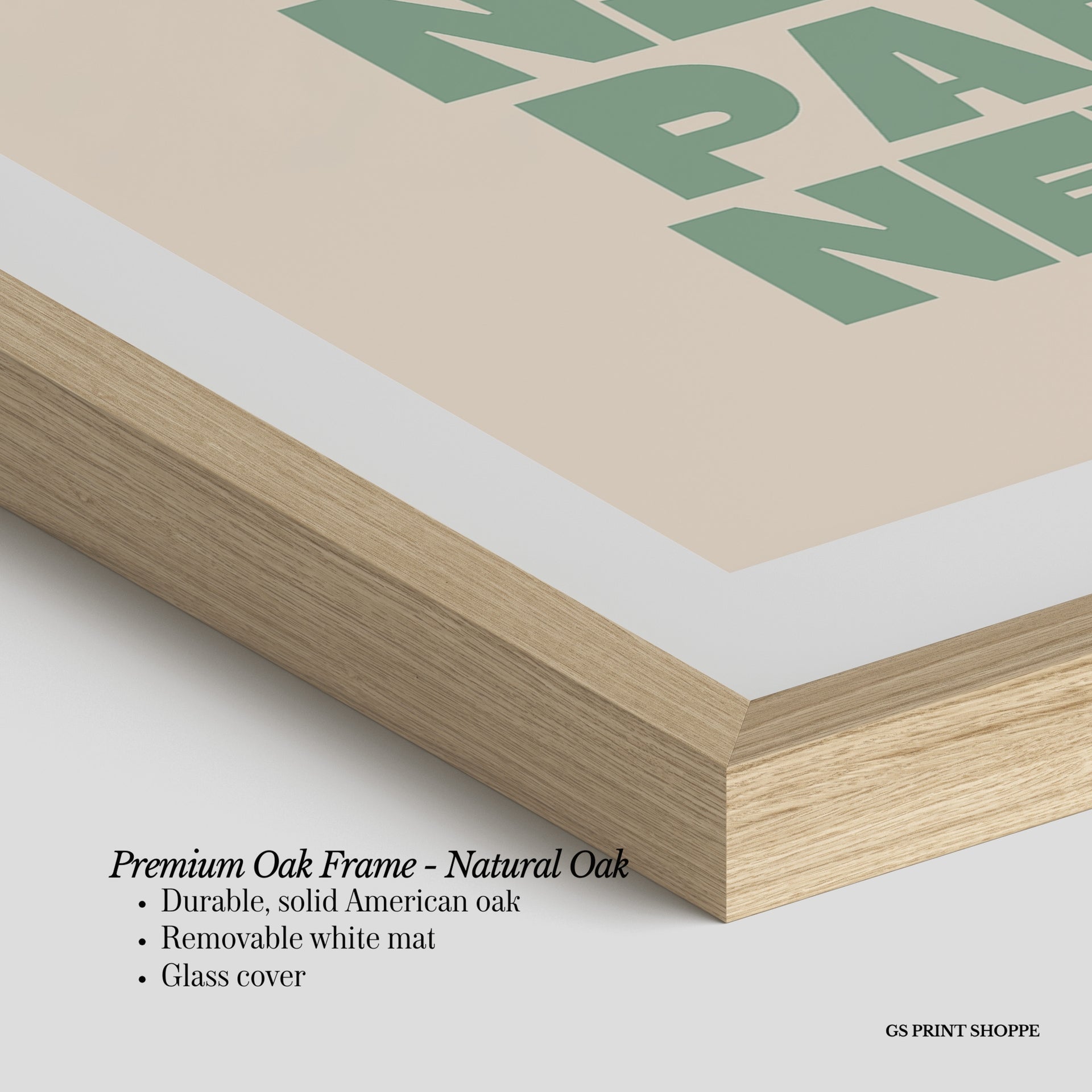 Premium Oak Frame: Our premium oak frame is crafted from solid American oak, offering a warm, natural feel with a high-end finish. We complete this elevated offering with a bright white removable mat and real glass for a versatile and polished look.