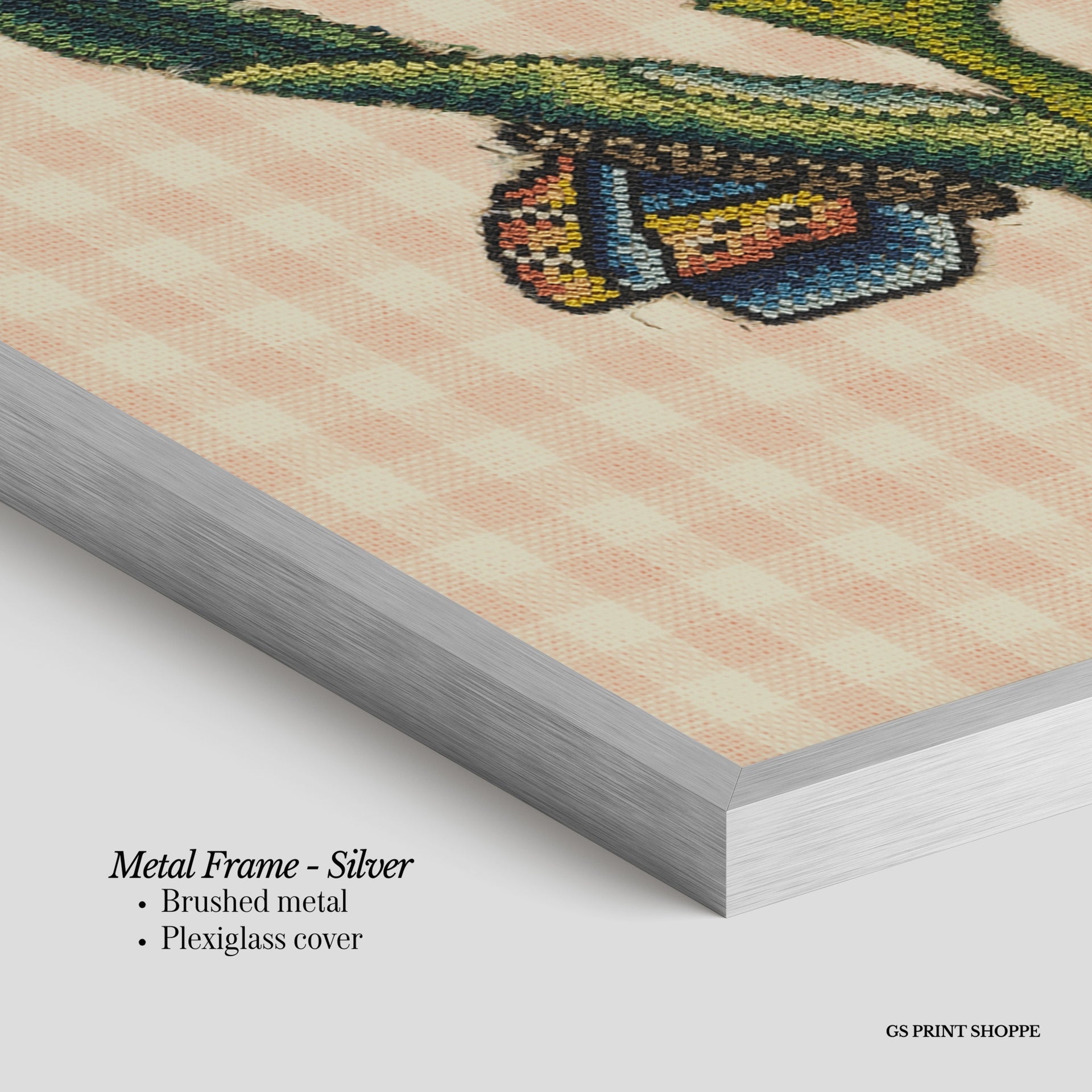 Metal Frame: Sleek and modern, our metal frame is crafted with brushed metal for a polished finish. It comes with durable plexiglass and sturdy metal hangers for horizontal or vertical display.