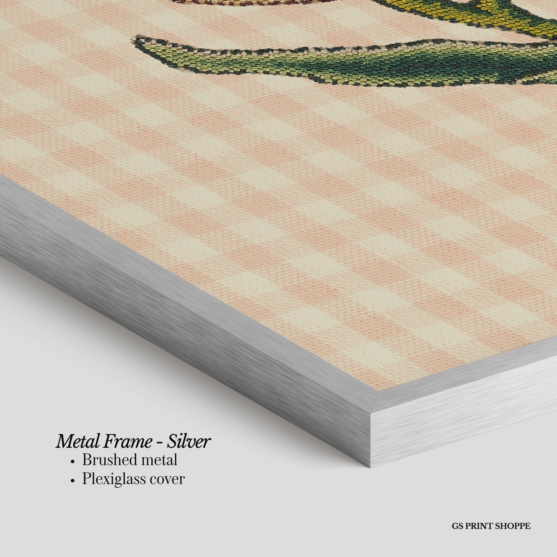 Metal Frame: Sleek and modern, our metal frame is crafted with brushed metal for a polished finish. It comes with durable plexiglass and sturdy metal hangers for horizontal or vertical display.
