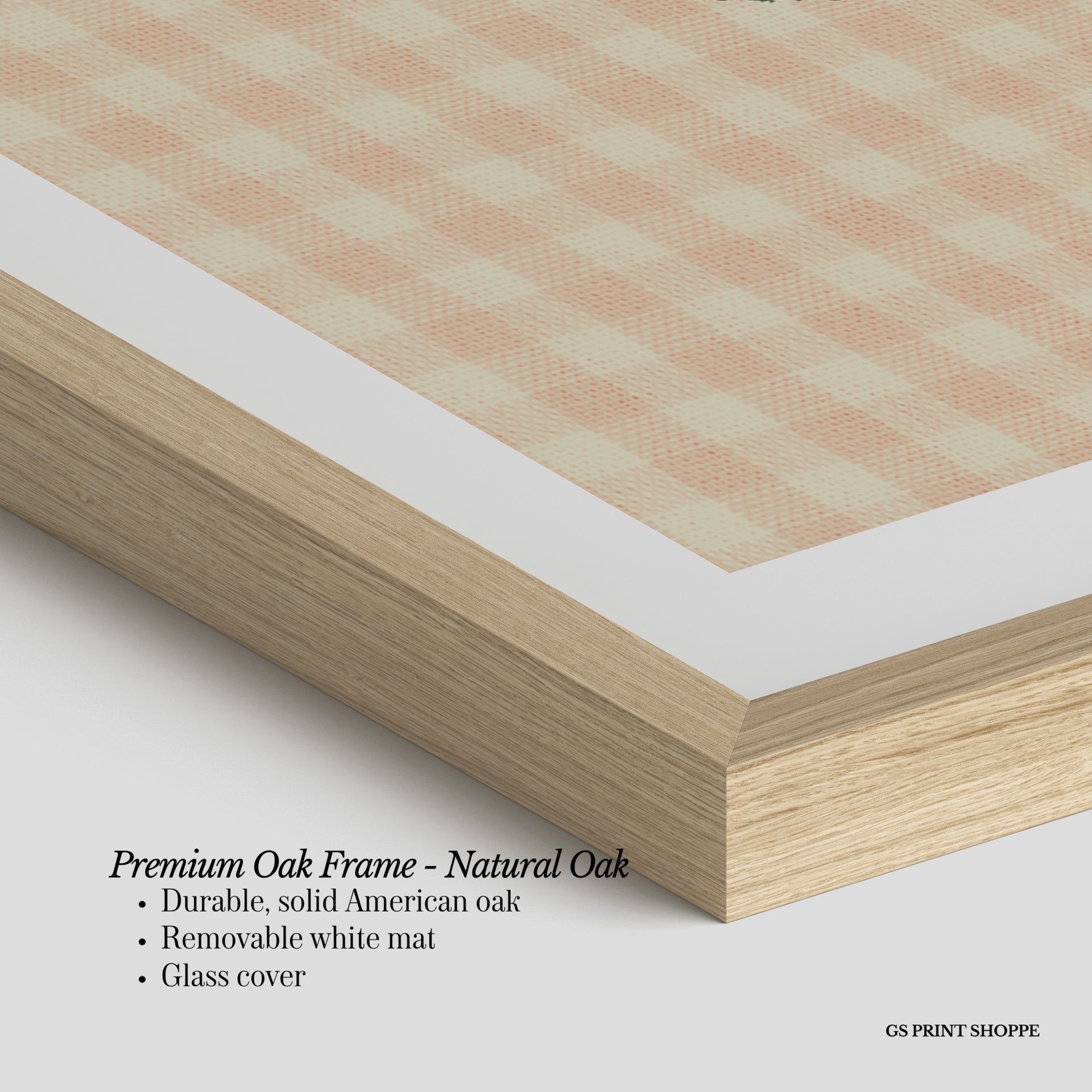 Premium Oak Frame: Our premium oak frame is crafted from solid American oak, offering a warm, natural feel with a high-end finish. We complete this elevated offering with a bright white removable mat and real glass for a versatile and polished look.
