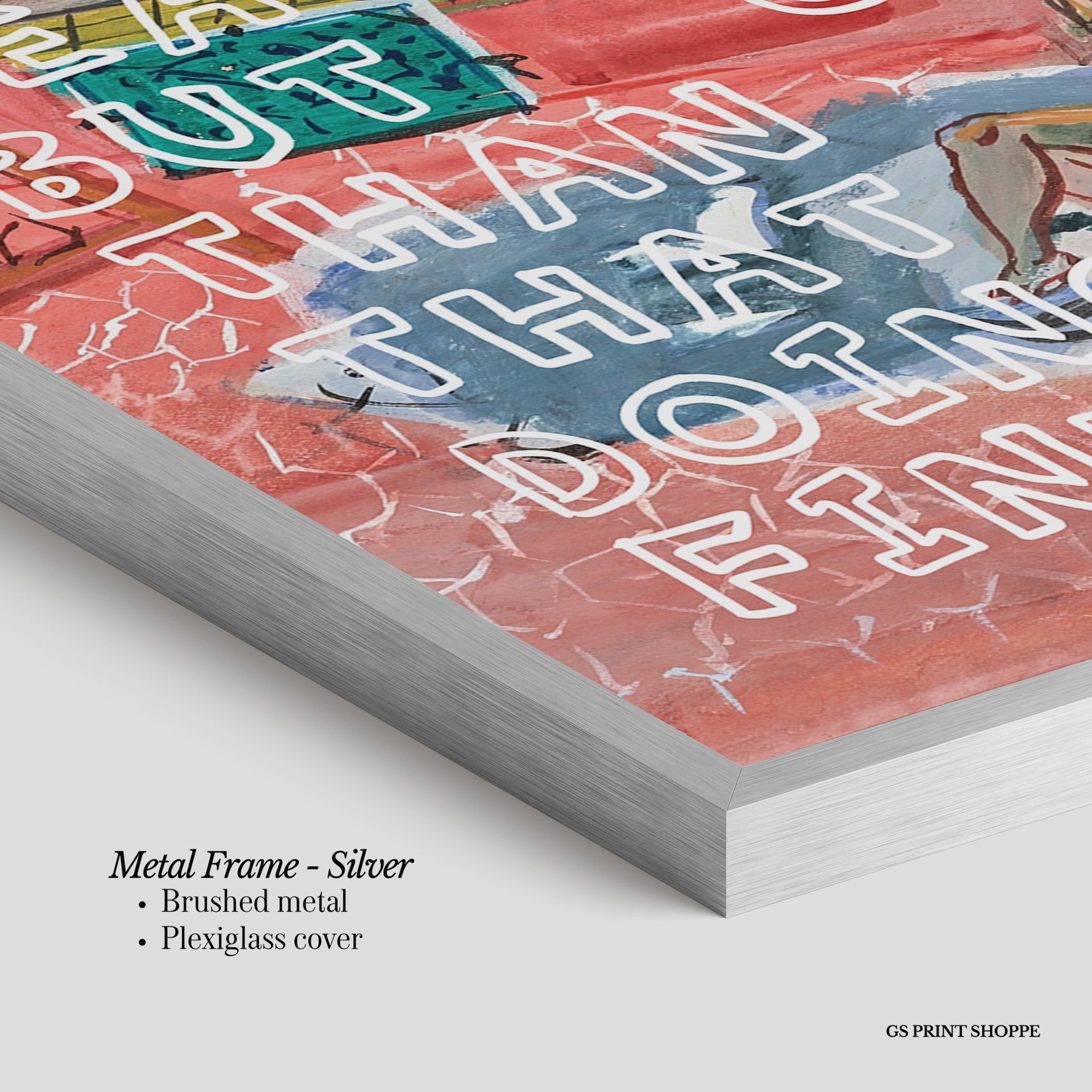 Metal Frame: Sleek and modern, our metal frame is crafted with brushed metal for a polished finish. It comes with durable plexiglass and sturdy metal hangers for horizontal or vertical display.