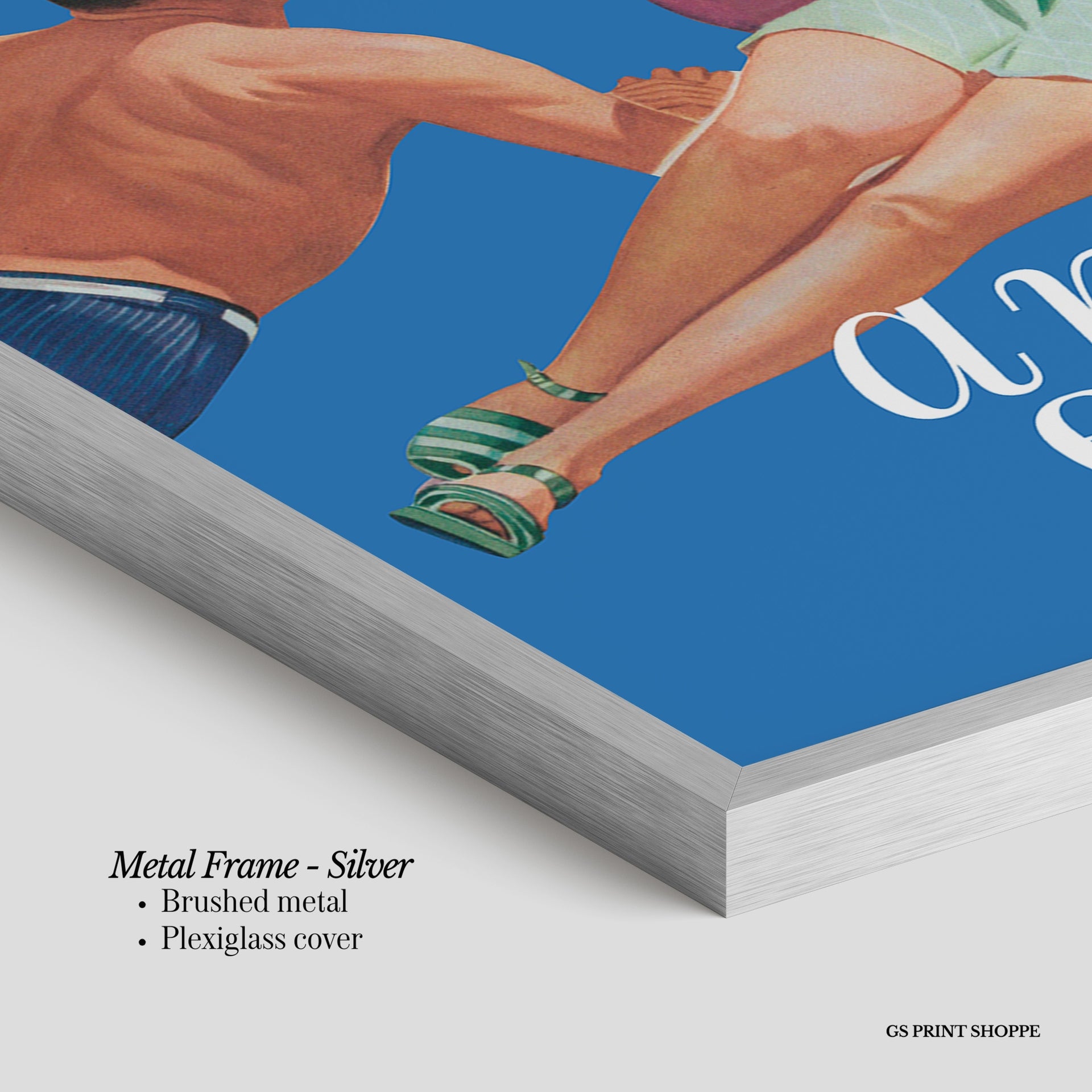 Metal Frame: Sleek and modern, our metal frame is crafted with brushed metal for a polished finish. It comes with durable plexiglass and sturdy metal hangers for horizontal or vertical display.