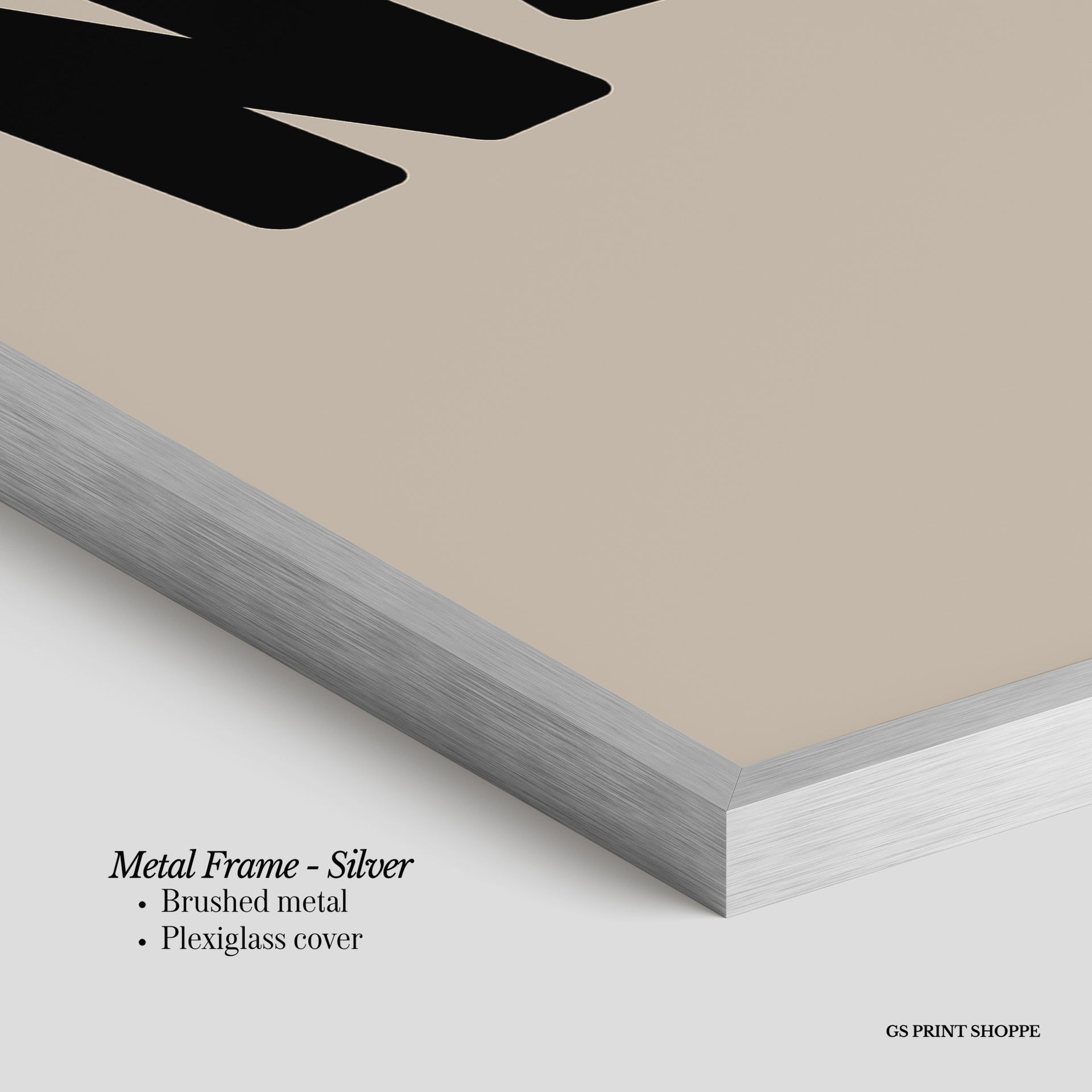 Metal Frame: Sleek and modern, our metal frame is crafted with brushed metal for a polished finish. It comes with durable plexiglass and sturdy metal hangers for horizontal or vertical display.