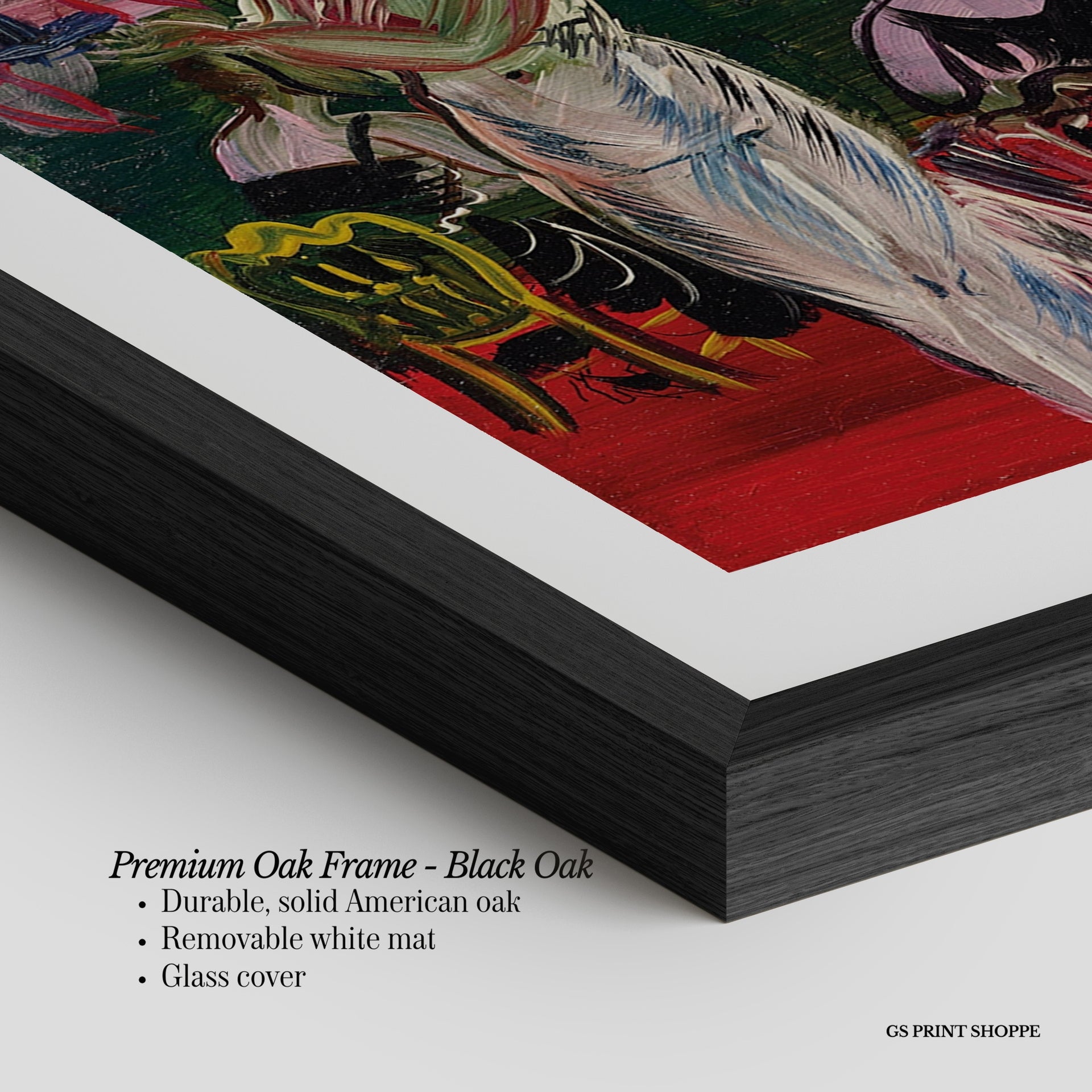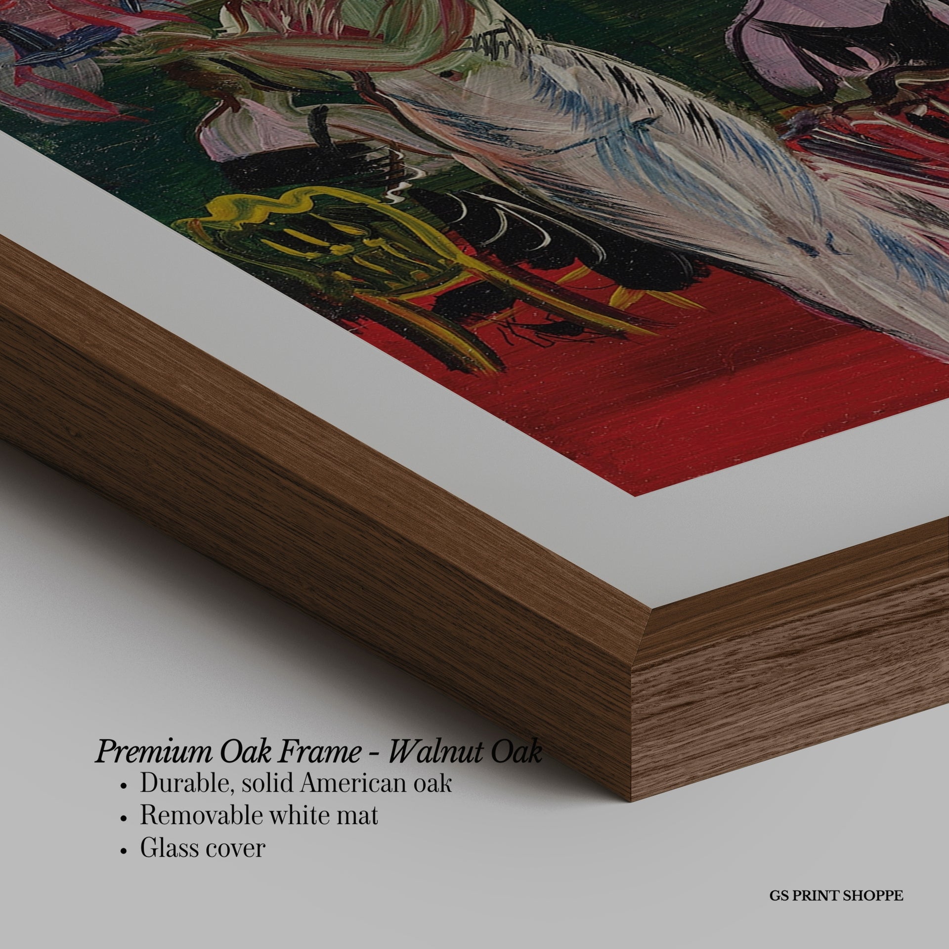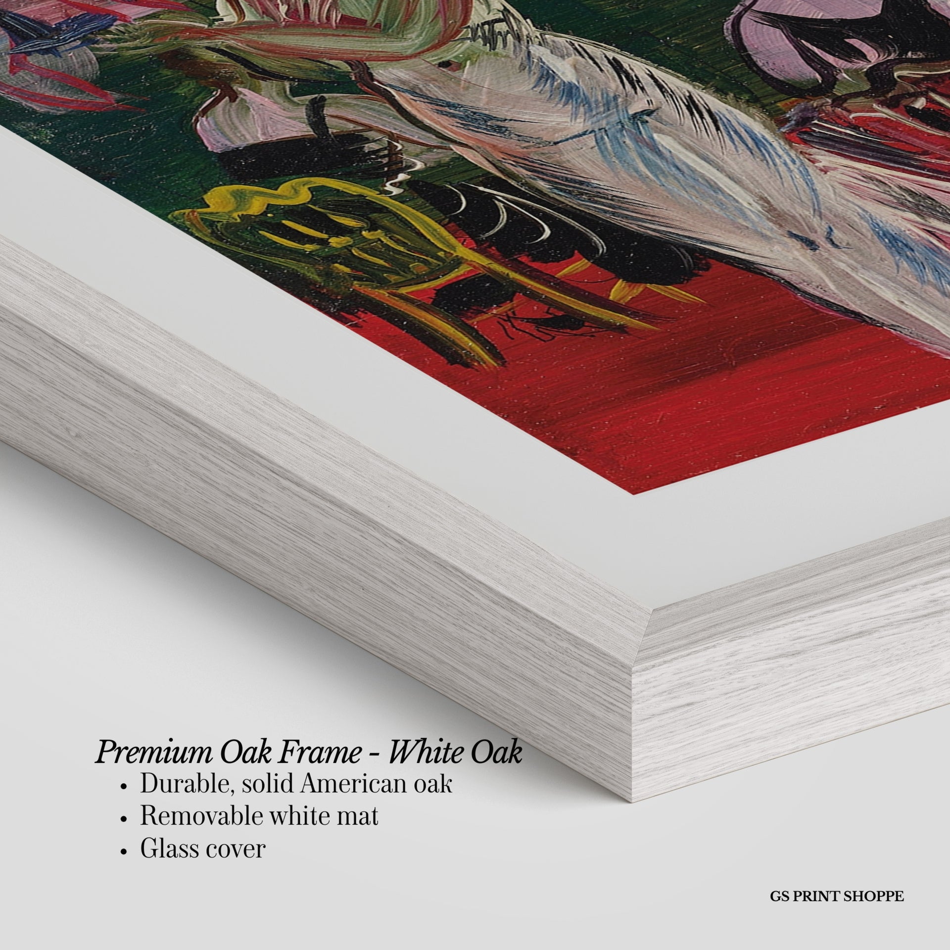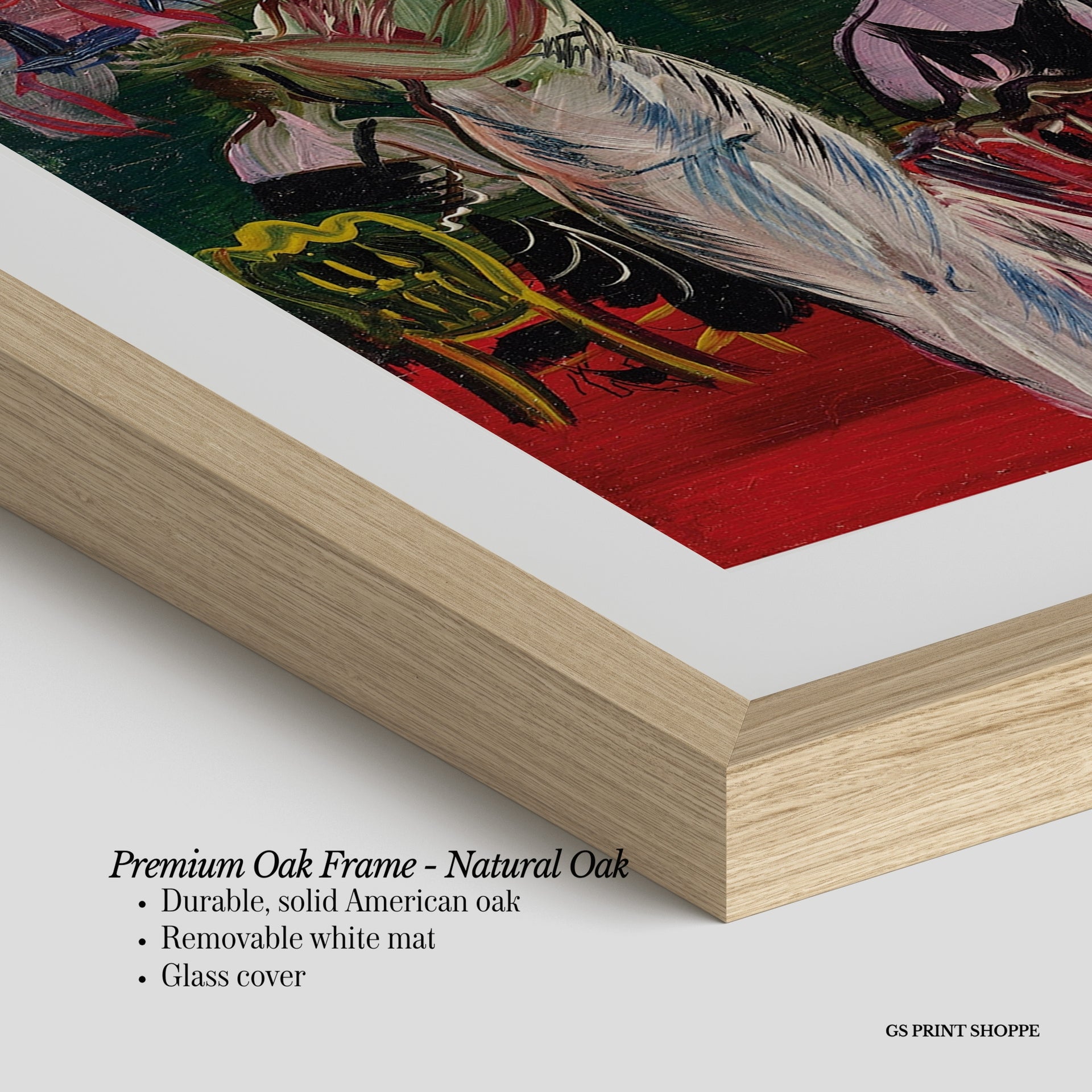 Premium Oak Frame: Our premium oak frame is crafted from solid American oak, offering a warm, natural feel with a high-end finish. We complete this elevated offering with a bright white removable mat and real glass for a versatile and polished look.