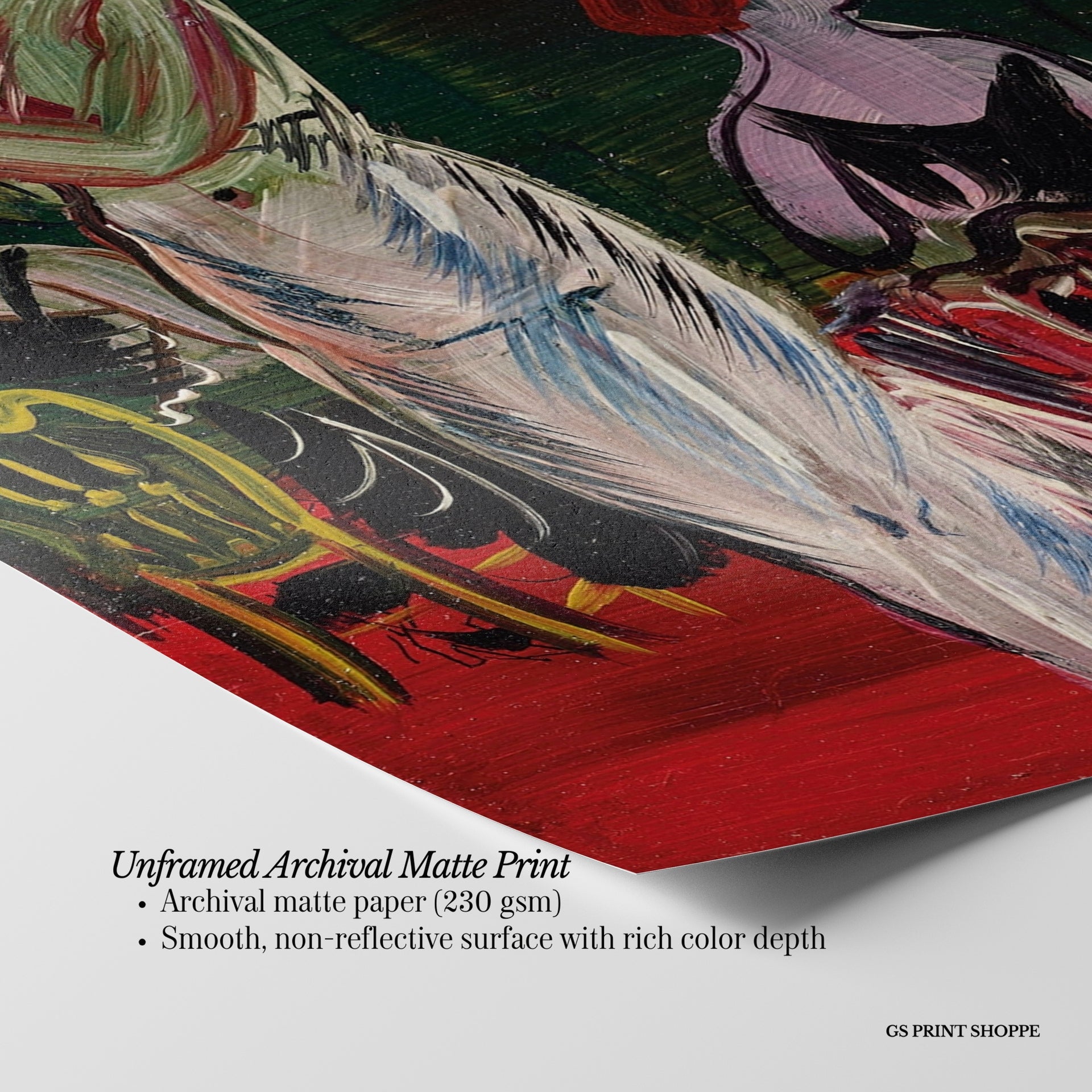 Unframed: This print is professionally printed on archival matte paper (230 gsm), a smooth, acid-free paper with a non-reflective finish. It will be carefully packaged to arrive safely at your door.