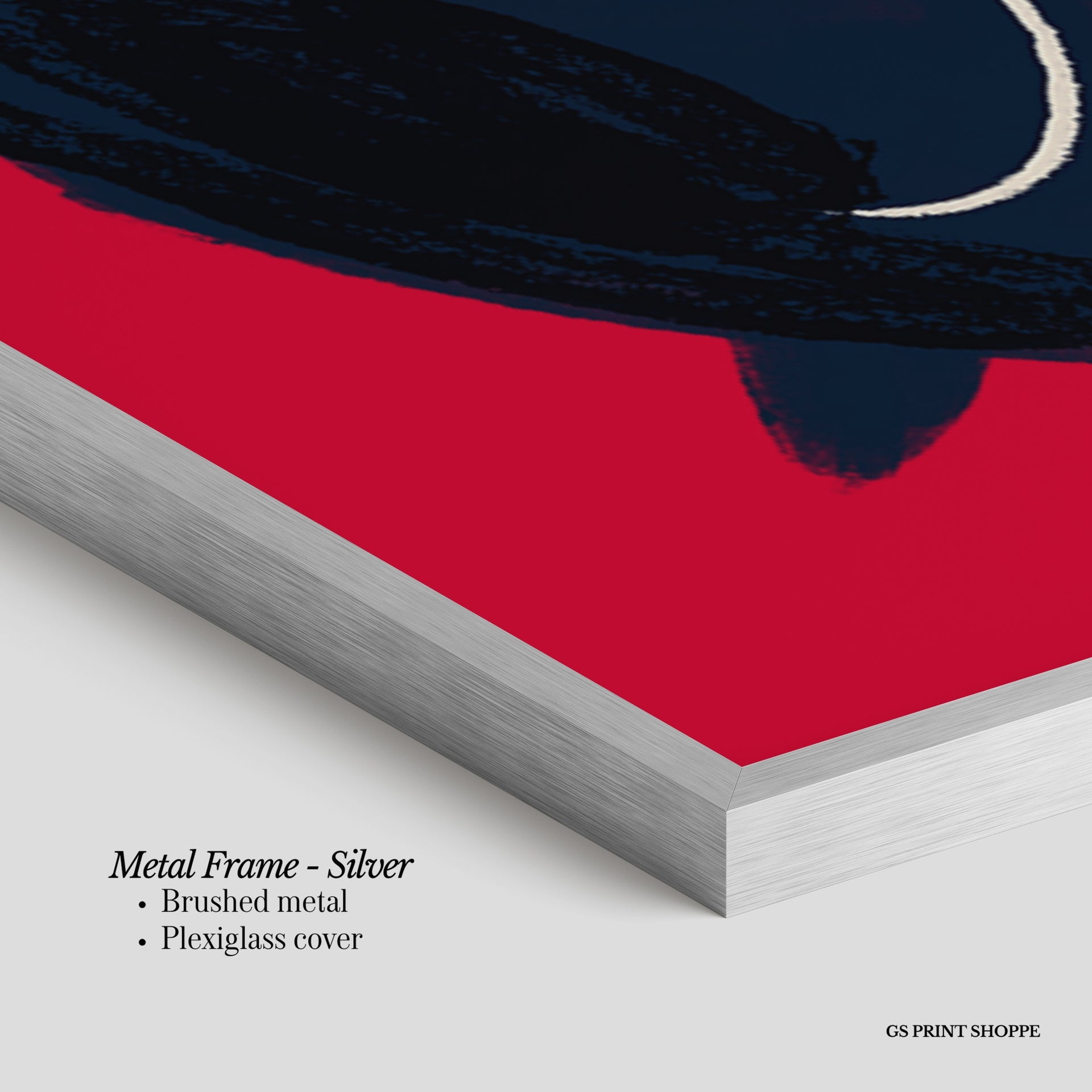 Metal Frame: Sleek and modern, our metal frame is crafted with brushed metal for a polished finish. It comes with durable plexiglass and sturdy metal hangers for horizontal or vertical display.