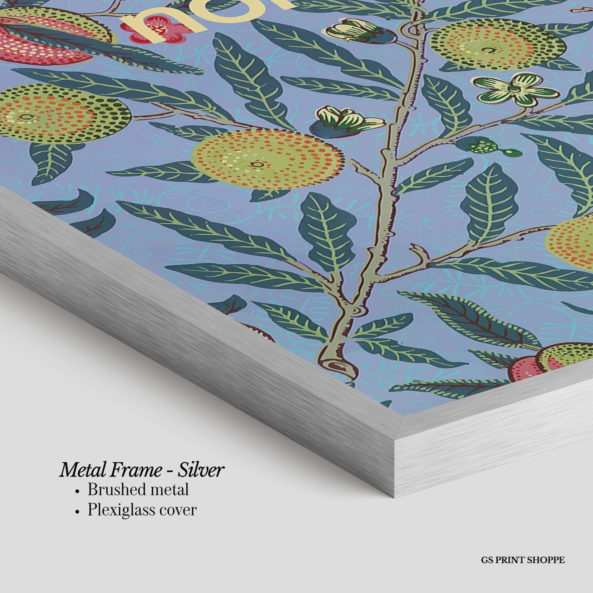Metal Frame: Sleek and modern, our metal frame is crafted with brushed metal for a polished finish. It comes with durable plexiglass and sturdy metal hangers for horizontal or vertical display.