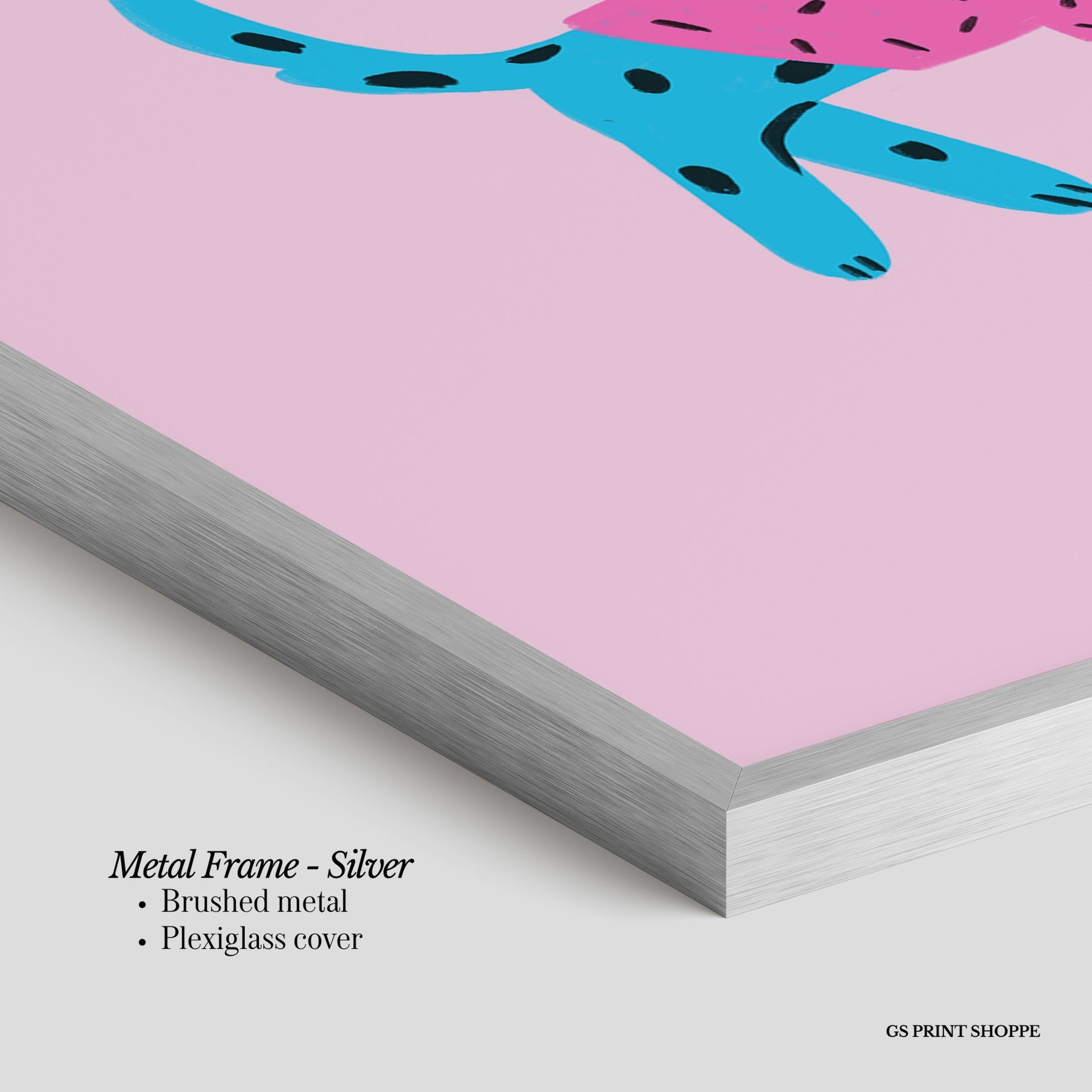 Metal Frame: Sleek and modern, our metal frame is crafted with brushed metal for a polished finish. It comes with durable plexiglass and sturdy metal hangers for horizontal or vertical display.