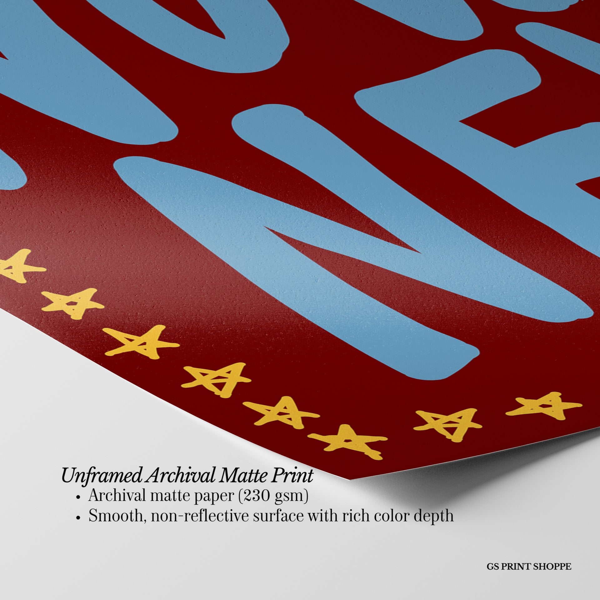 Unframed: This print is professionally printed on archival matte paper (230 gsm), a smooth, acid-free paper with a non-reflective finish. It will be carefully packaged to arrive safely at your door.