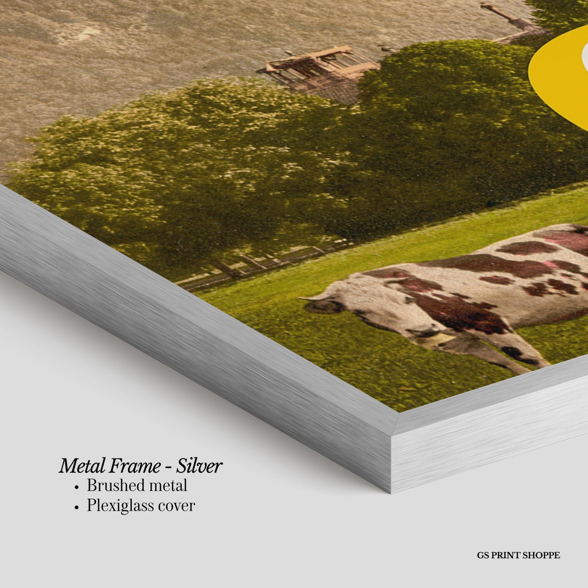 Metal Frame: Sleek and modern, our metal frame is crafted with brushed metal for a polished finish. It comes with durable plexiglass and sturdy metal hangers for horizontal or vertical display.