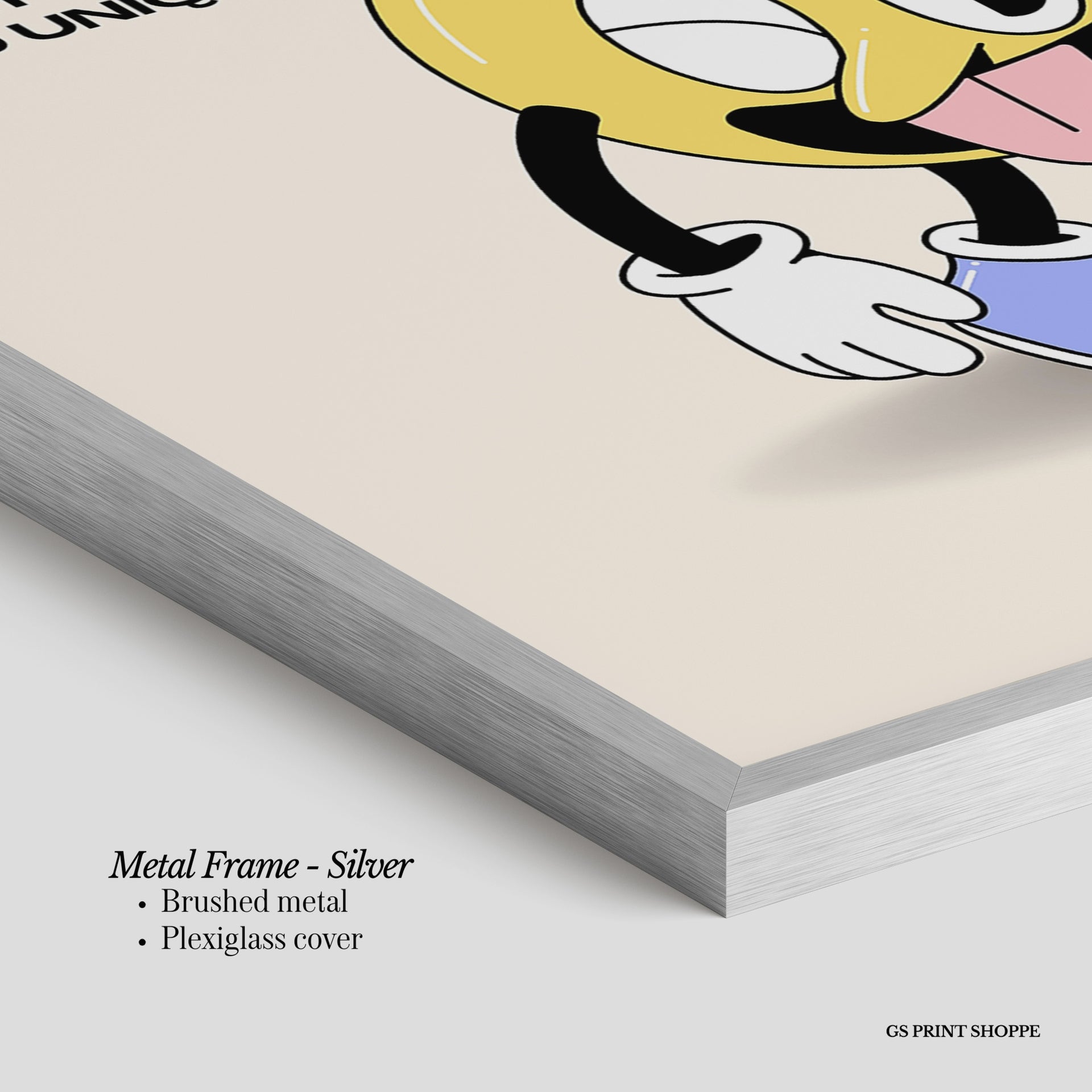 Metal Frame: Sleek and modern, our metal frame is crafted with brushed metal for a polished finish. It comes with durable plexiglass and sturdy metal hangers for horizontal or vertical display.