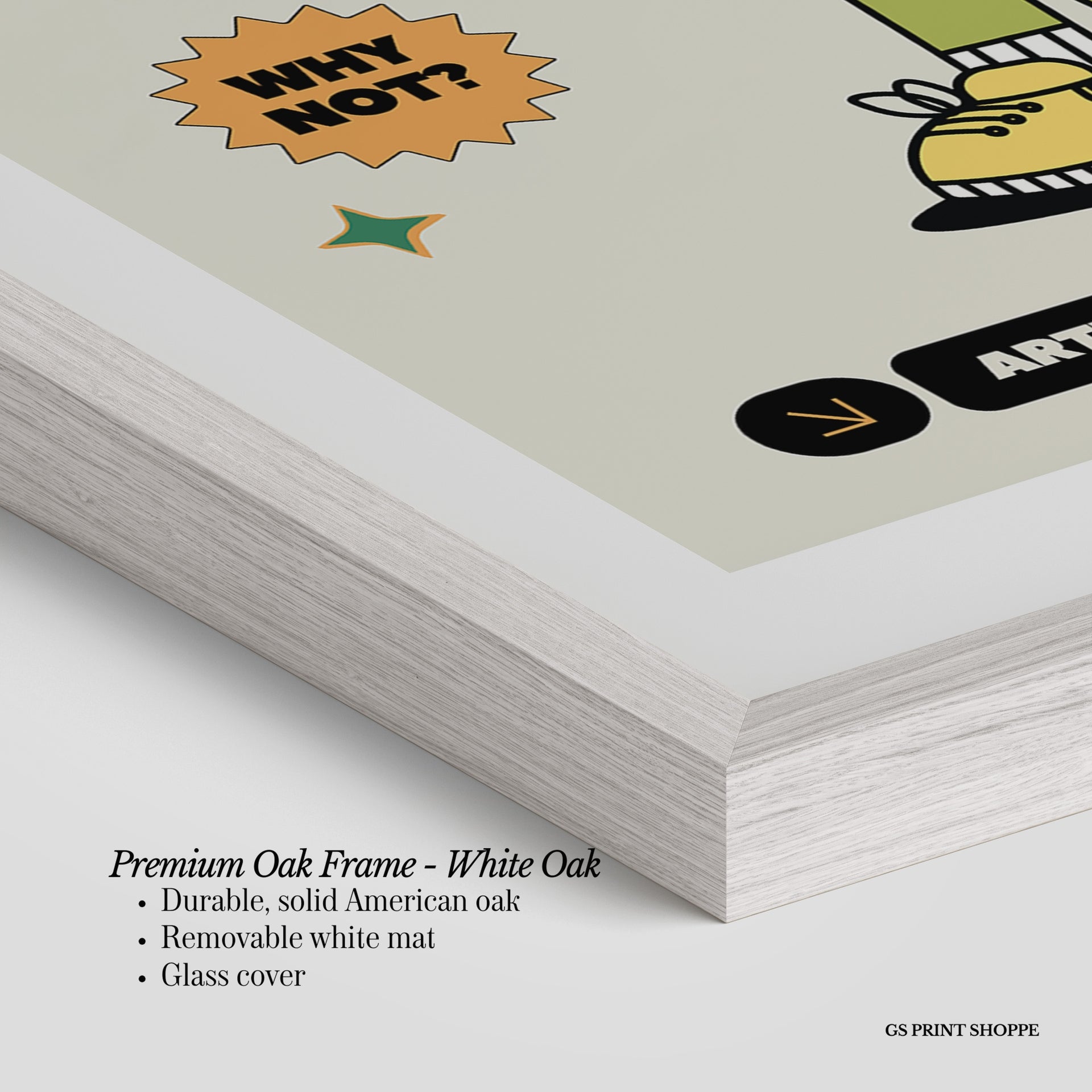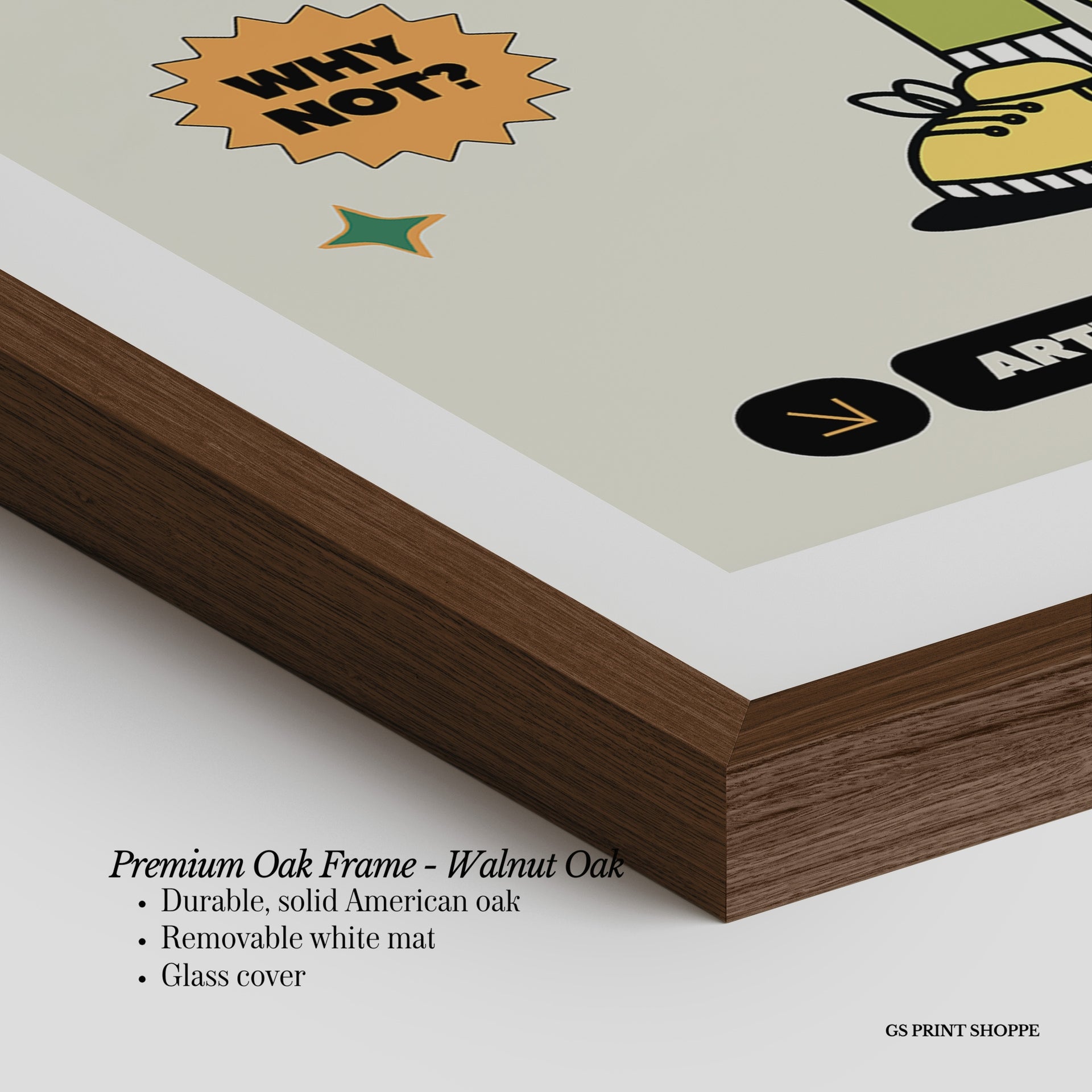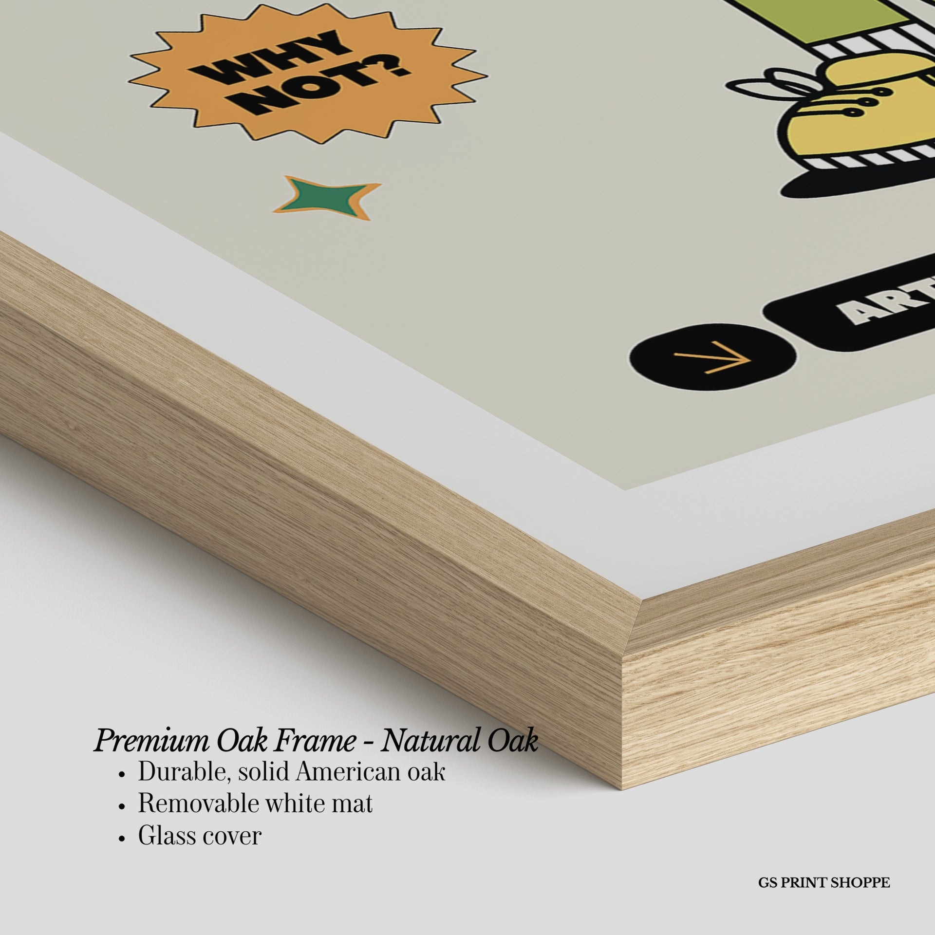 Premium Oak Frame: Our premium oak frame is crafted from solid American oak, offering a warm, natural feel with a high-end finish. We complete this elevated offering with a bright white removable mat and real glass for a versatile and polished look.