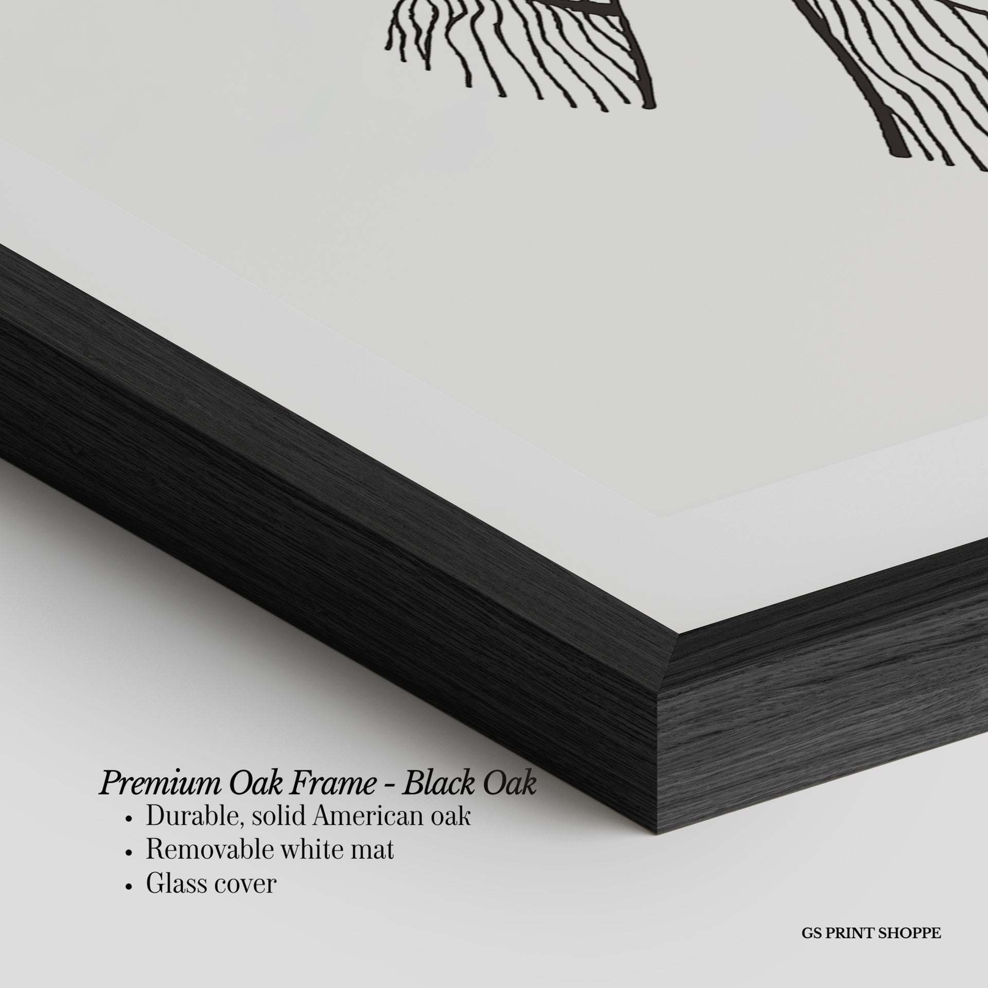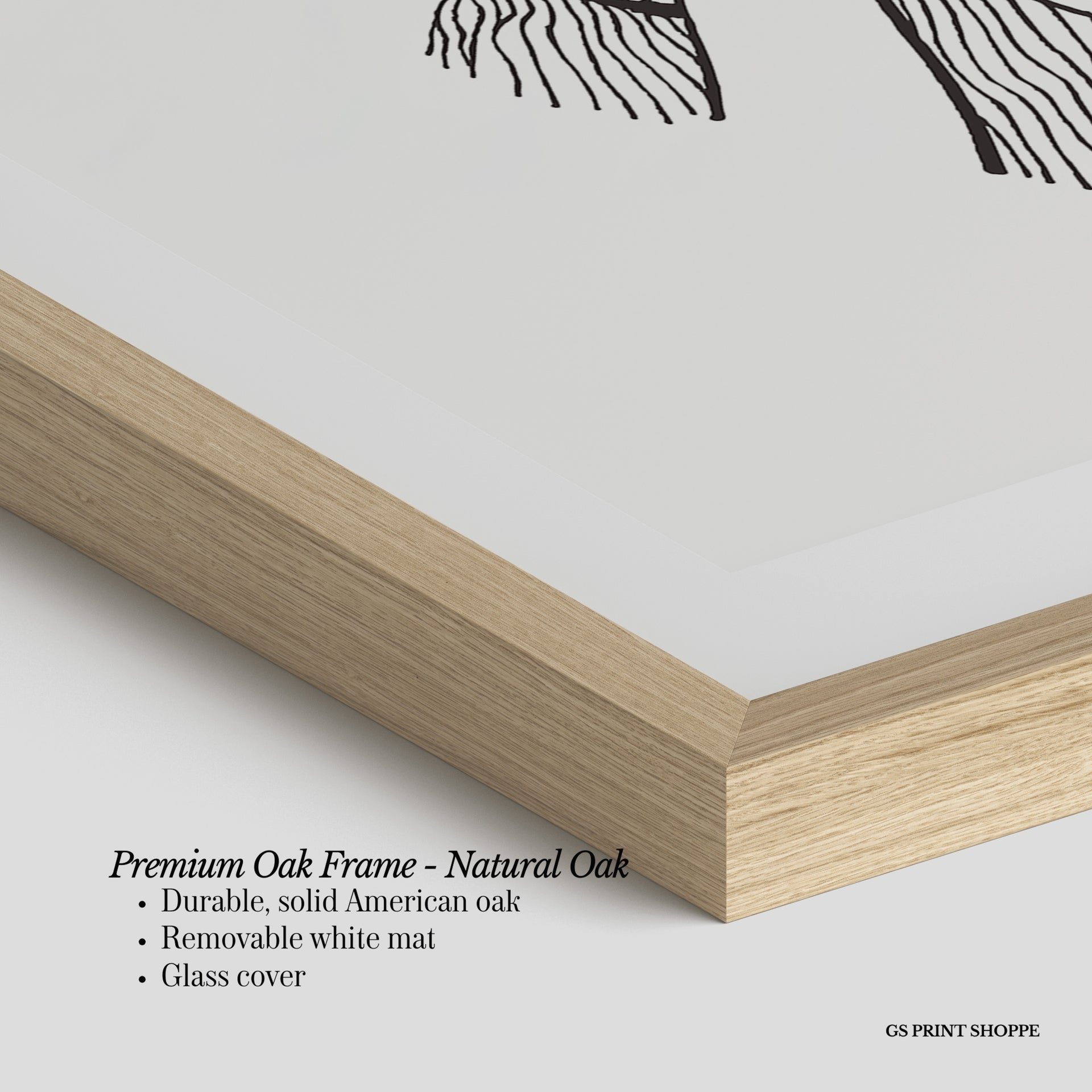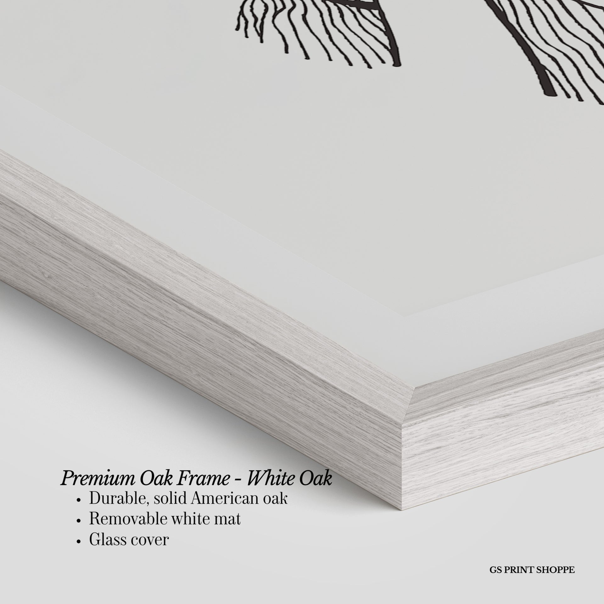 Premium Oak Frame: Our premium oak frame is crafted from solid American oak, offering a warm, natural feel with a high-end finish. We complete this elevated offering with a bright white removable mat and real glass for a versatile and polished look.