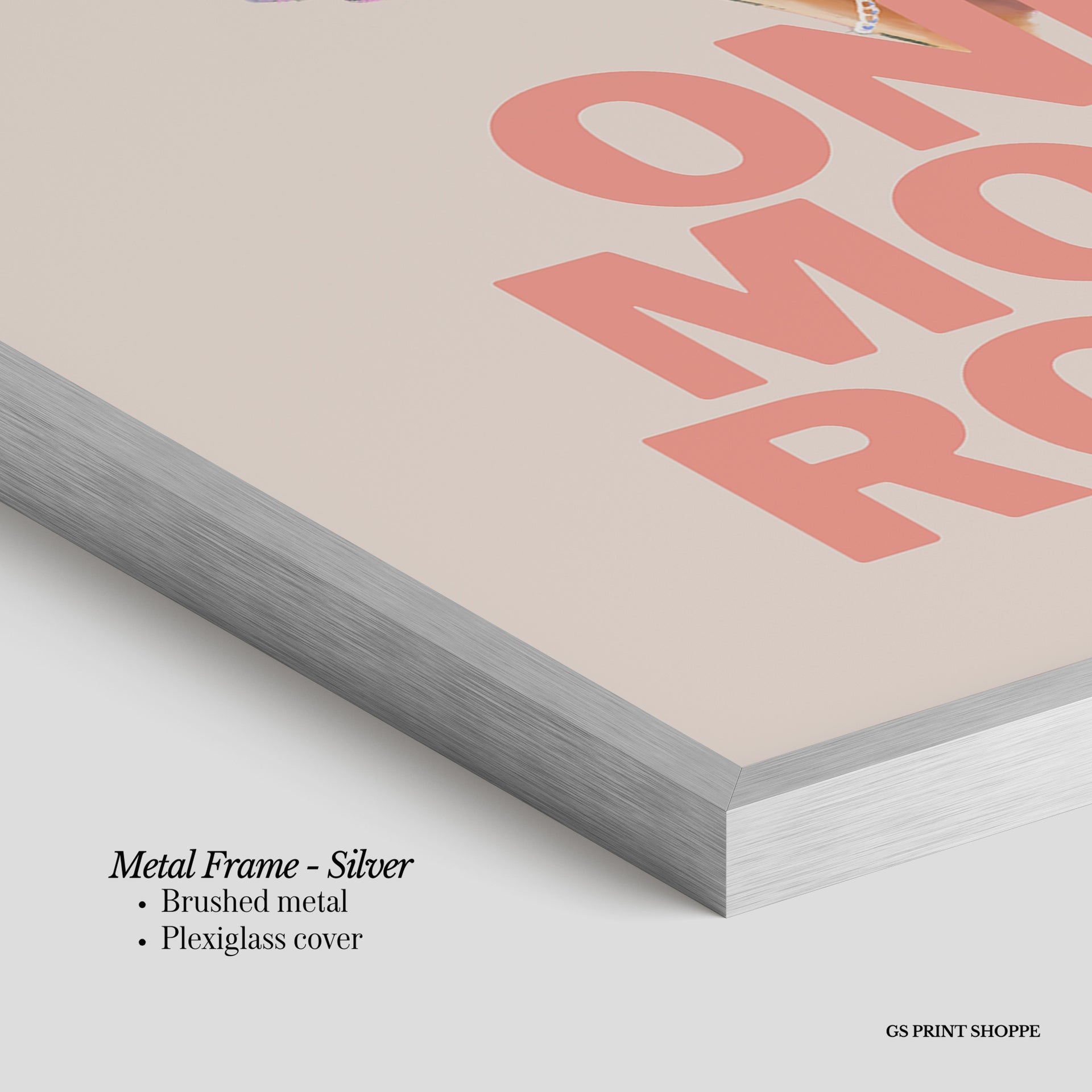 Metal Frame: Sleek and modern, our metal frame is crafted with brushed metal for a polished finish. It comes with durable plexiglass and sturdy metal hangers for horizontal or vertical display.