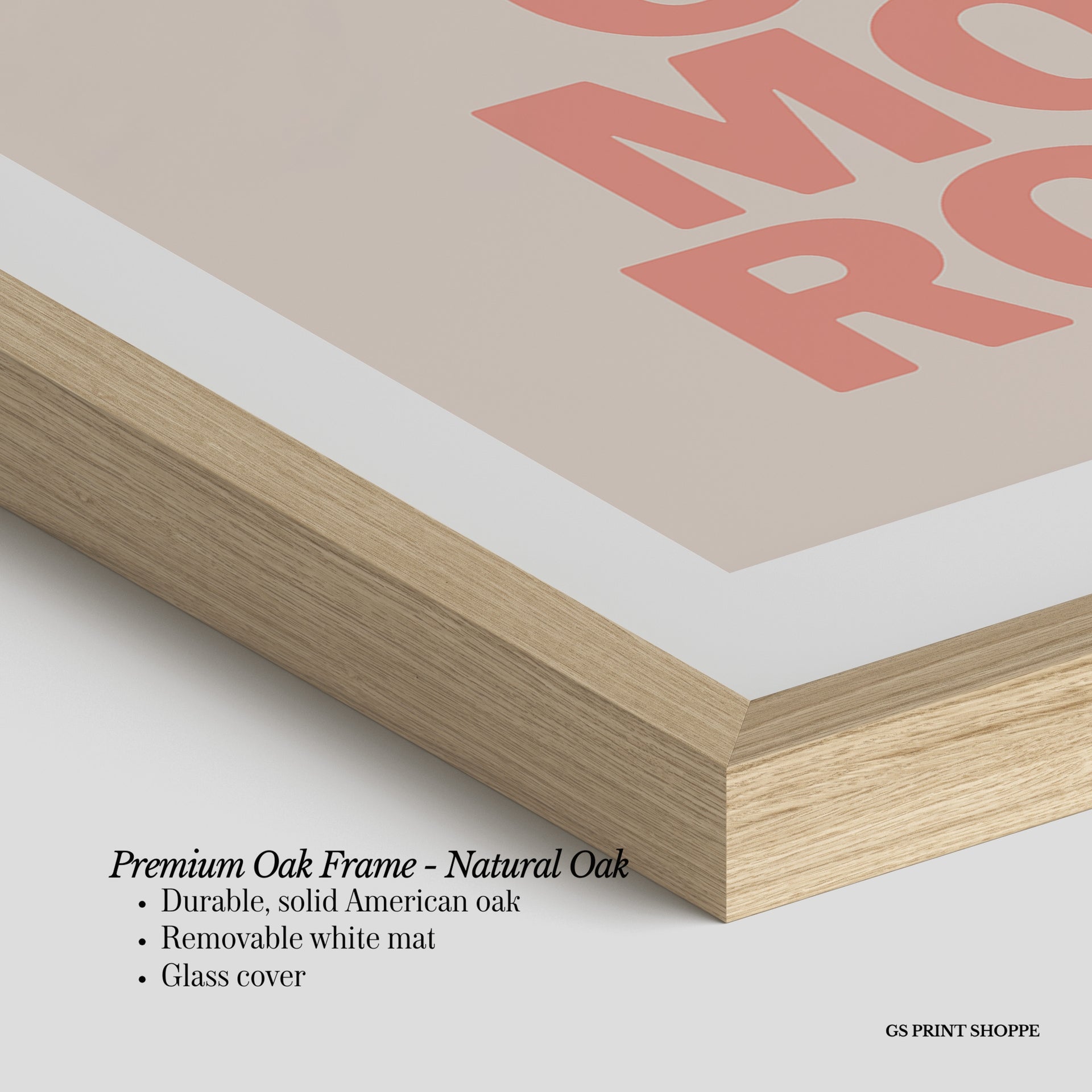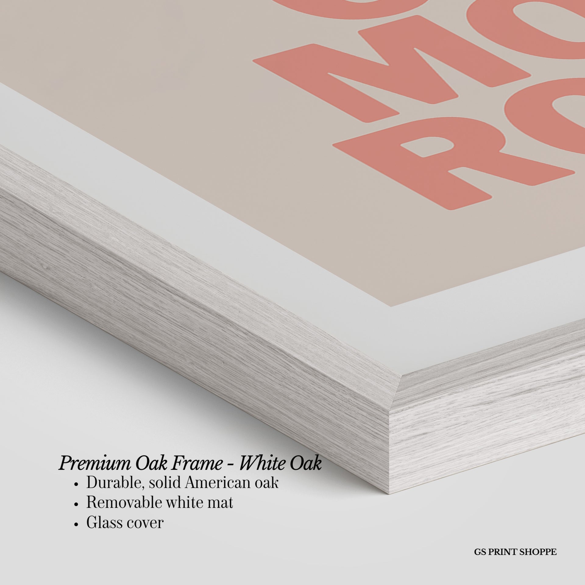 Premium Oak Frame: Our premium oak frame is crafted from solid American oak, offering a warm, natural feel with a high-end finish. We complete this elevated offering with a bright white removable mat and real glass for a versatile and polished look.