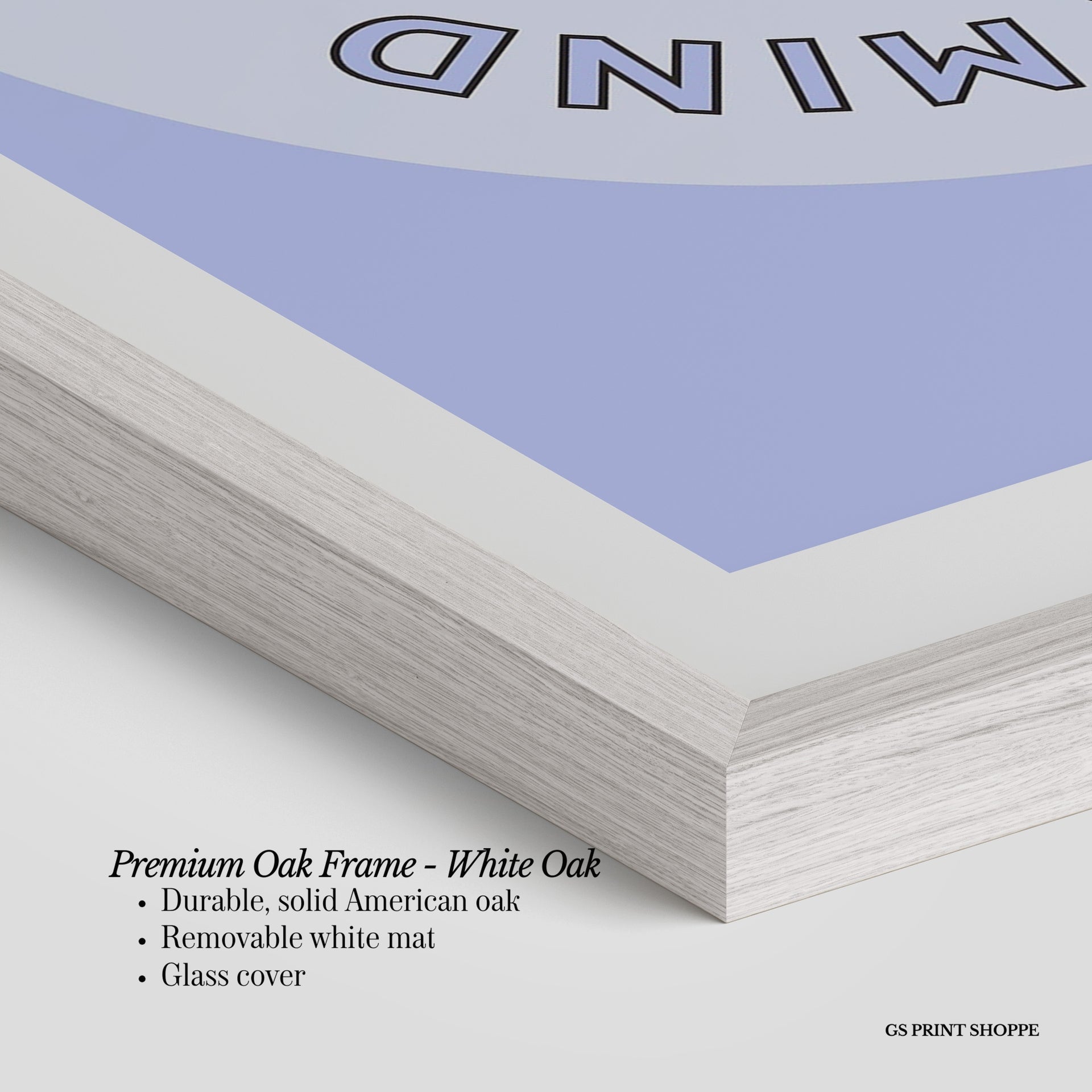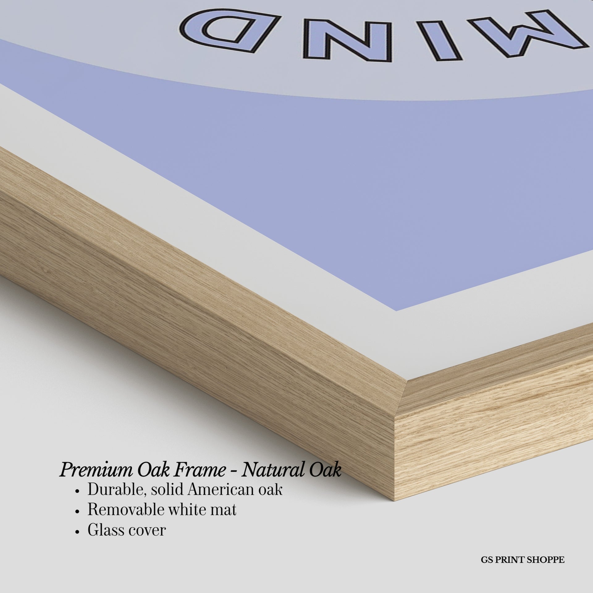 Premium Oak Frame: Our premium oak frame is crafted from solid American oak, offering a warm, natural feel with a high-end finish. We complete this elevated offering with a bright white removable mat and real glass for a versatile and polished look.