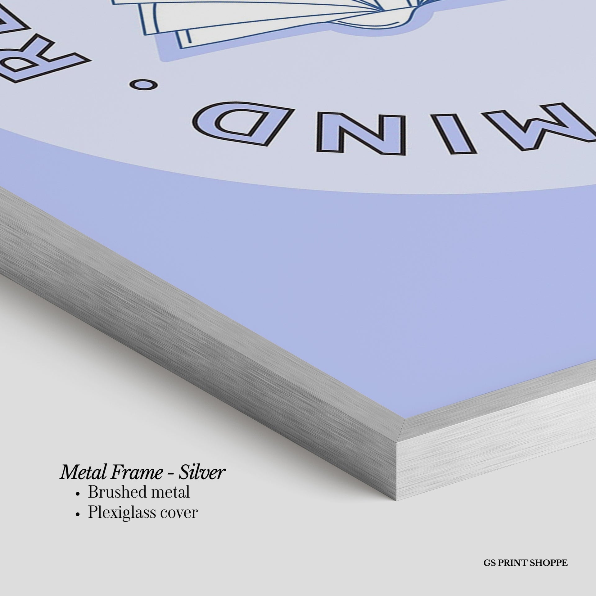 Metal Frame: Sleek and modern, our metal frame is crafted with brushed metal for a polished finish. It comes with durable plexiglass and sturdy metal hangers for horizontal or vertical display.