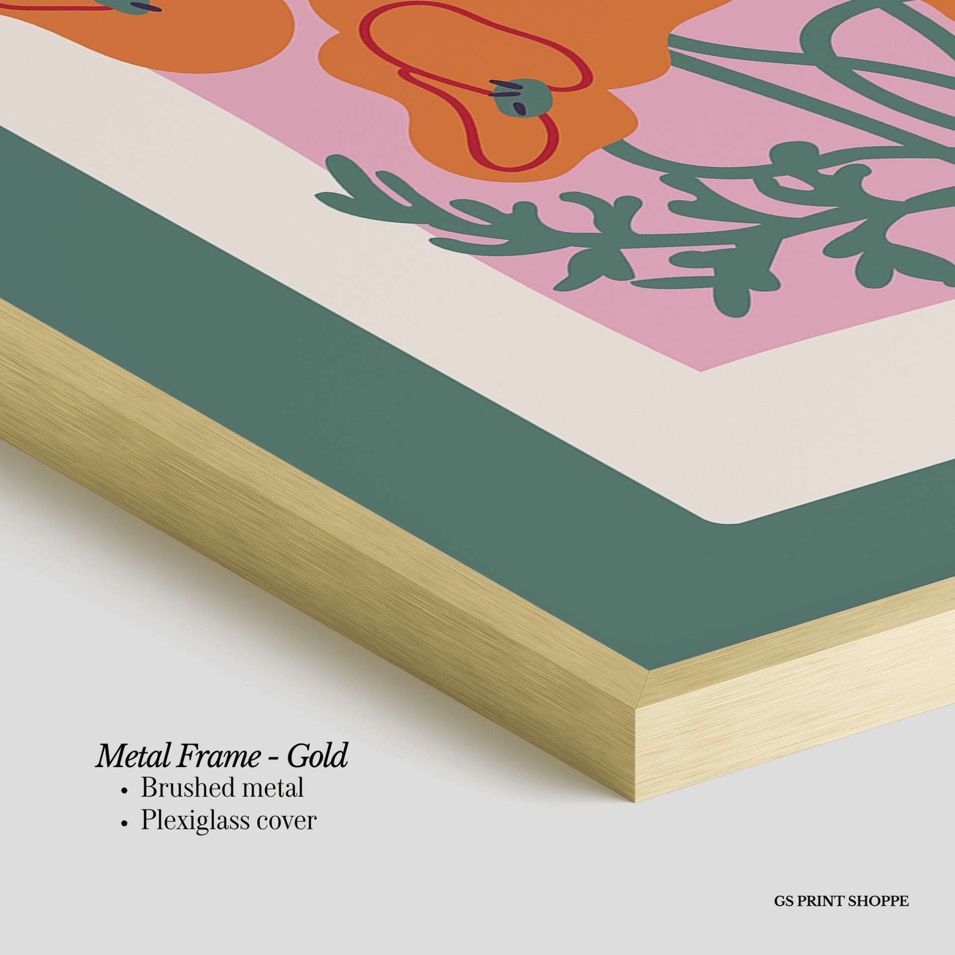 Metal Frame: Sleek and modern, our metal frame is crafted with brushed metal for a polished finish. It comes with durable plexiglass and sturdy metal hangers for horizontal or vertical display.