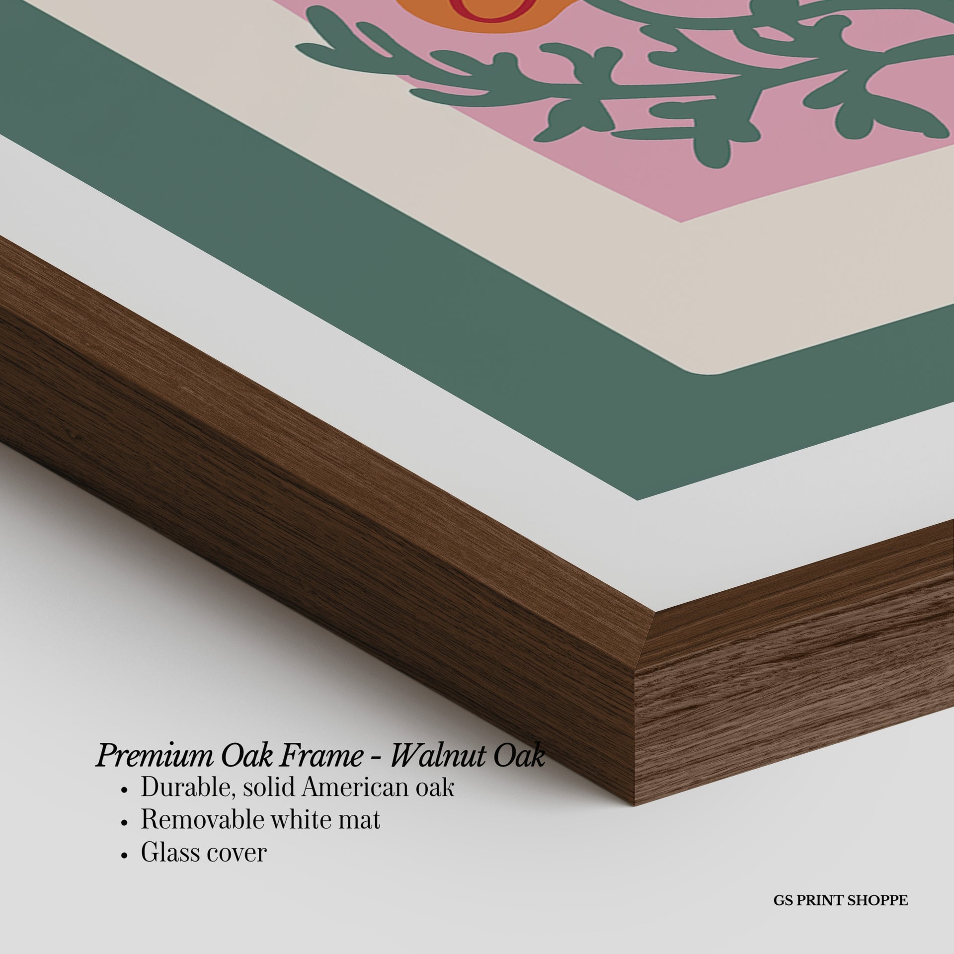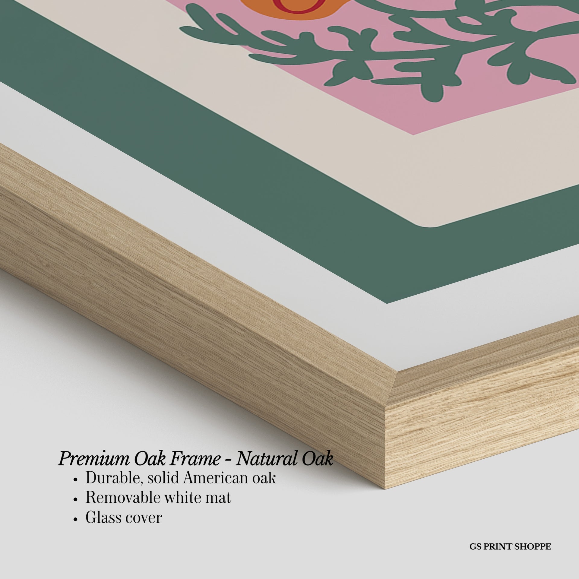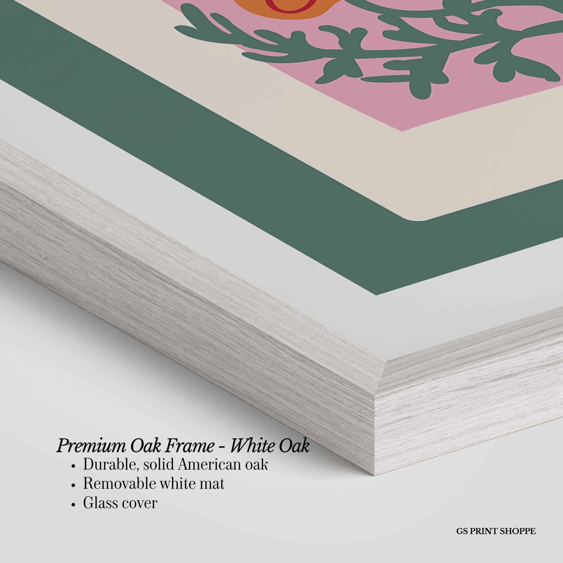 Premium Oak Frame: Our premium oak frame is crafted from solid American oak, offering a warm, natural feel with a high-end finish. We complete this elevated offering with a bright white removable mat and real glass for a versatile and polished look.