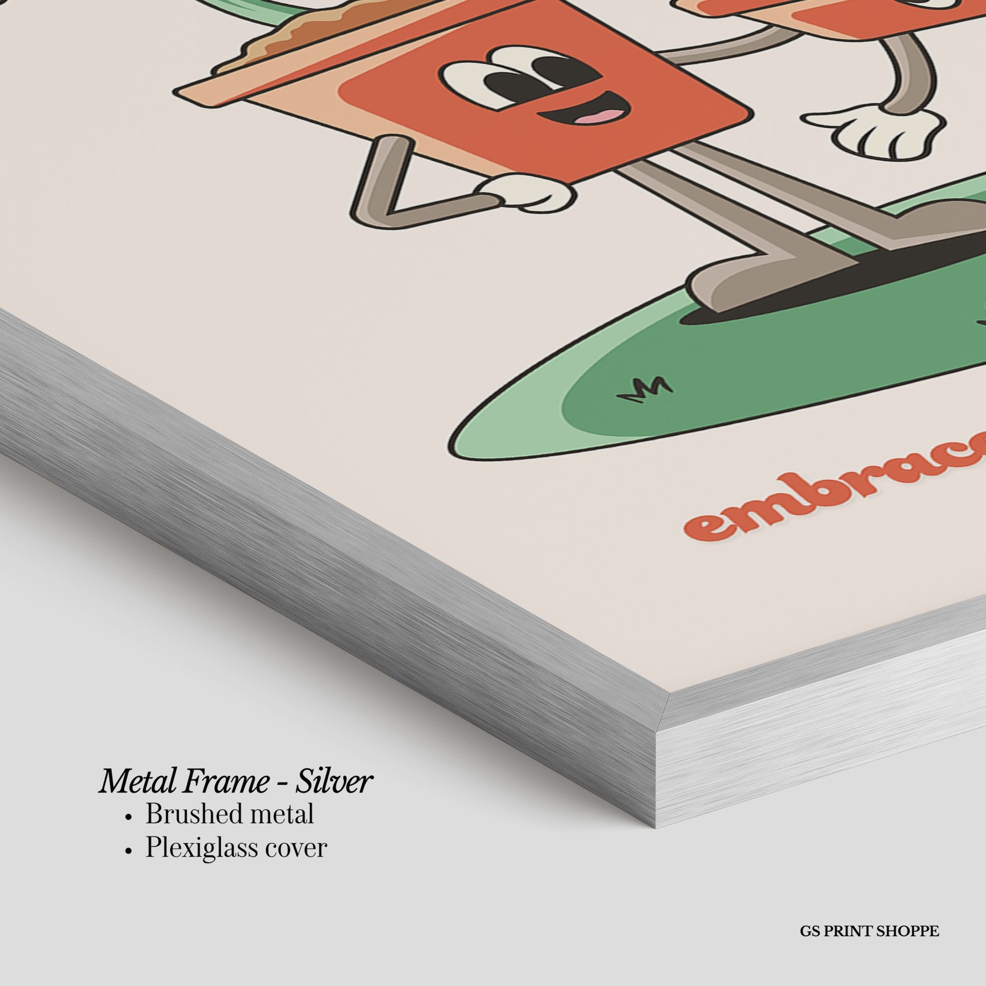 Metal Frame: Sleek and modern, our metal frame is crafted with brushed metal for a polished finish. It comes with durable plexiglass and sturdy metal hangers for horizontal or vertical display.
