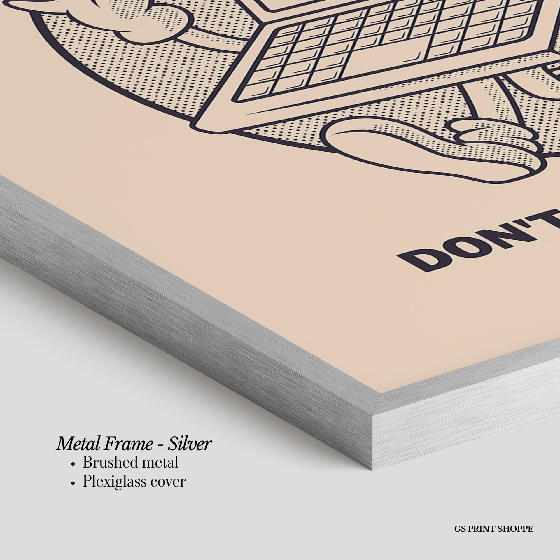 Metal Frame: Sleek and modern, our metal frame is crafted with brushed metal for a polished finish. It comes with durable plexiglass and sturdy metal hangers for horizontal or vertical display.