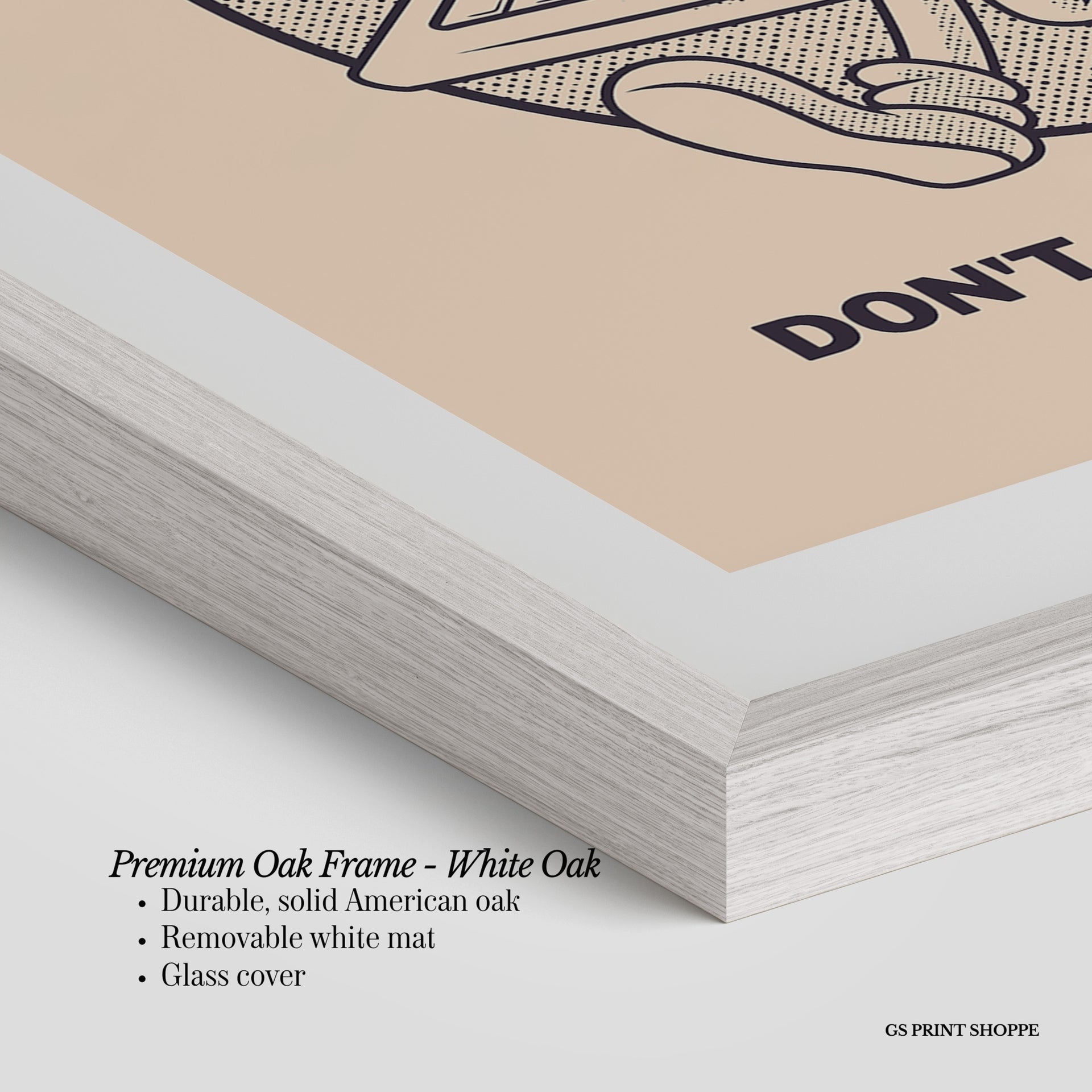 Premium Oak Frame: Our premium oak frame is crafted from solid American oak, offering a warm, natural feel with a high-end finish. We complete this elevated offering with a bright white removable mat and real glass for a versatile and polished look.