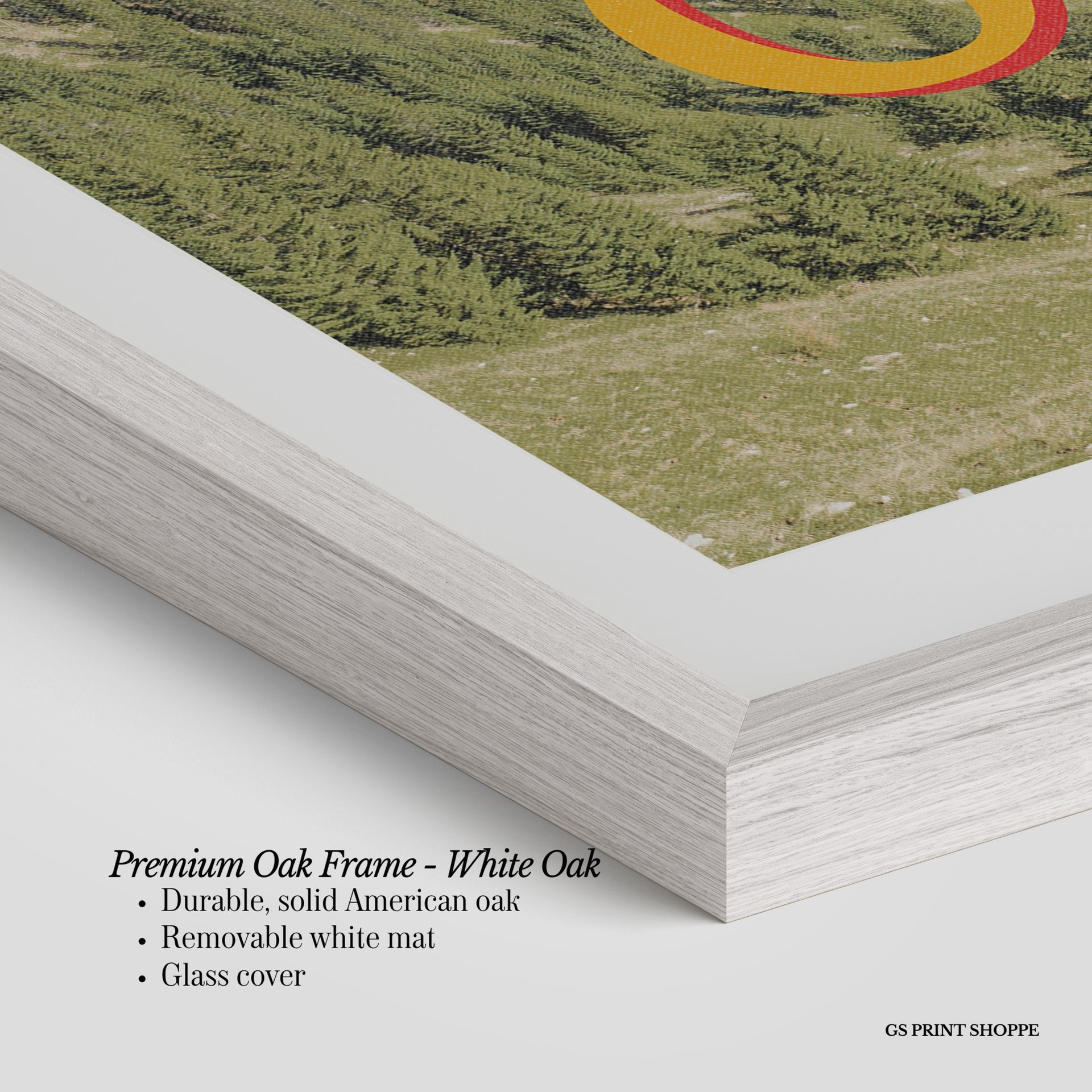 Premium Oak Frame: Our premium oak frame is crafted from solid American oak, offering a warm, natural feel with a high-end finish. We complete this elevated offering with a bright white removable mat and real glass for a versatile and polished look.