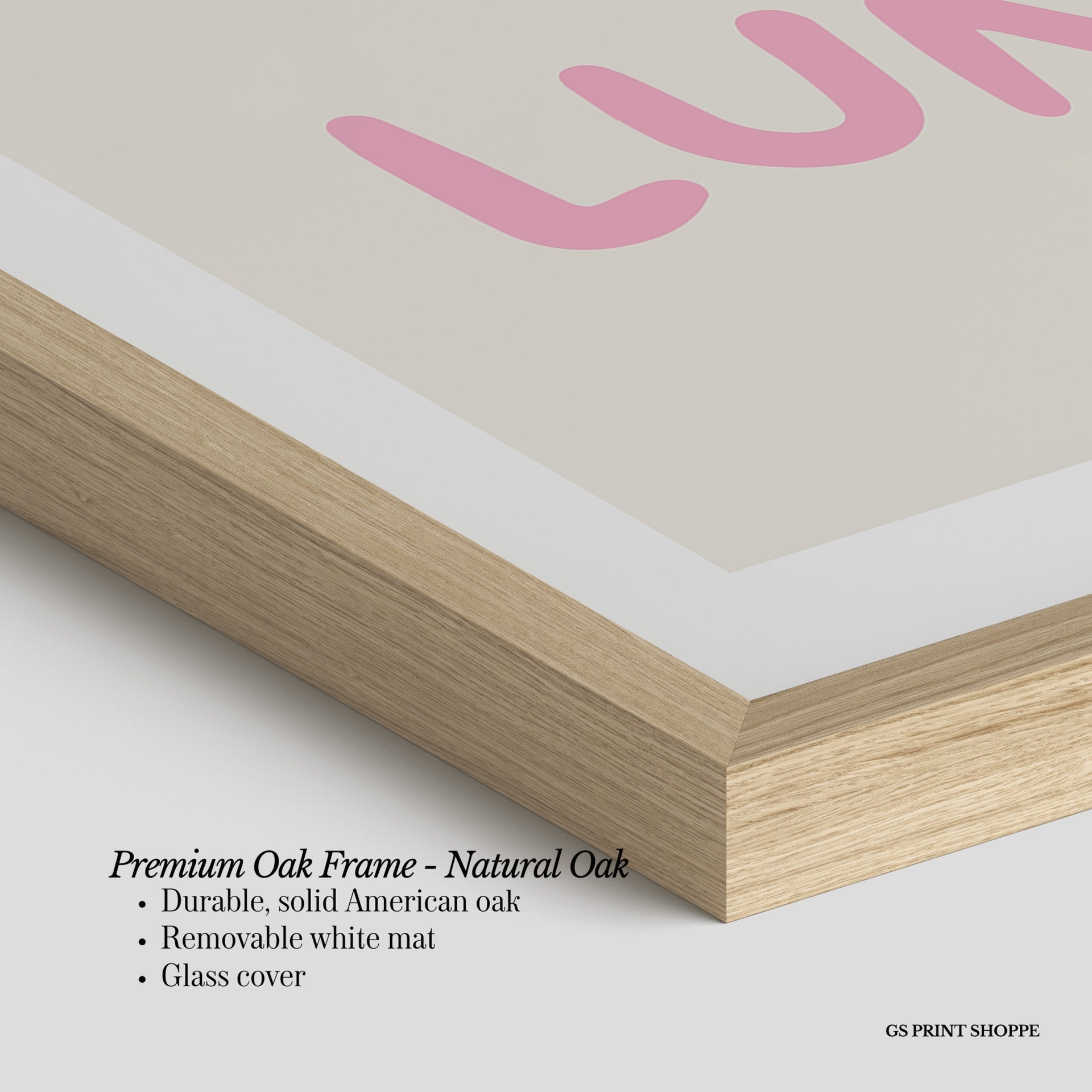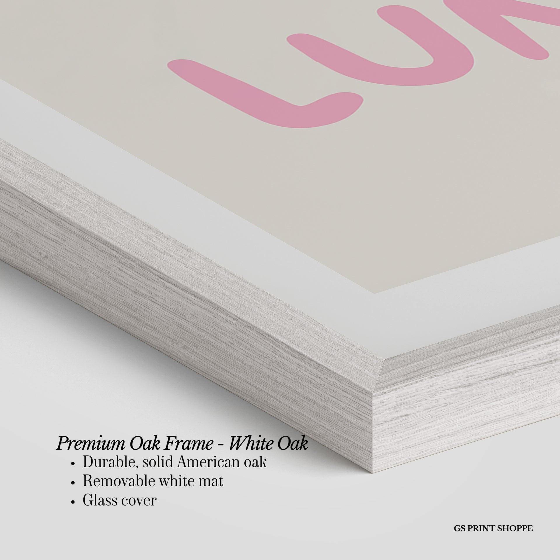 Premium Oak Frame: Our premium oak frame is crafted from solid American oak, offering a warm, natural feel with a high-end finish. We complete this elevated offering with a bright white removable mat and real glass for a versatile and polished look.