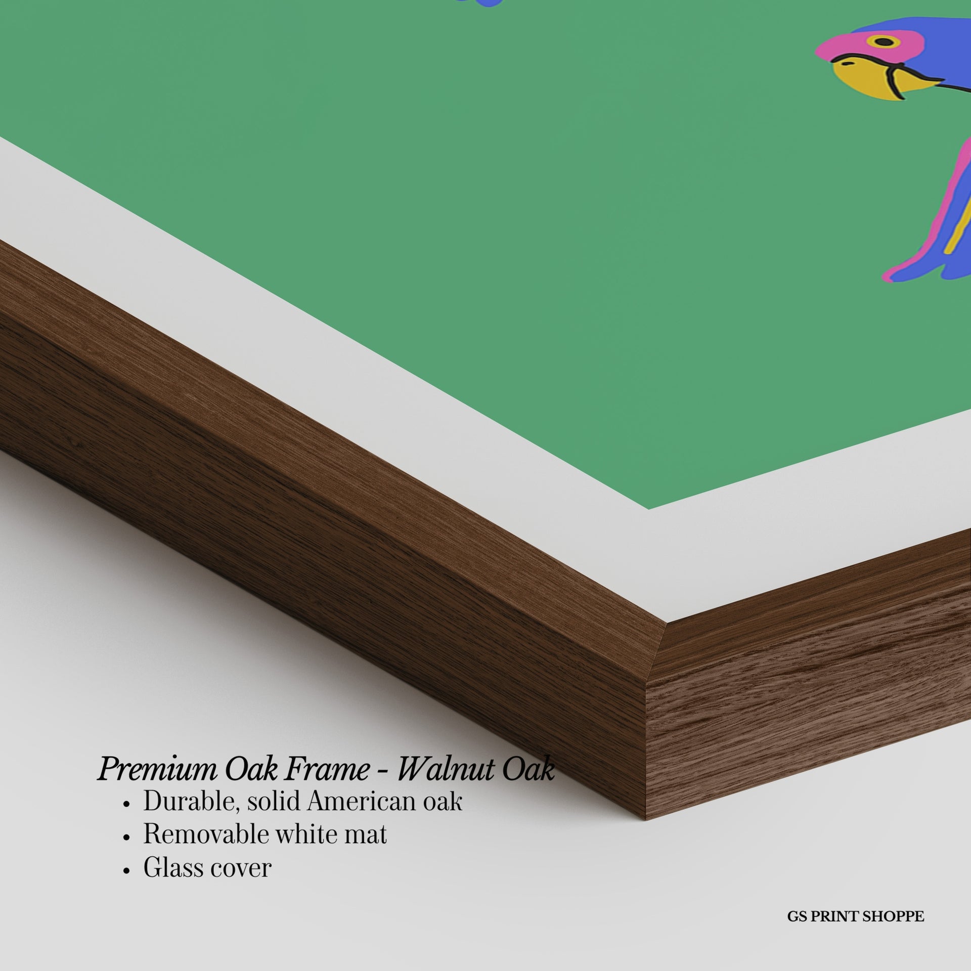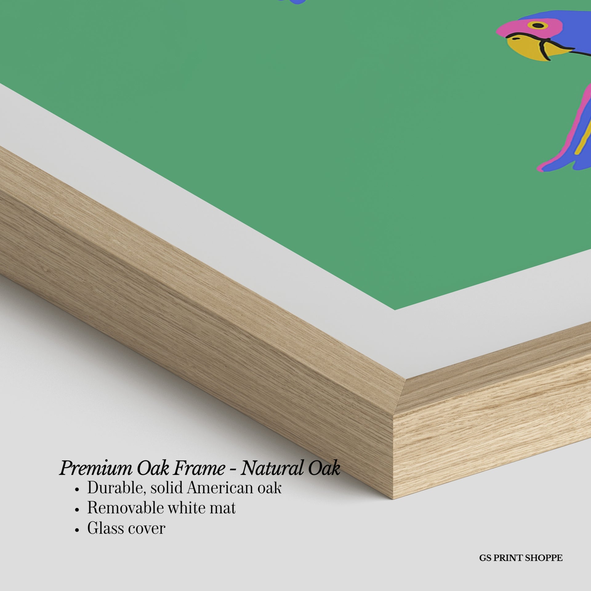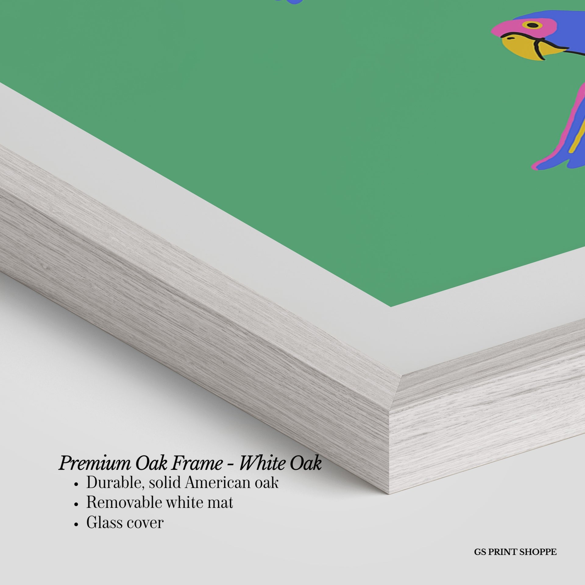 Premium Oak Frame: Our premium oak frame is crafted from solid American oak, offering a warm, natural feel with a high-end finish. We complete this elevated offering with a bright white removable mat and real glass for a versatile and polished look.