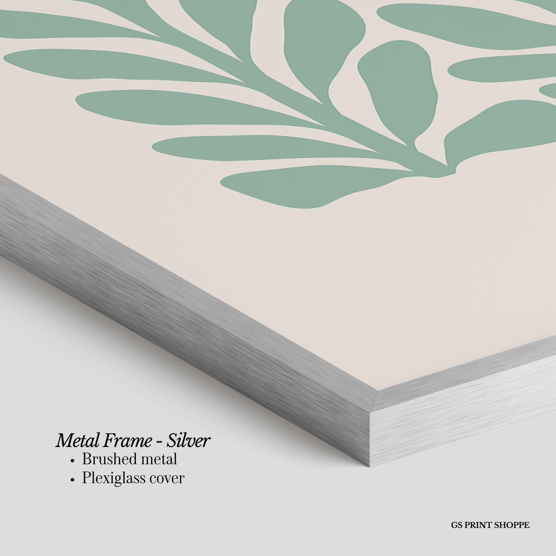 Metal Frame: Sleek and modern, our metal frame is crafted with brushed metal for a polished finish. It comes with durable plexiglass and sturdy metal hangers for horizontal or vertical display.