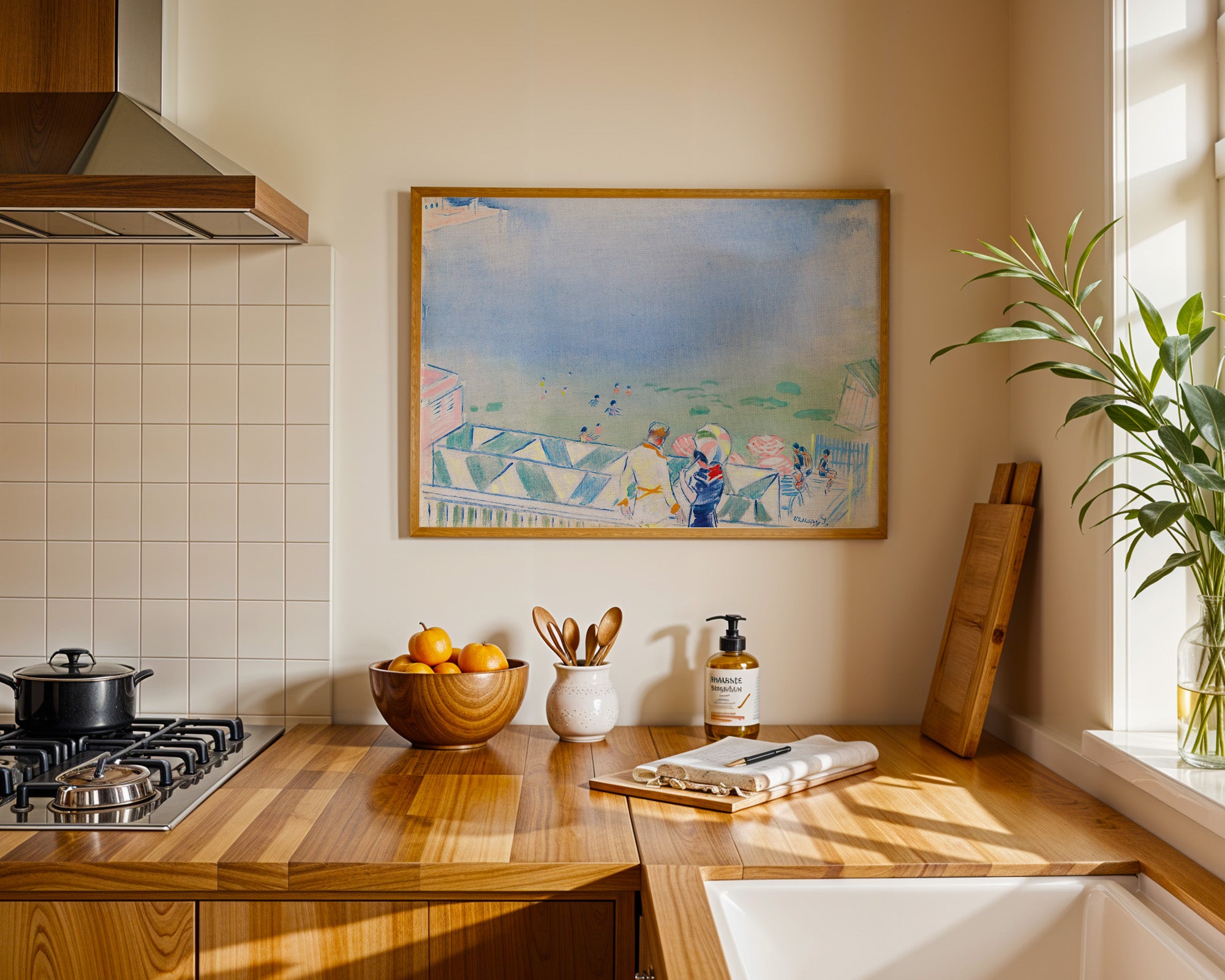 Premium Oak Frame: Our premium oak frame is crafted from solid American oak, offering a warm, natural feel with a high-end finish. We complete this elevated offering with a bright white removable mat and real glass for a versatile and polished look.