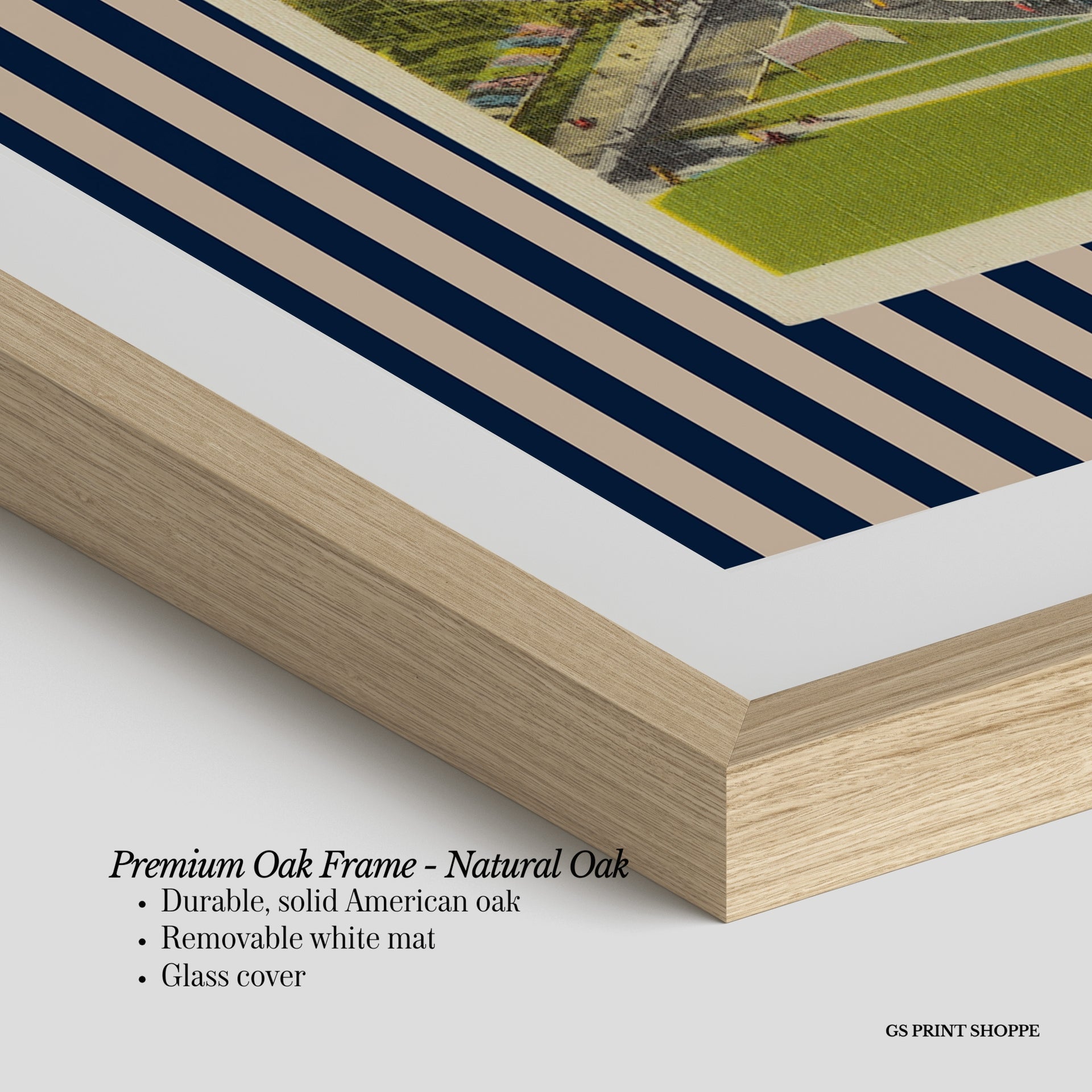 Premium Oak Frame: Our premium oak frame is crafted from solid American oak, offering a warm, natural feel with a high-end finish. We complete this elevated offering with a bright white removable mat and real glass for a versatile and polished look.