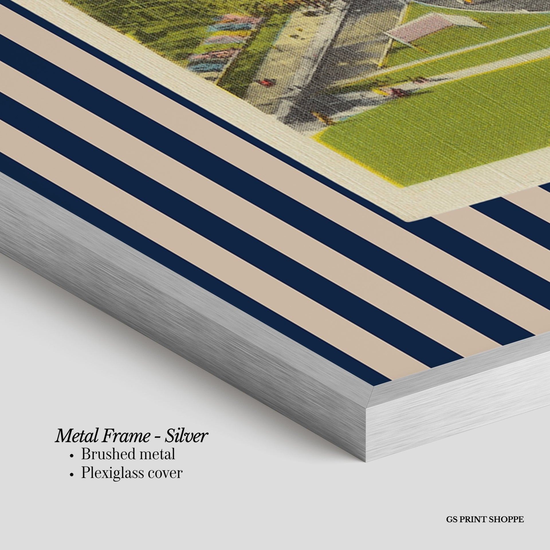 Metal Frame: Sleek and modern, our metal frame is crafted with brushed metal for a polished finish. It comes with durable plexiglass and sturdy metal hangers for horizontal or vertical display.