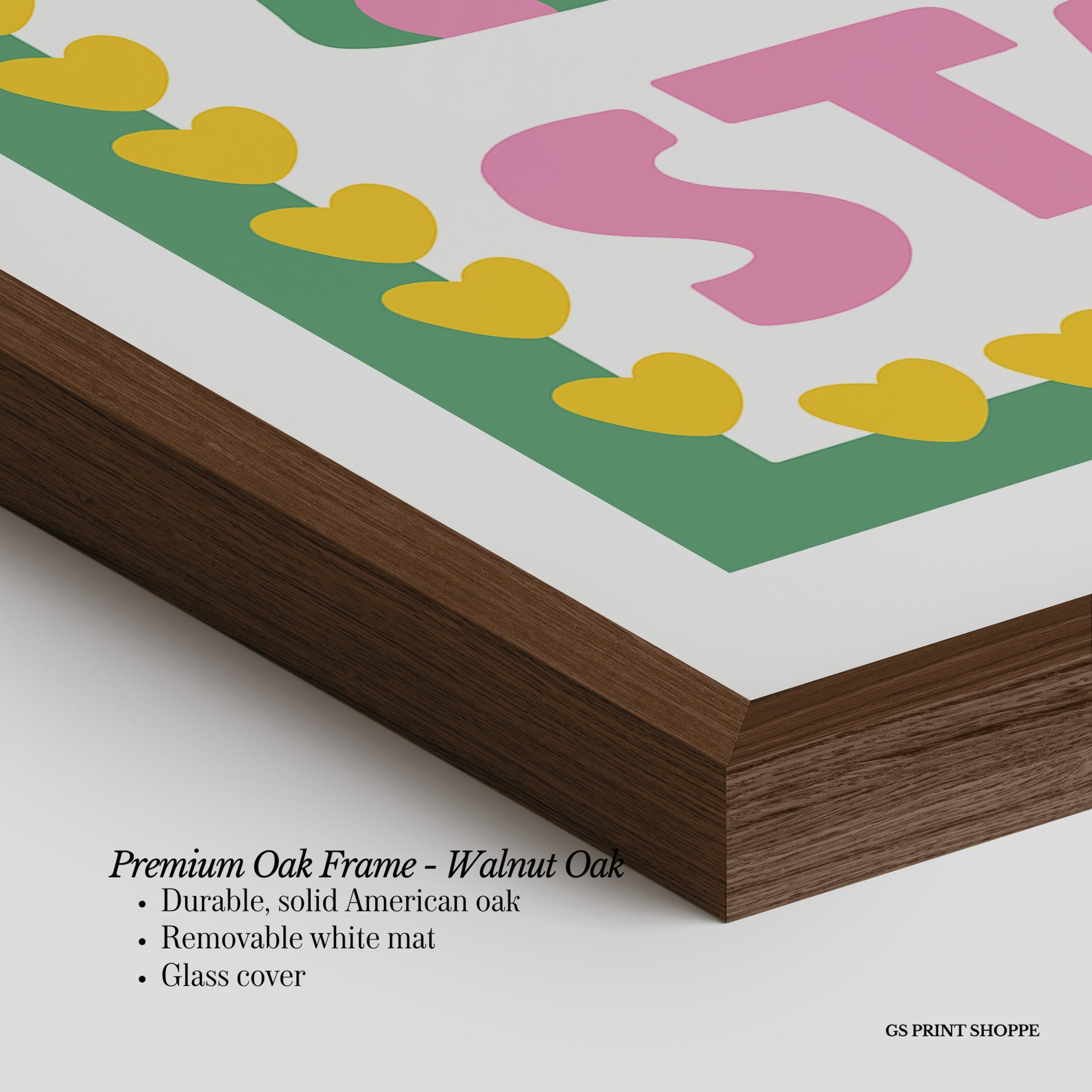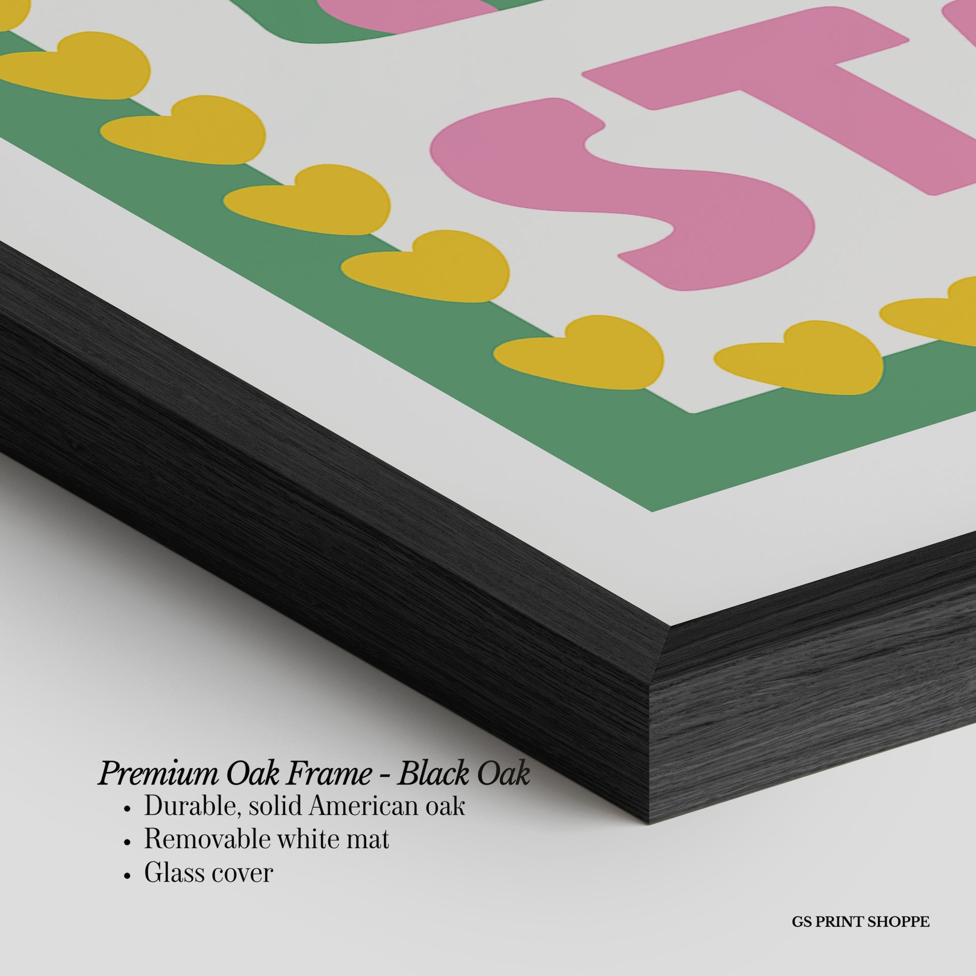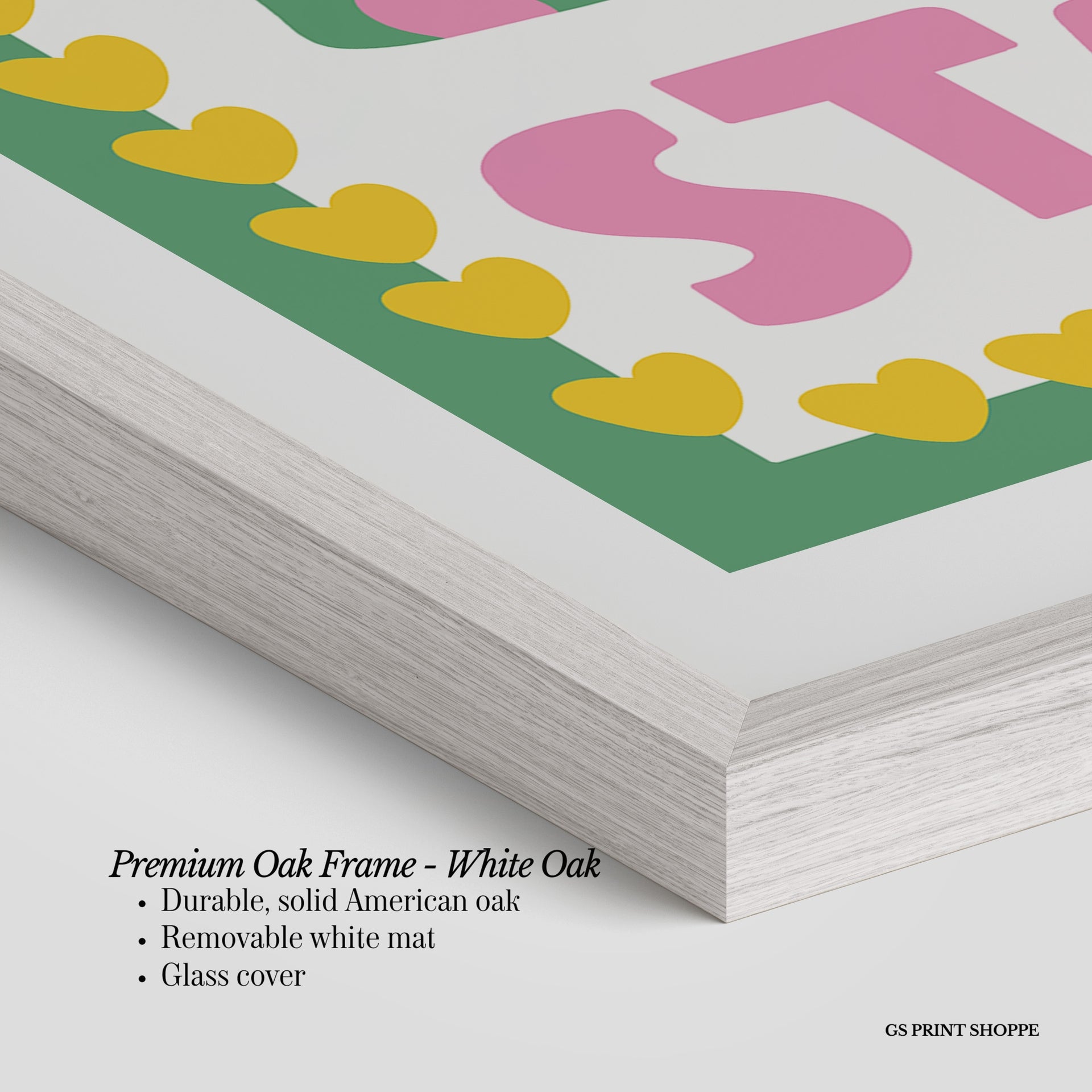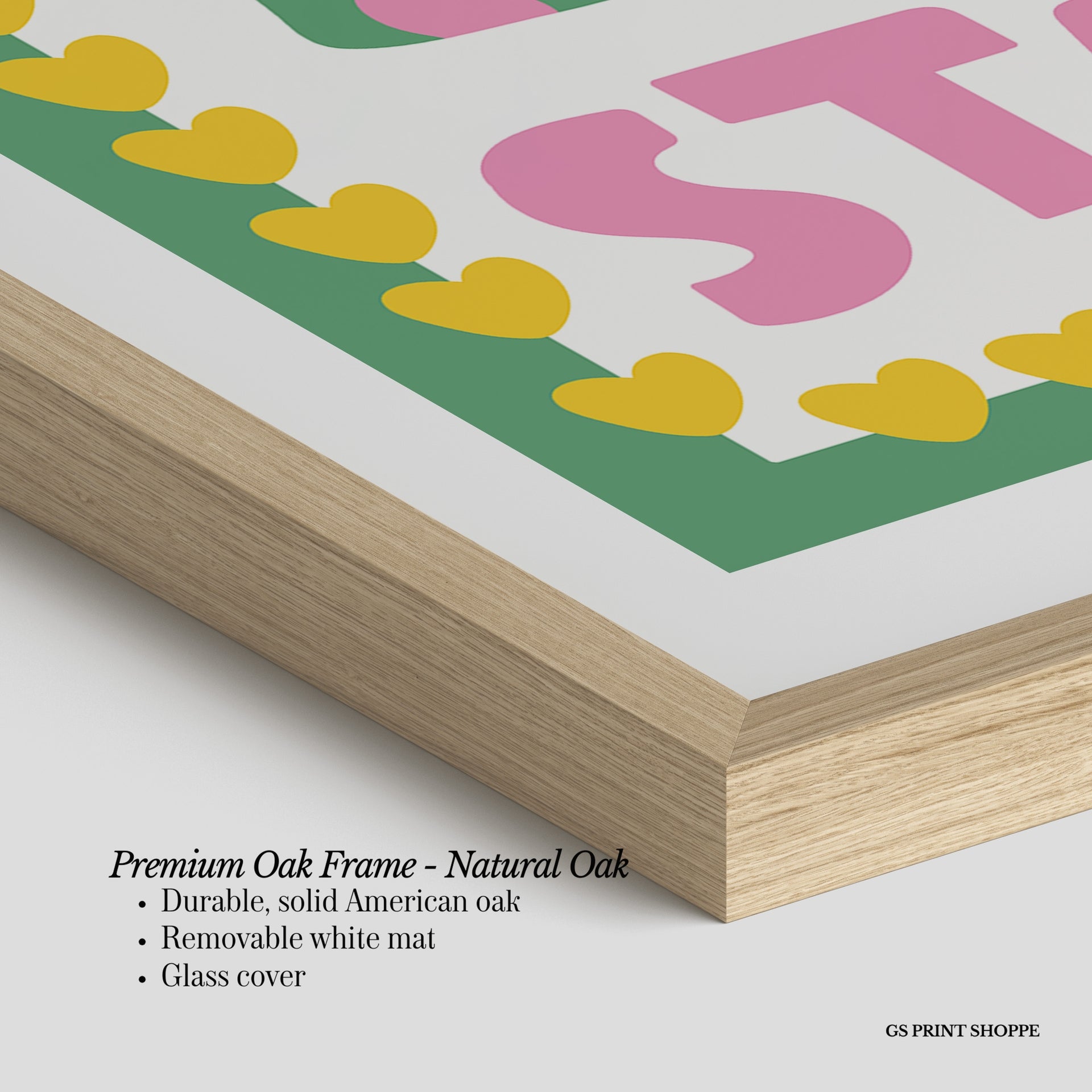 Premium Oak Frame: Our premium oak frame is crafted from solid American oak, offering a warm, natural feel with a high-end finish. We complete this elevated offering with a bright white removable mat and real glass for a versatile and polished look.