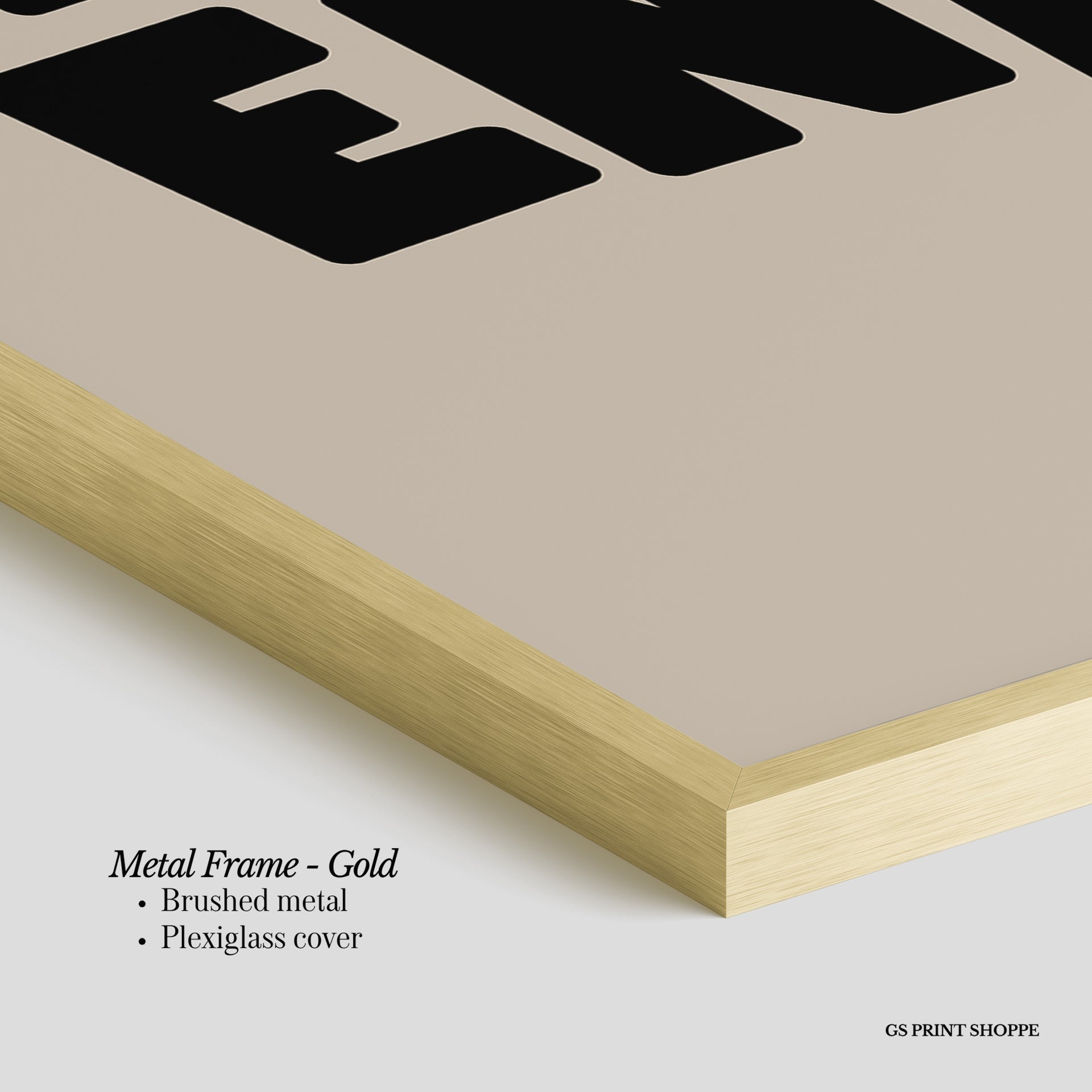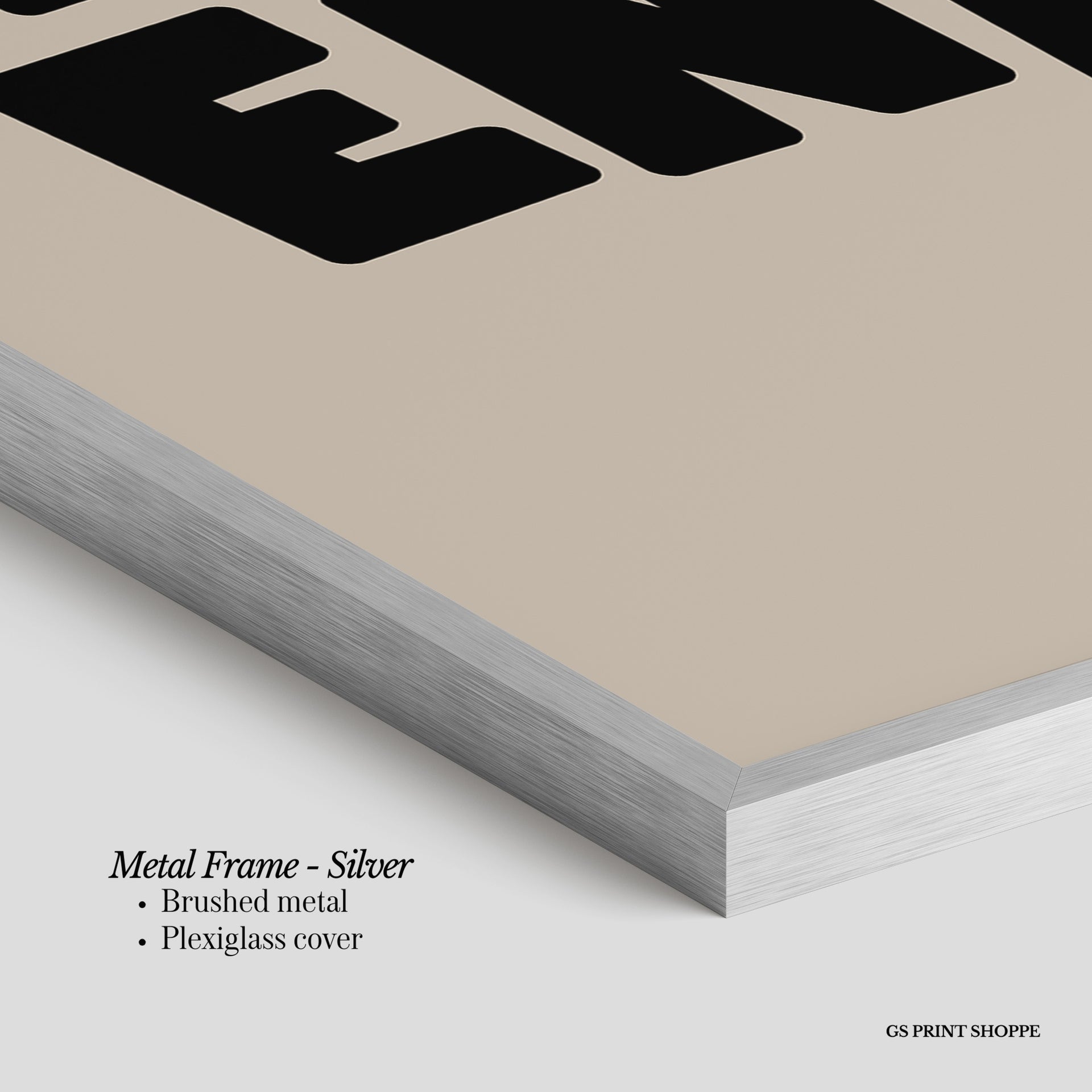 Metal Frame: Sleek and modern, our metal frame is crafted with brushed metal for a polished finish. It comes with durable plexiglass and sturdy metal hangers for horizontal or vertical display.